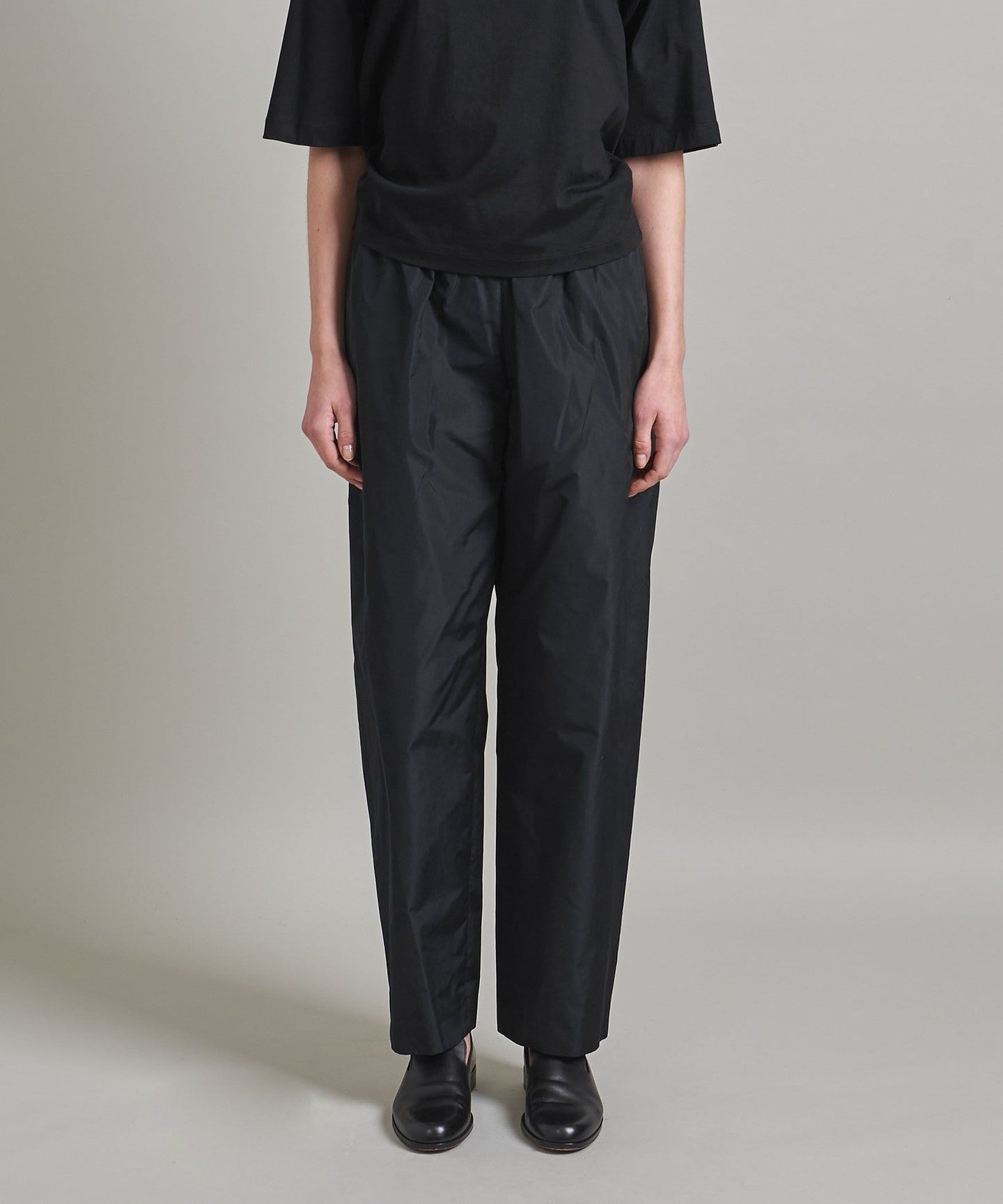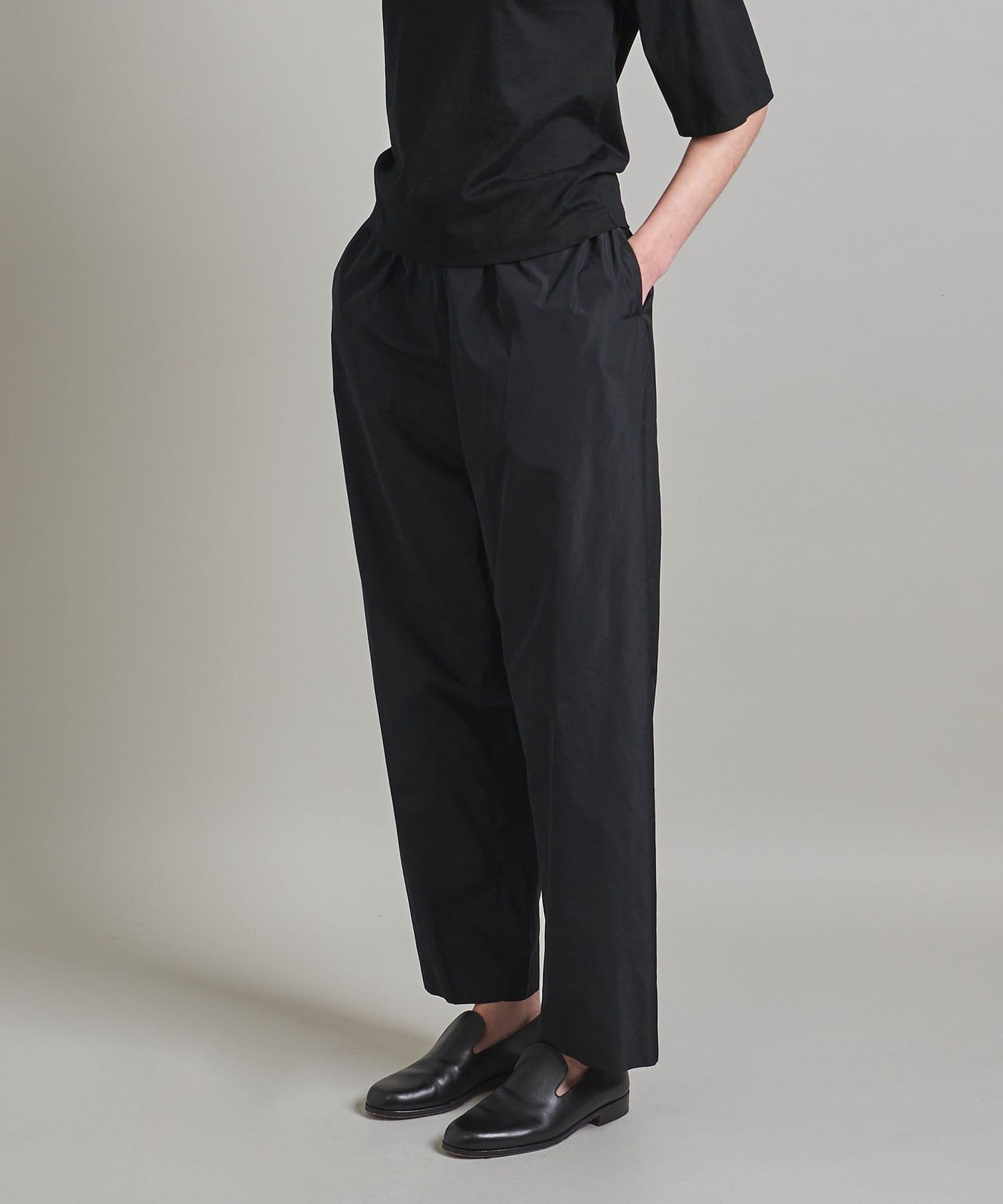 The elastic waistband gives these cropped pants a relaxed and comfortable feel, but the elegant material prevents them from looking sloppy.