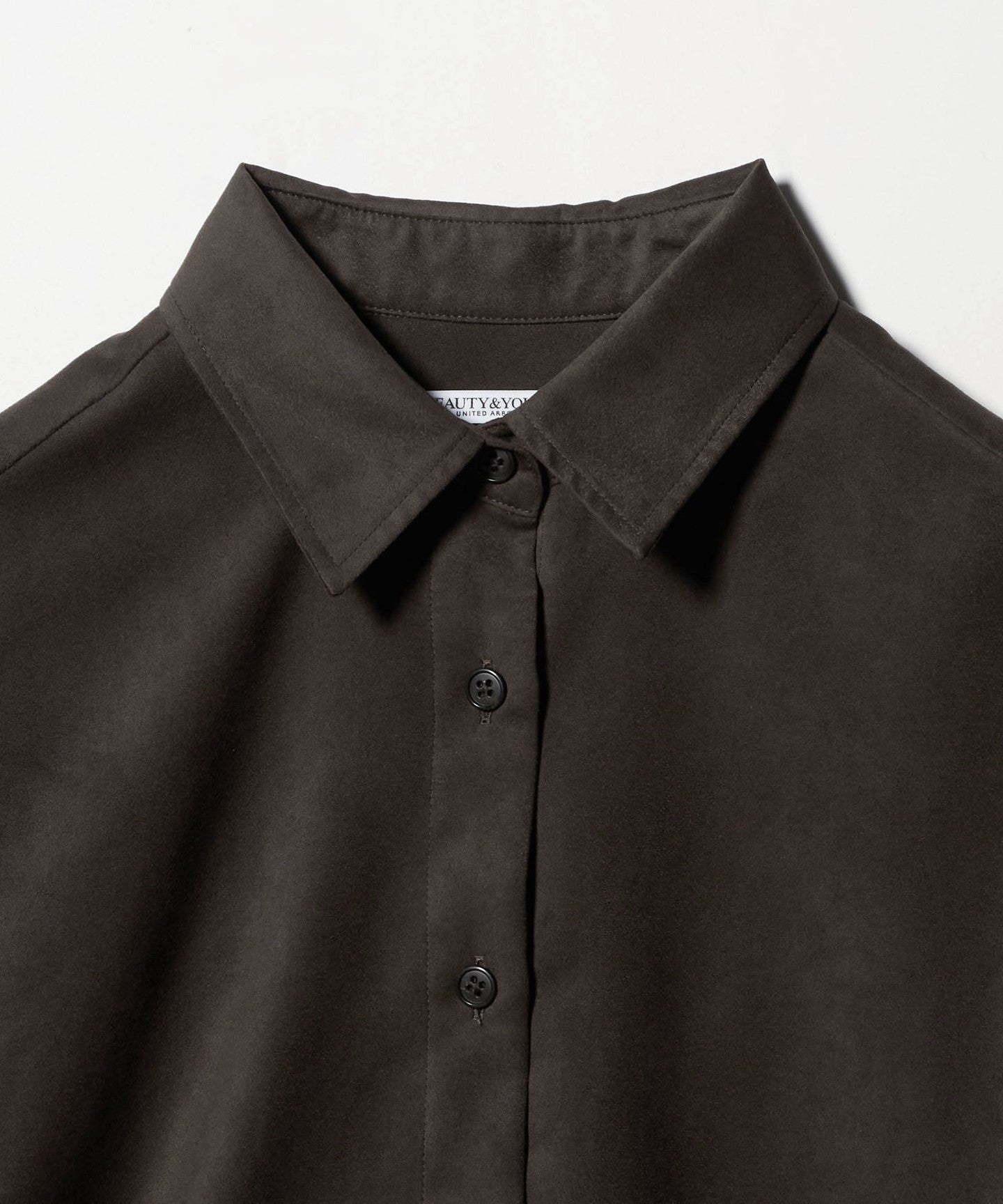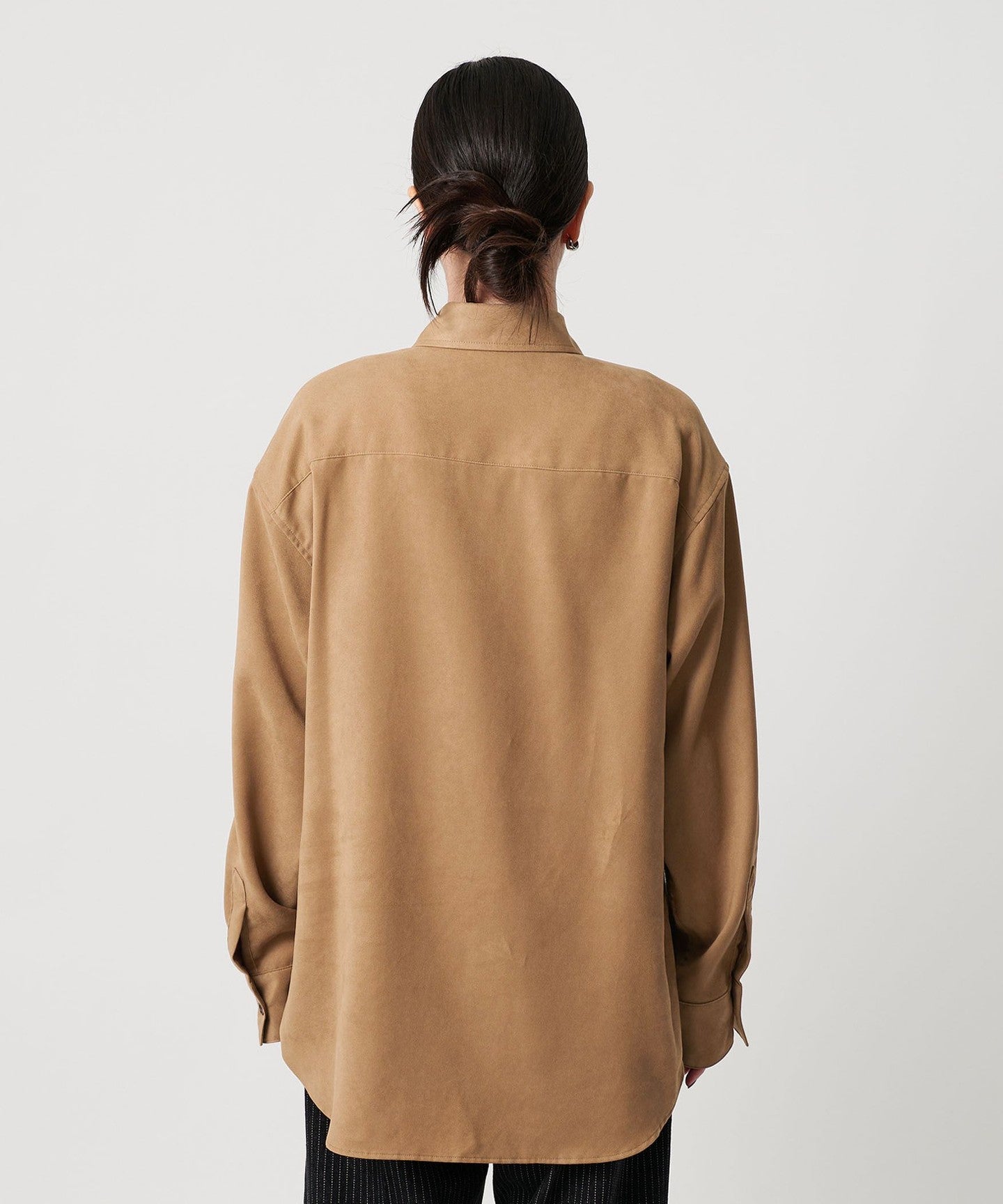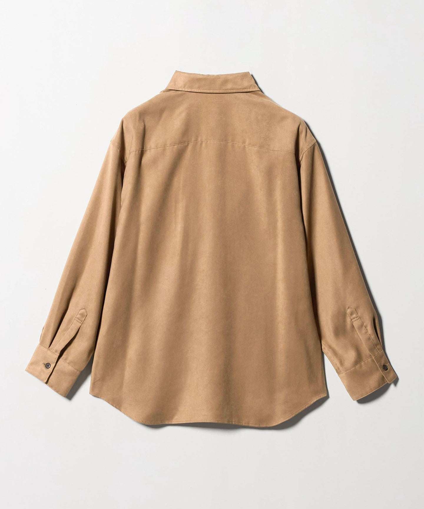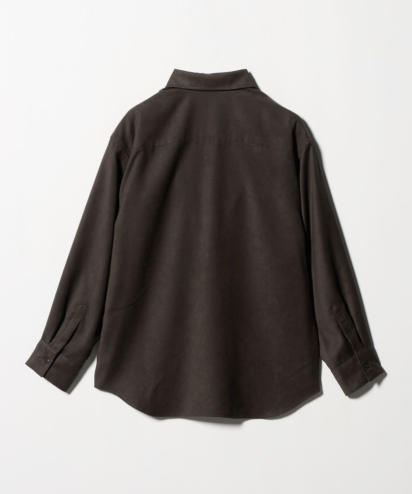 A regular collar shirt made from thin suede-like material.