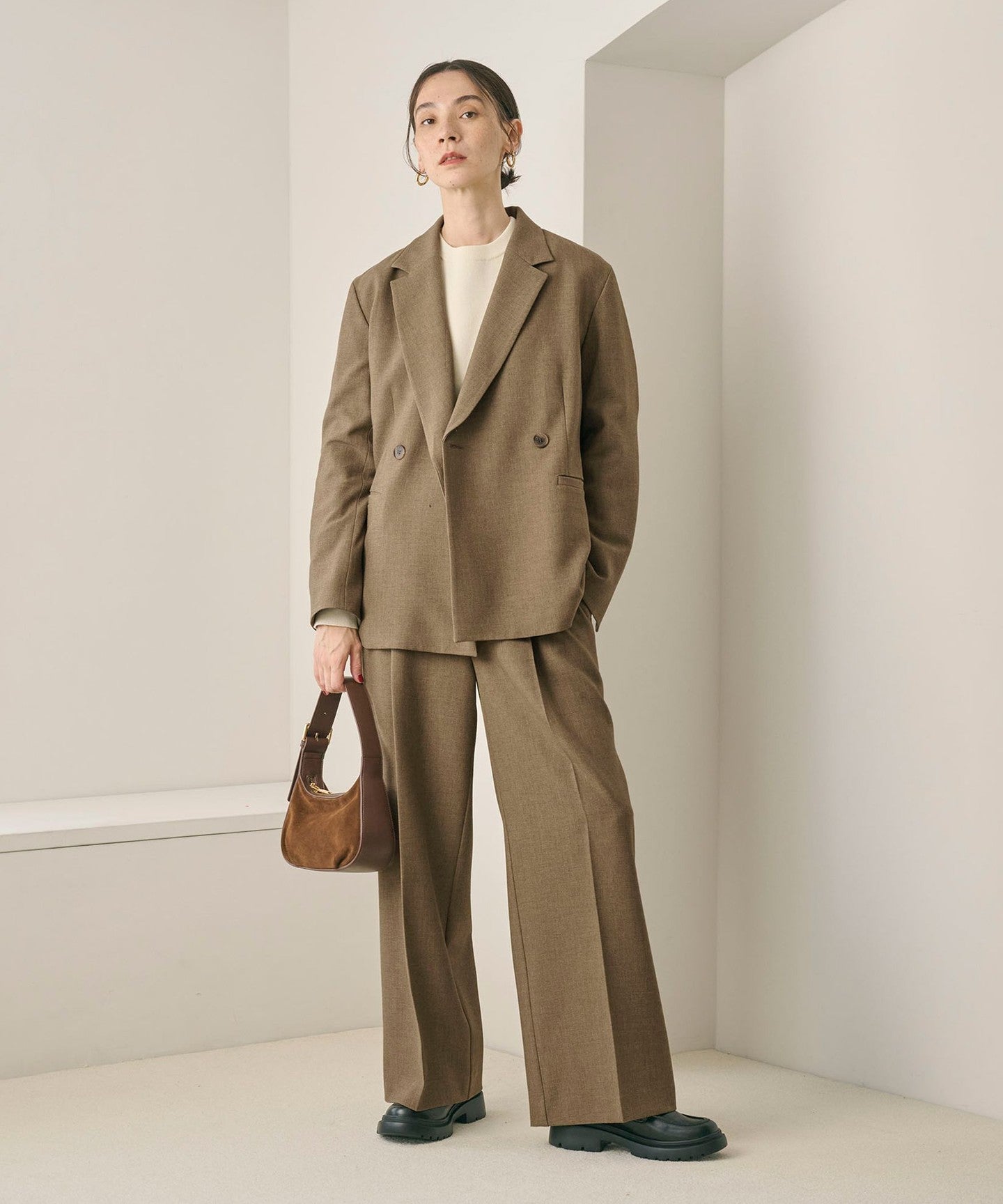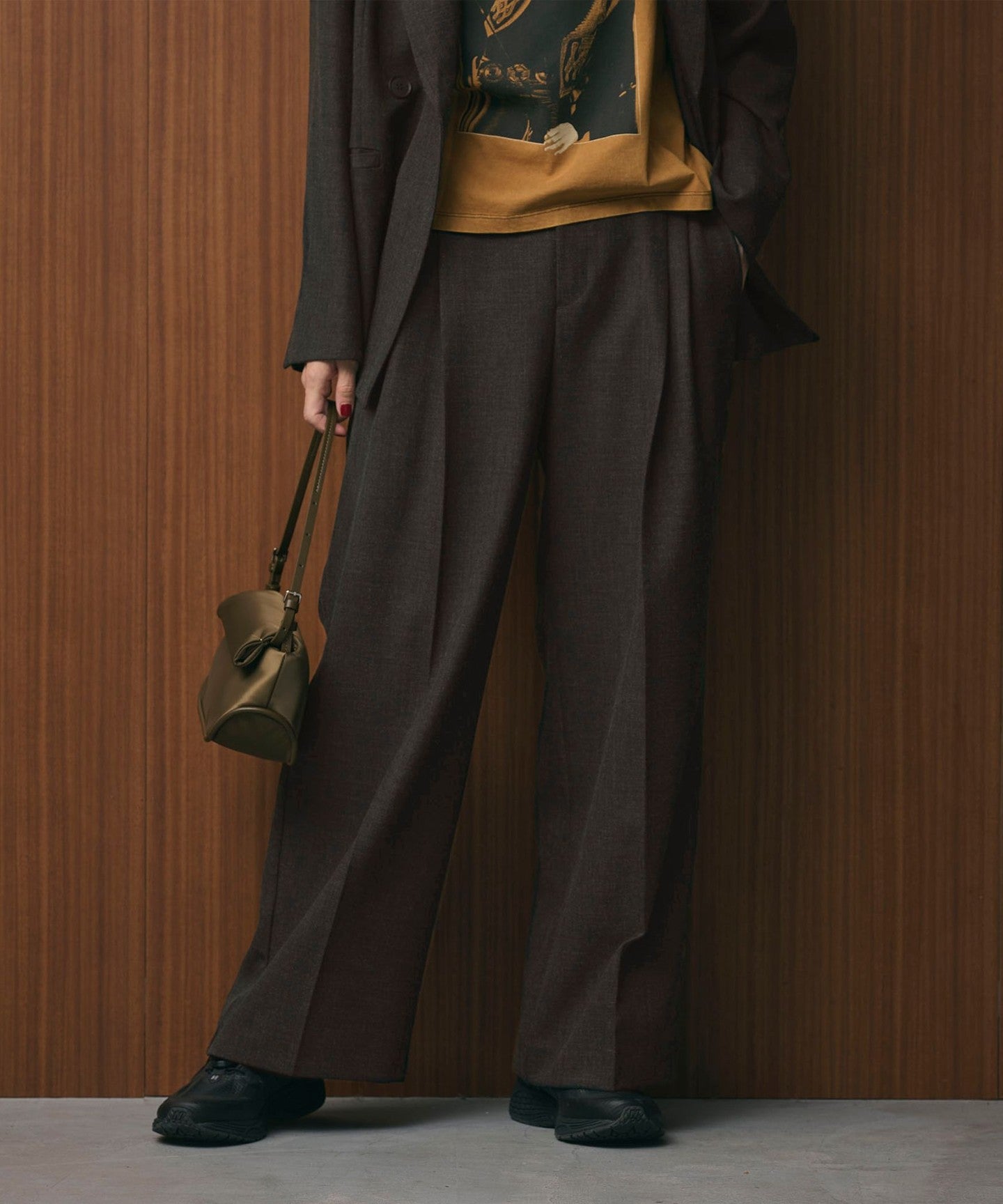 [Wardrobe DAILY MINIMAL, online only] Wool-like melange wide pants, washable