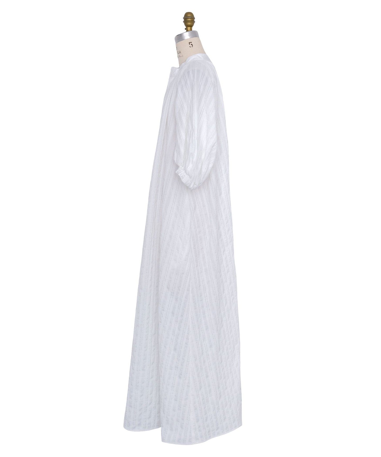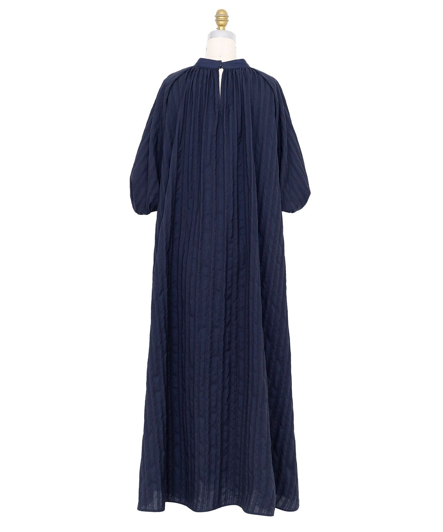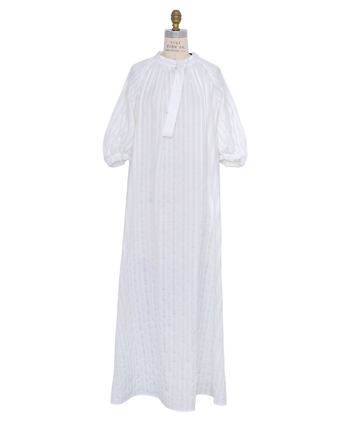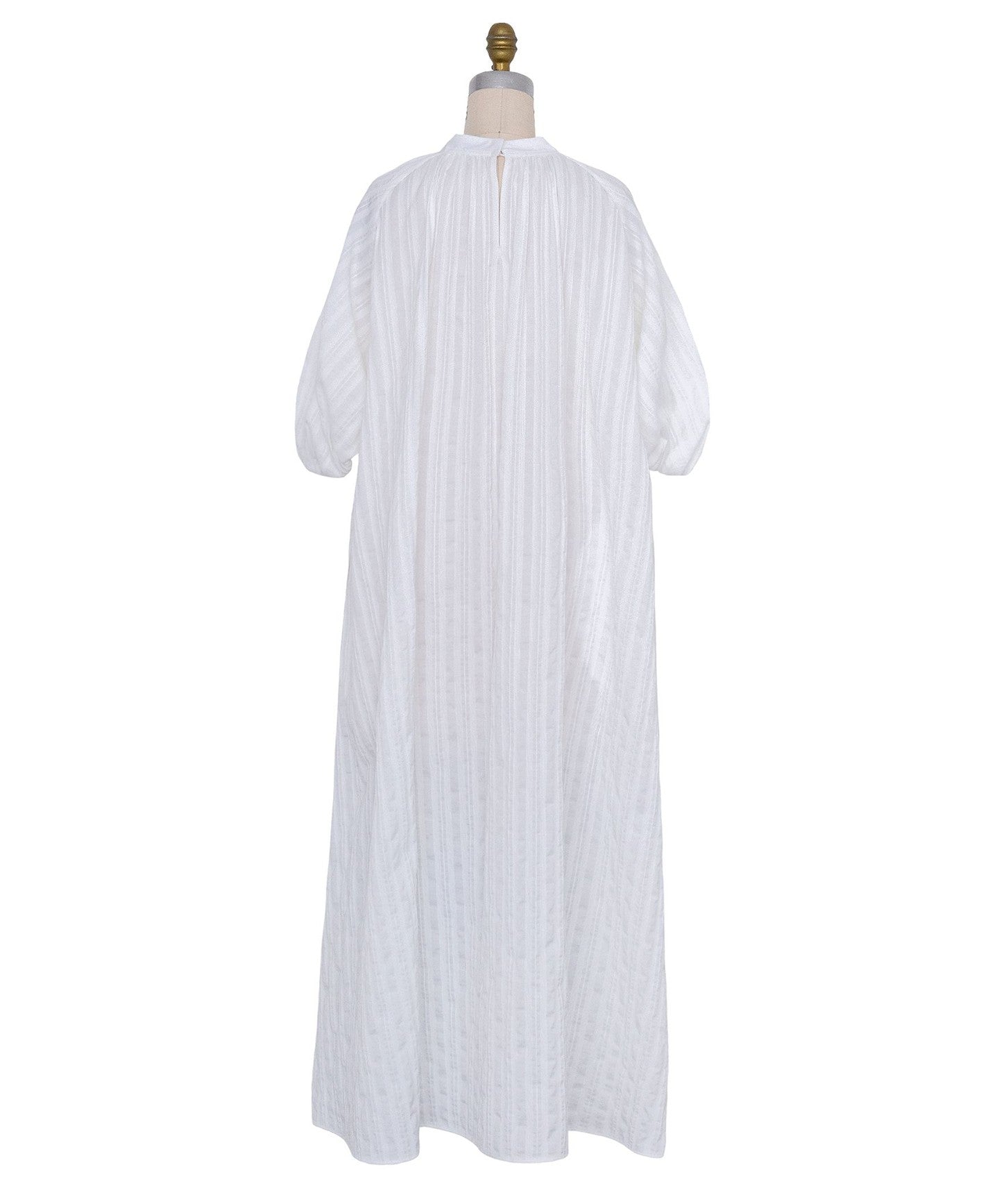 A long dress with striking balloon sleeves