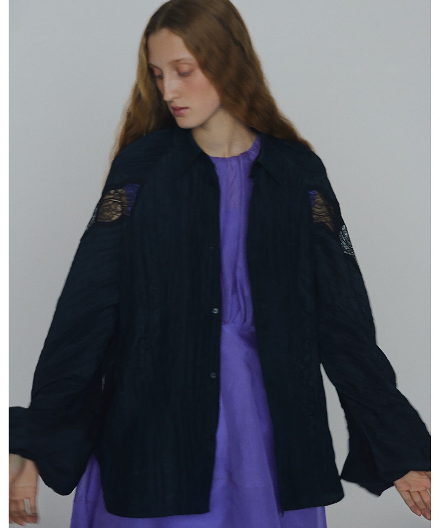 A beautiful and unique long sleeve with a combination of materials.BLOUSE