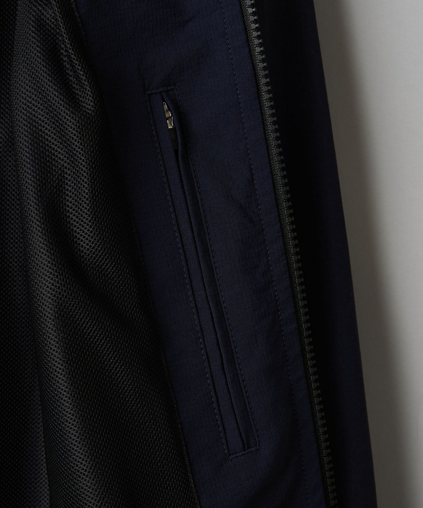 This sports jacket is made of ripstop fabric that stretches both vertically and horizontally using recycled nylon.