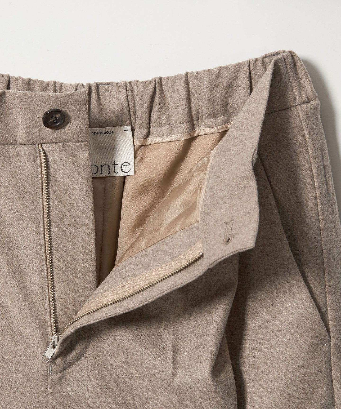 センタークリースを施しつつも後ろウエストはゴム仕様にして楽な着心地に仕上げた1枚です。