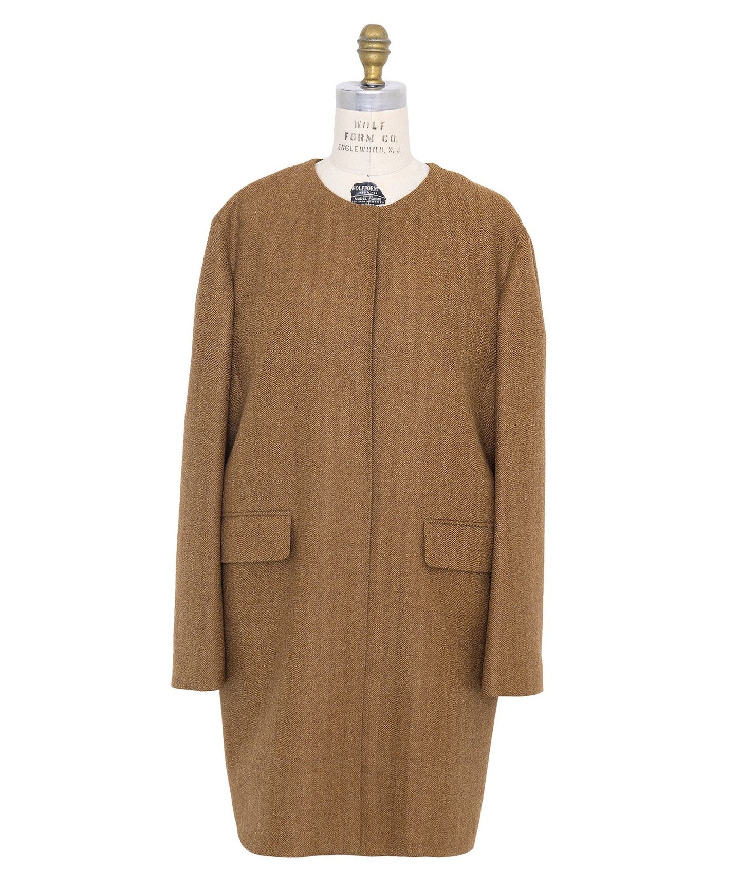 DRAWERWINTER1 Flower Jacquard Piping No Collar Coat