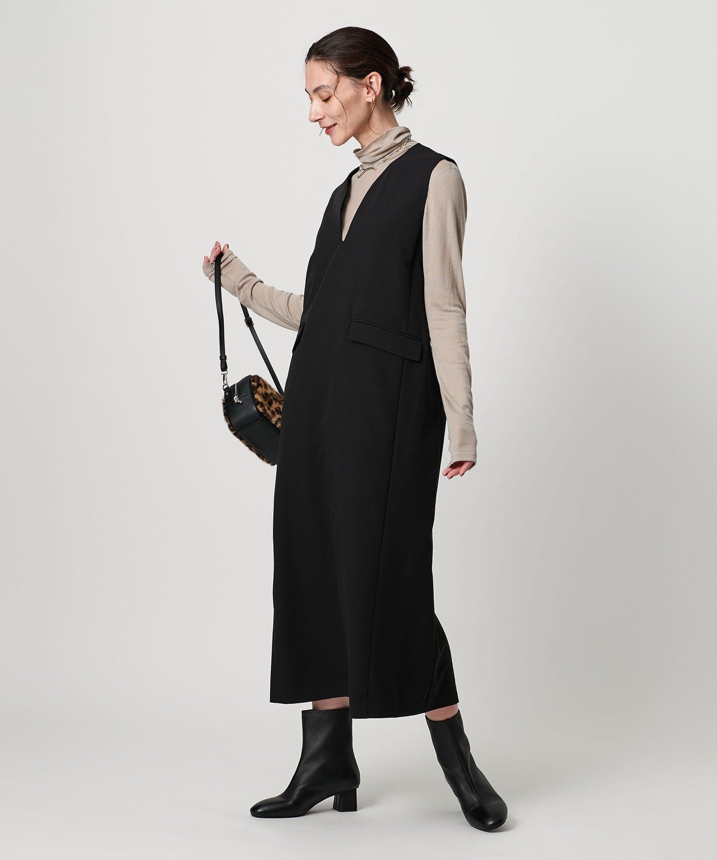 Another great thing about this piece is that it can be worn in any season, from wearing it alone to pairing it with a turtleneck in the fall and winter.