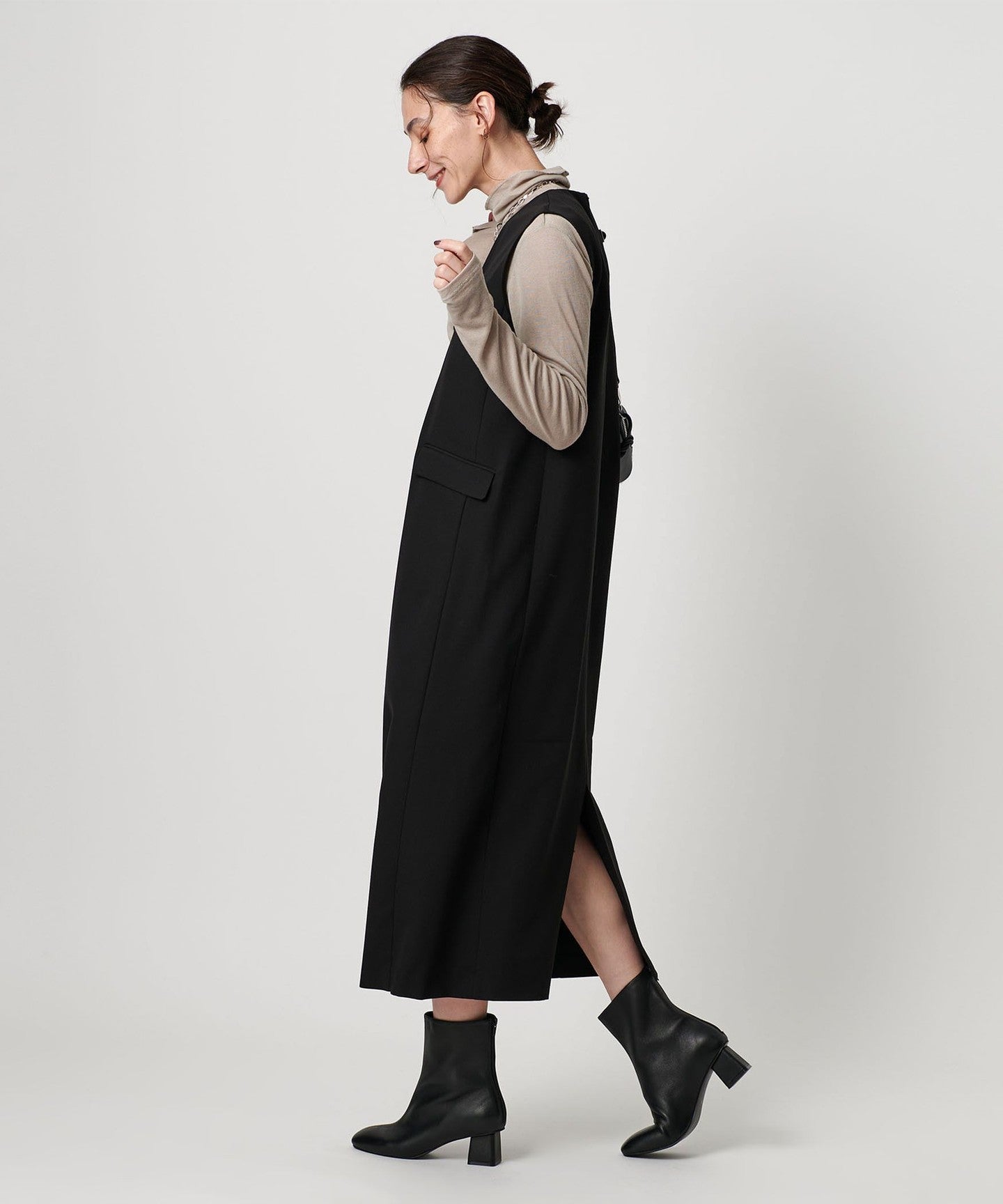 The back slit allows for comfortable movement and goes well with a wide range of shoes, from flats to boots.