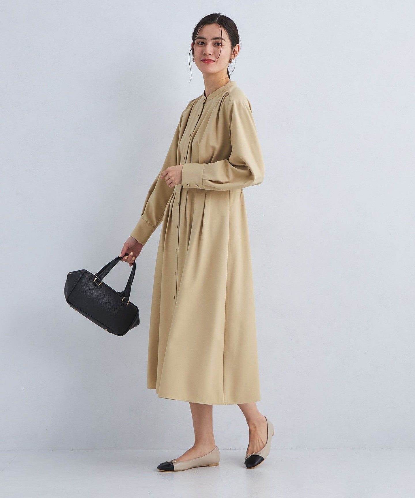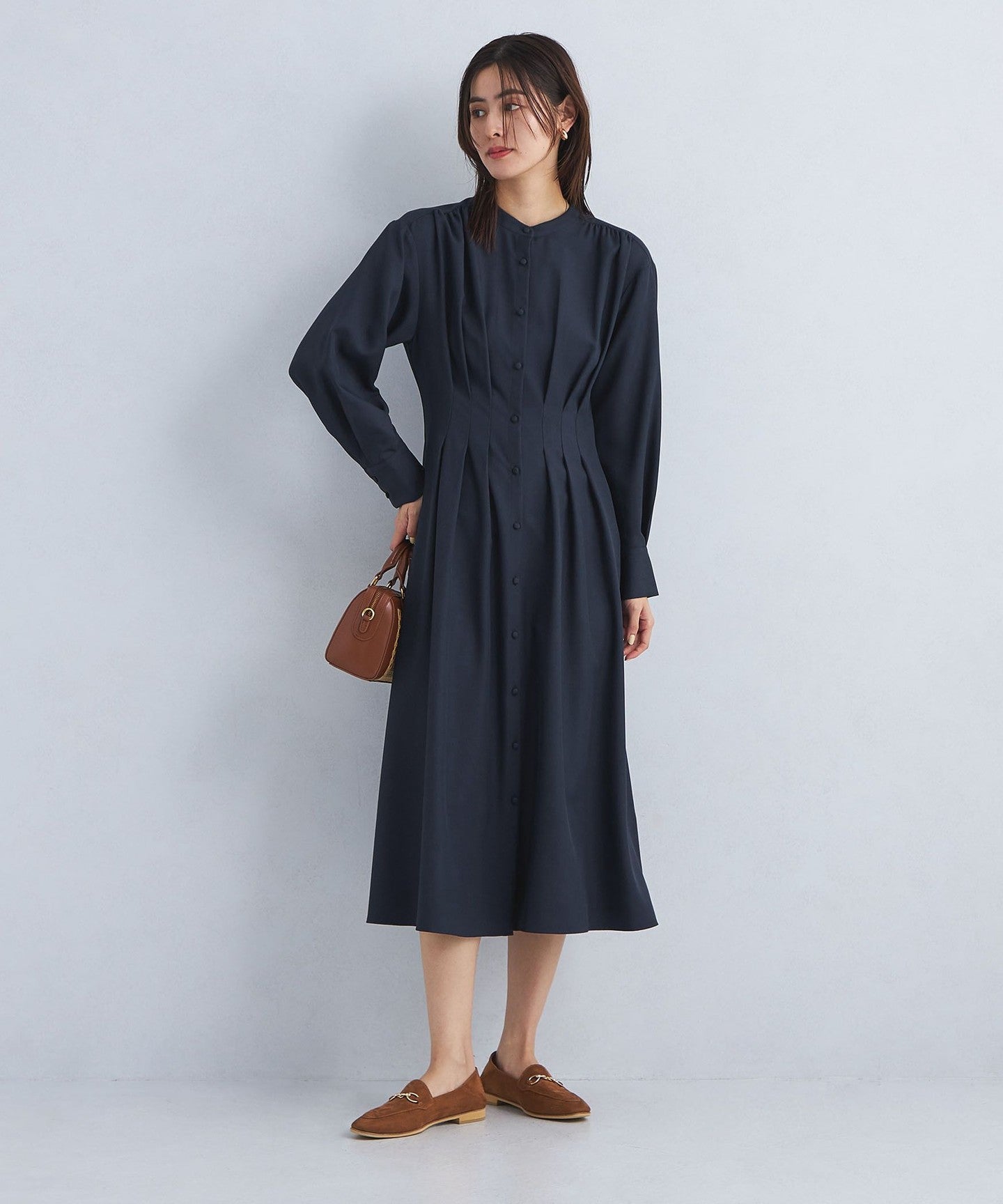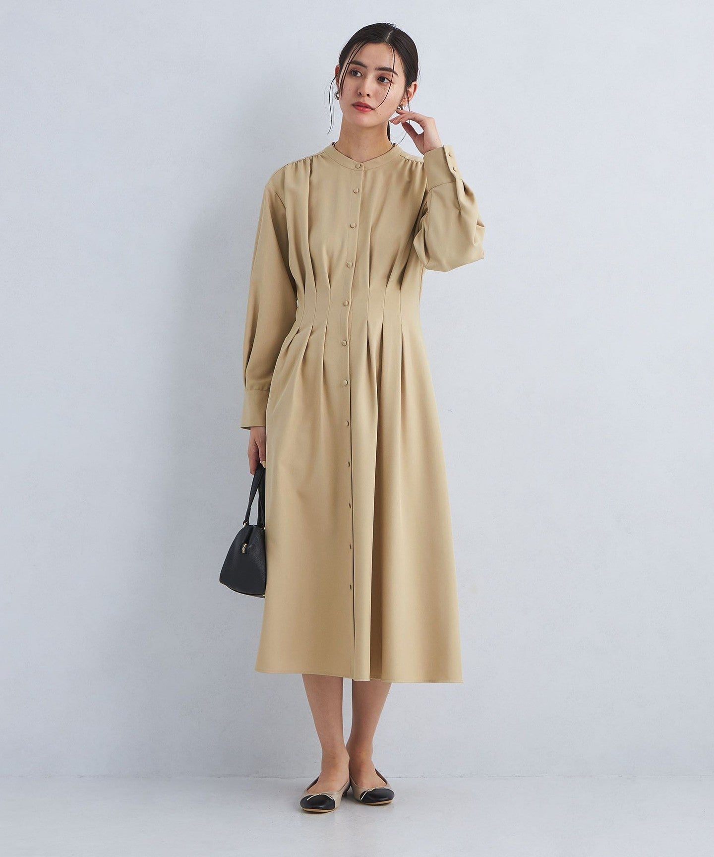 The front tuck design gives an elegant impression.