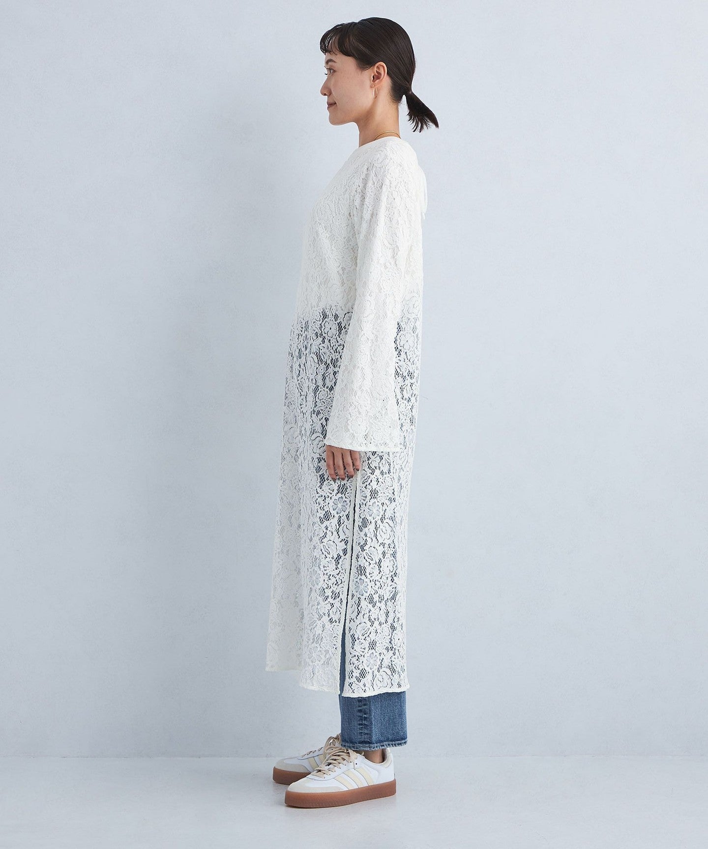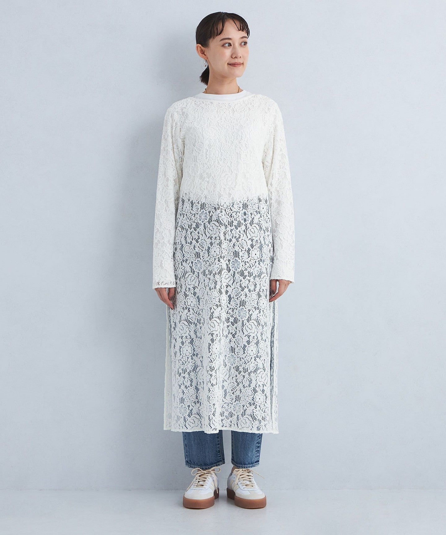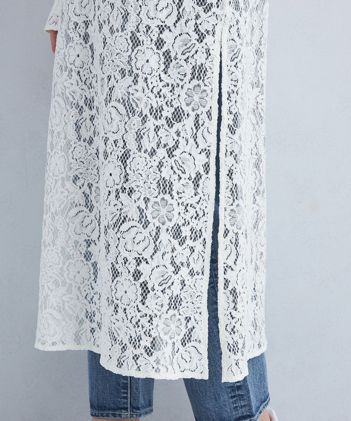 The deep slit design on the side allows you to enjoy layering with bottoms.