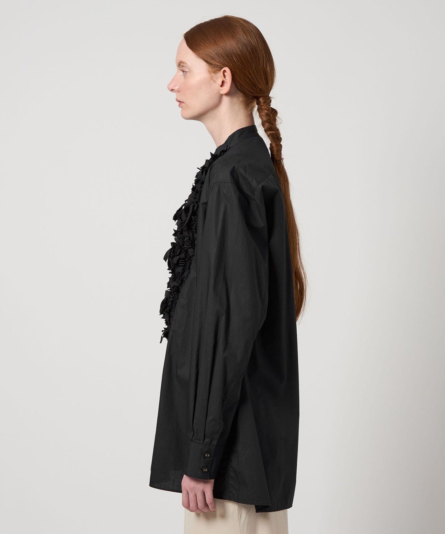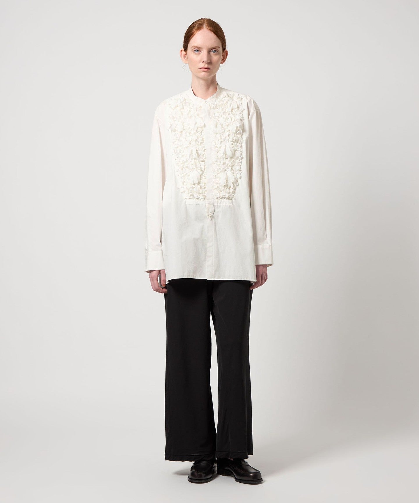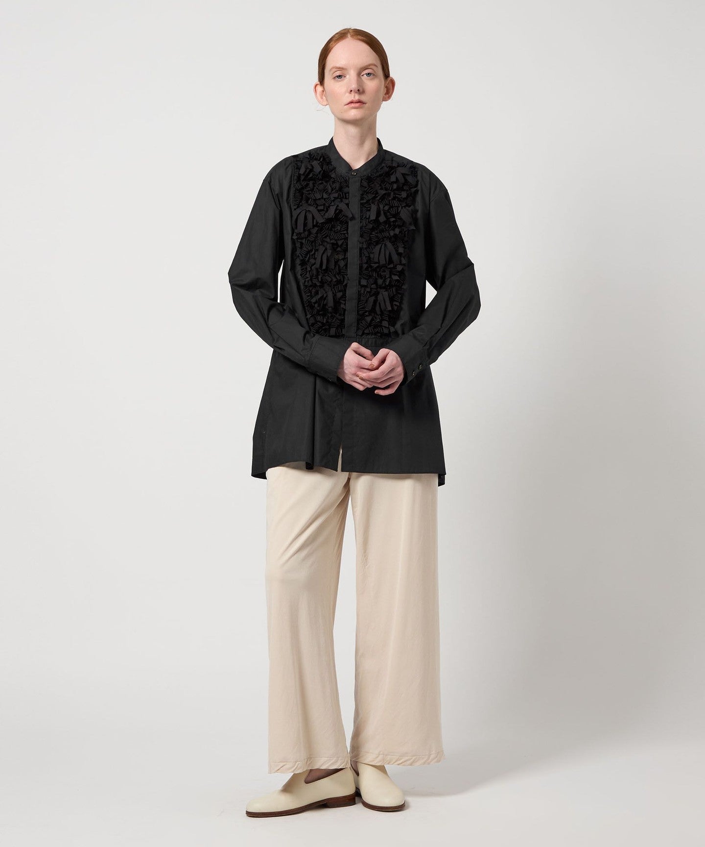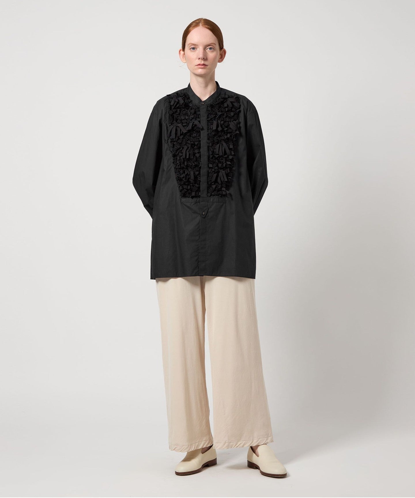 Although it has a relaxed silhouette, the band collar gives it a clean and elegant feel.