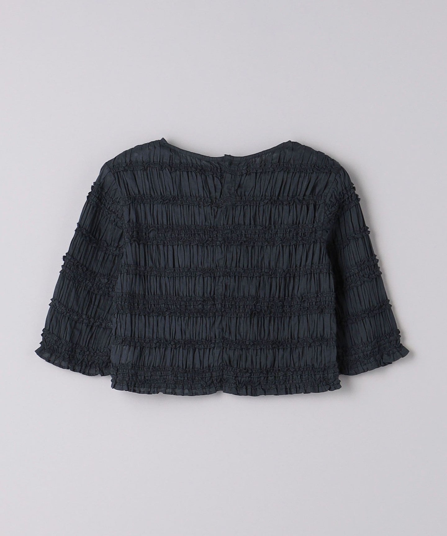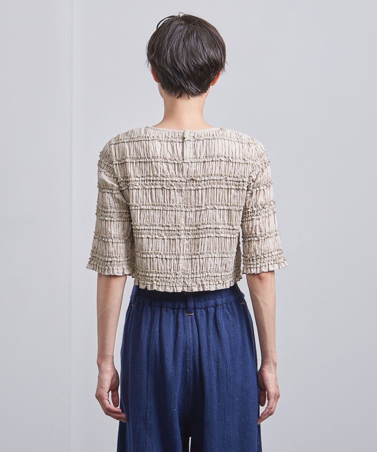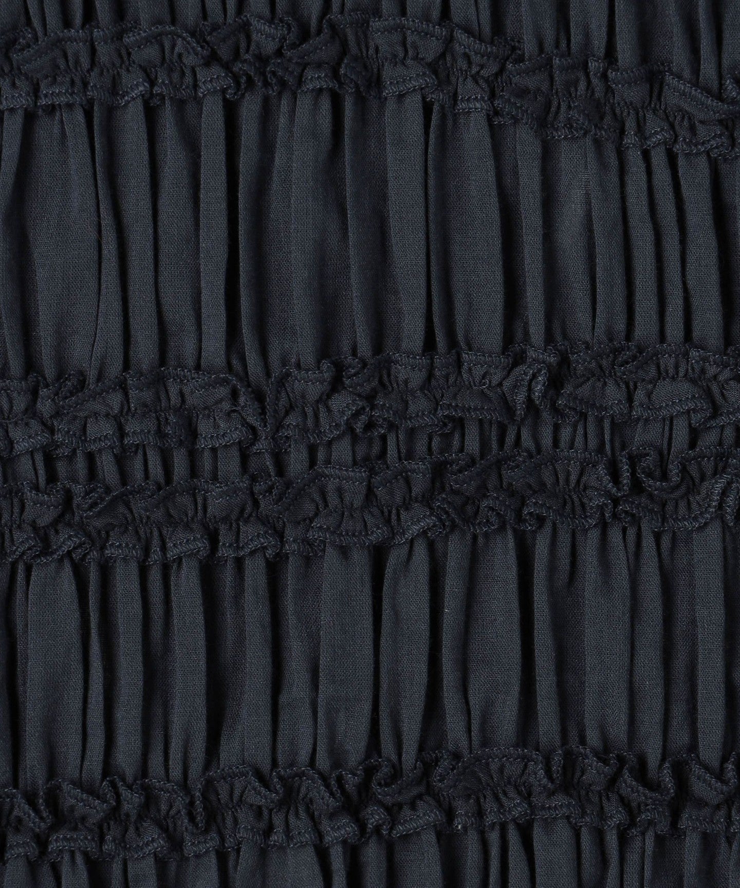 Taking advantage of the thinness of the voile, we gathered the fabric and sewed shirring elastic onto it along with the ruffles.