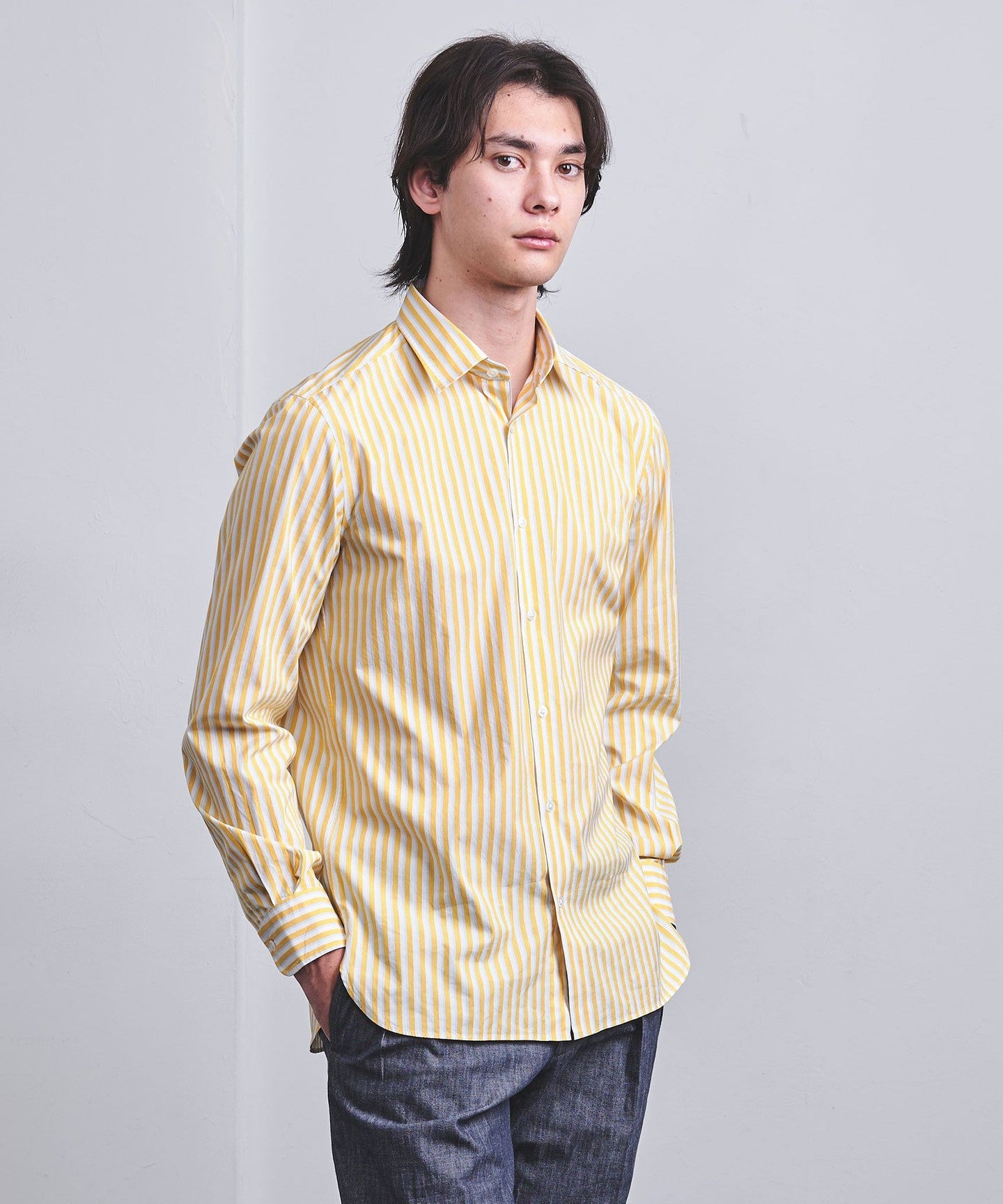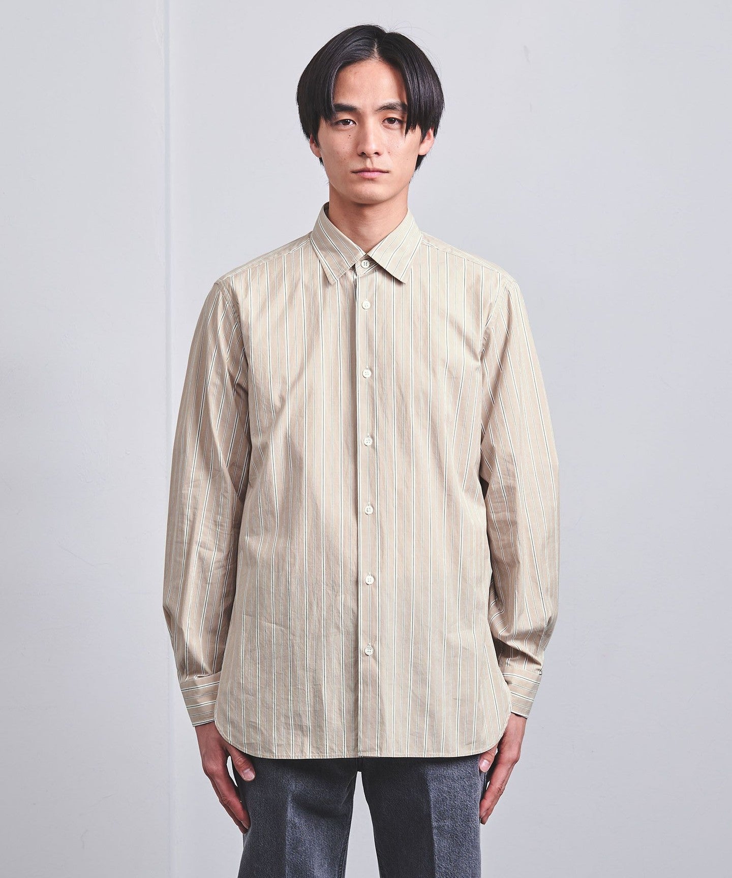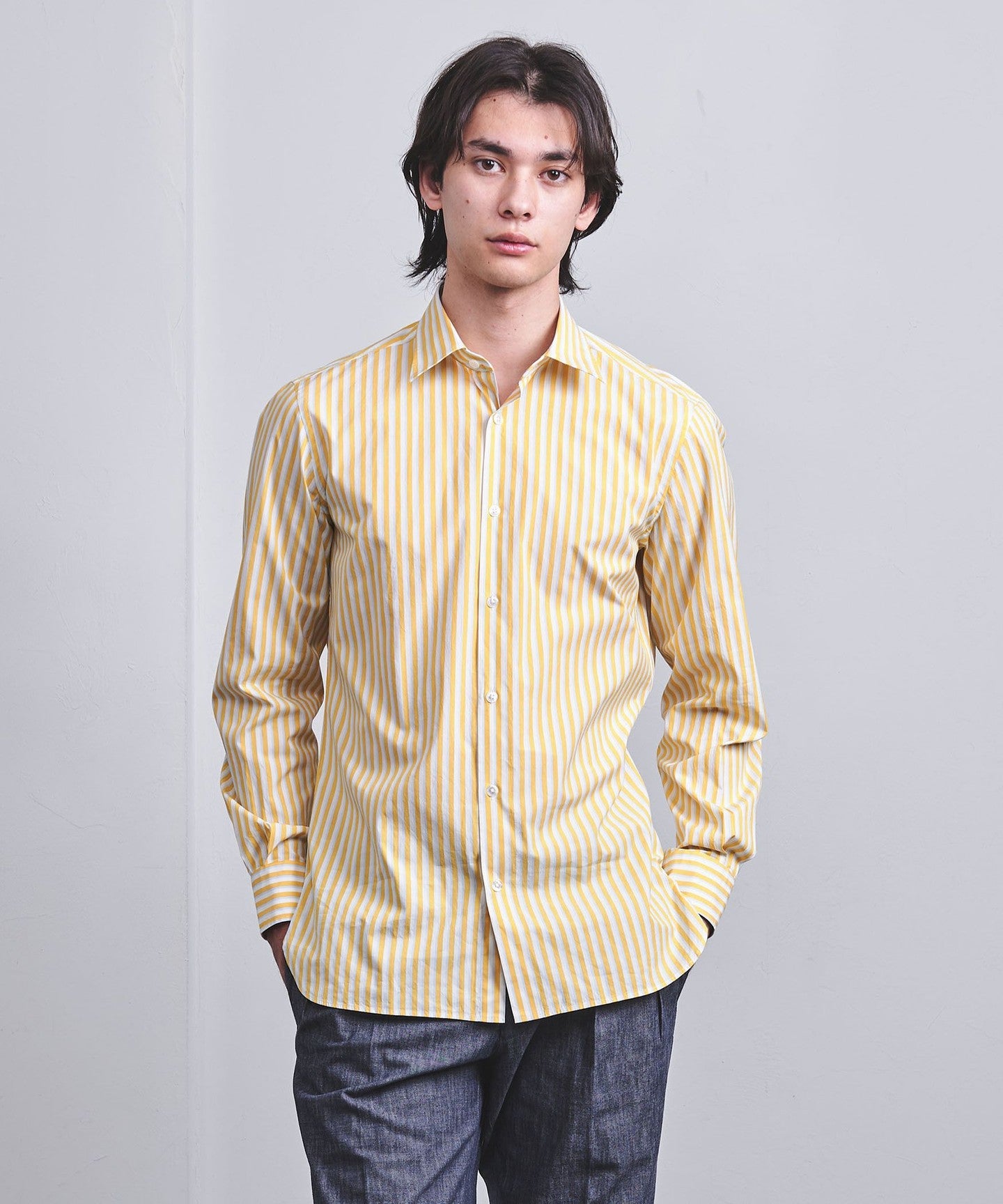 ALBINI Colored Stripe Semi-Wide Collar Shirt