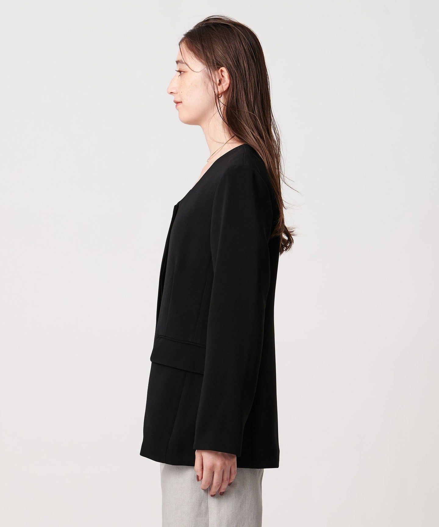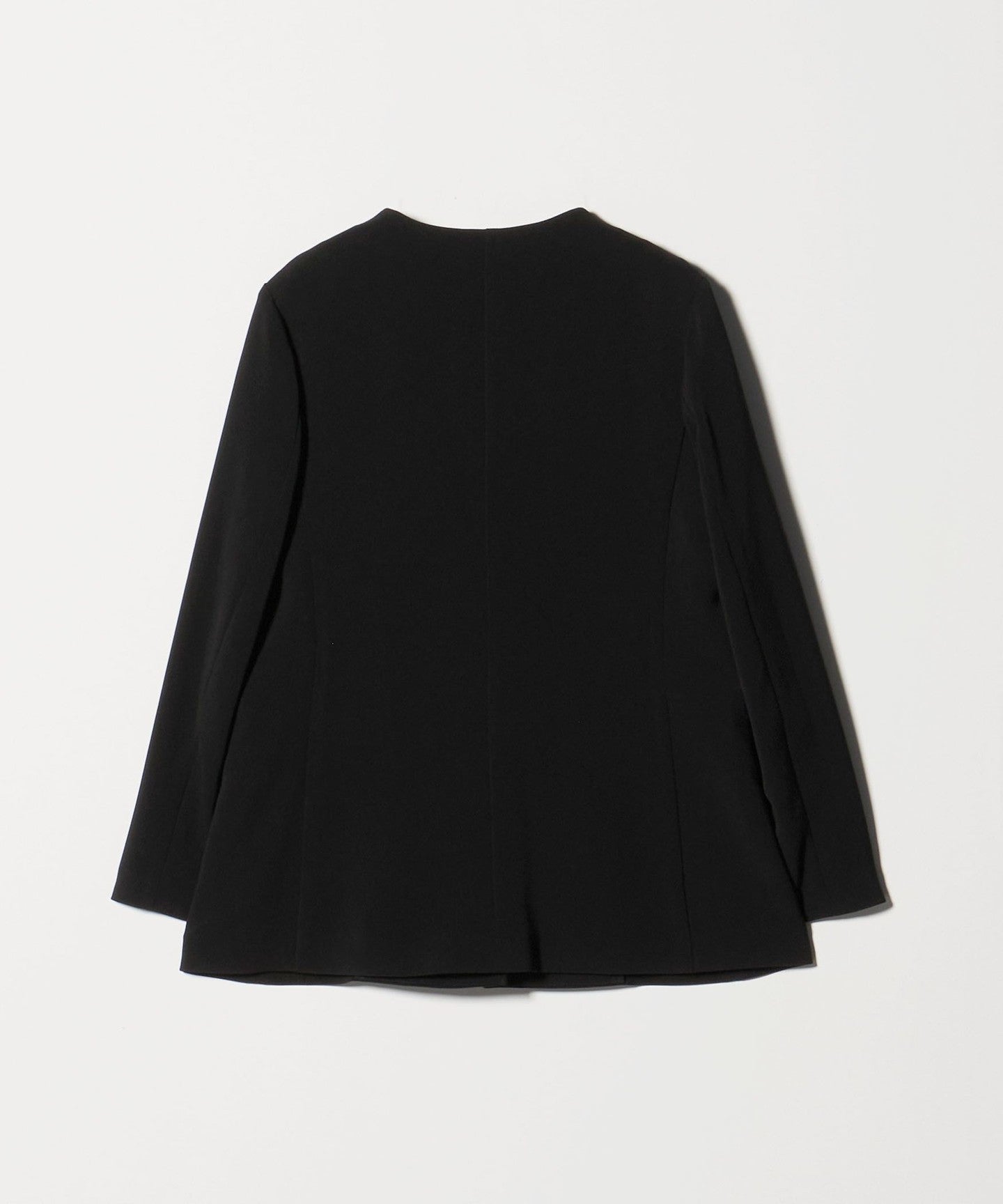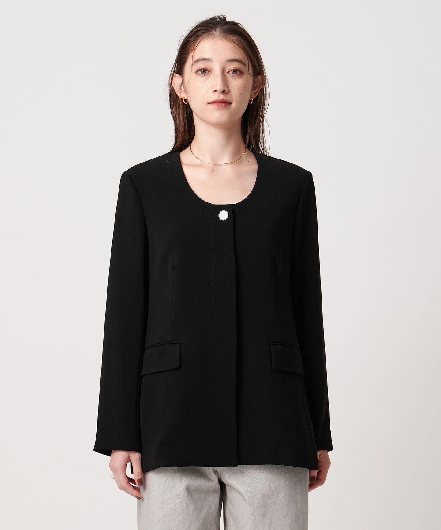 This jacket's clean, open U-neckline and slim silhouette accentuate femininity.