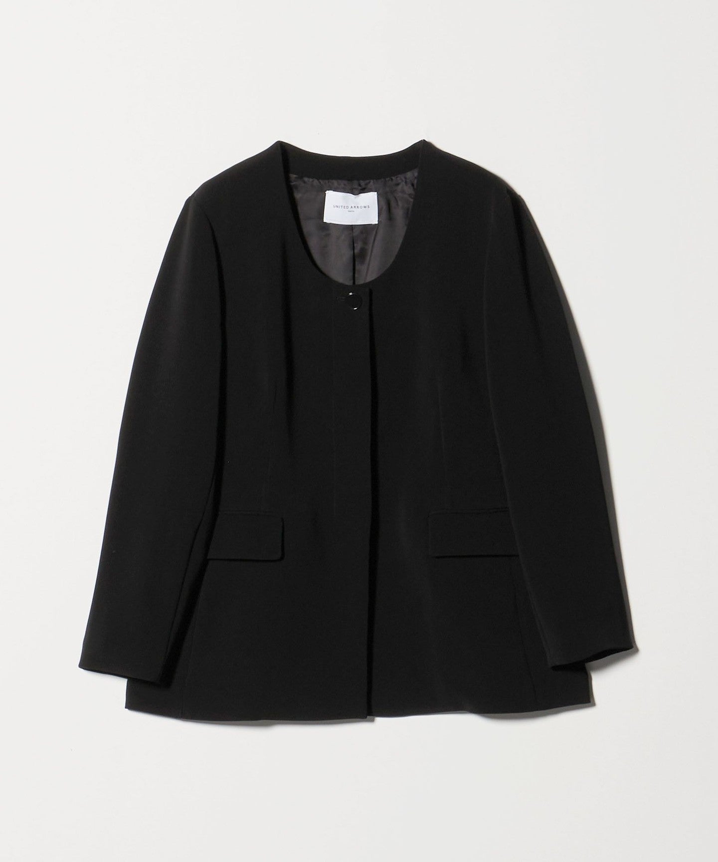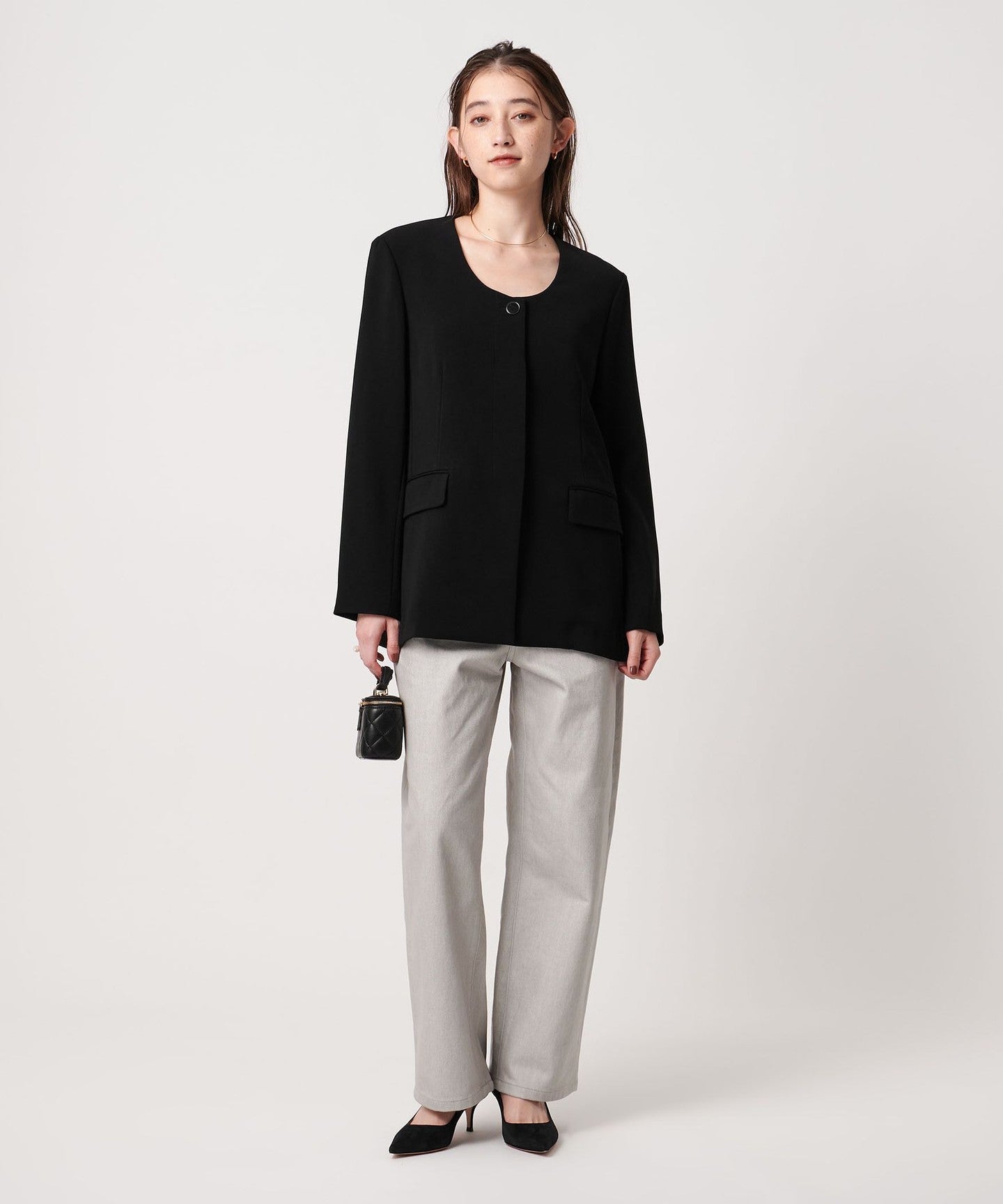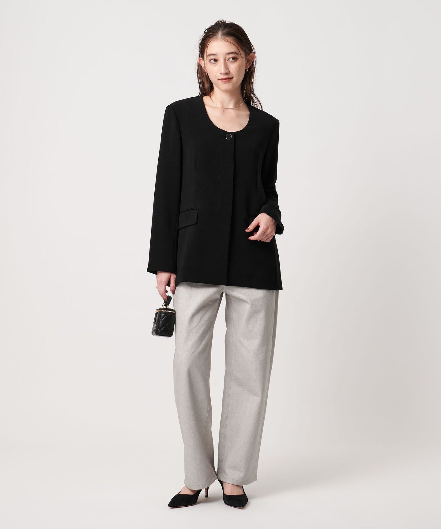 This jacket's clean, open U-neckline and slim silhouette accentuate femininity.