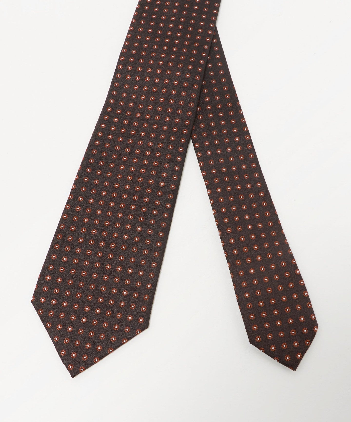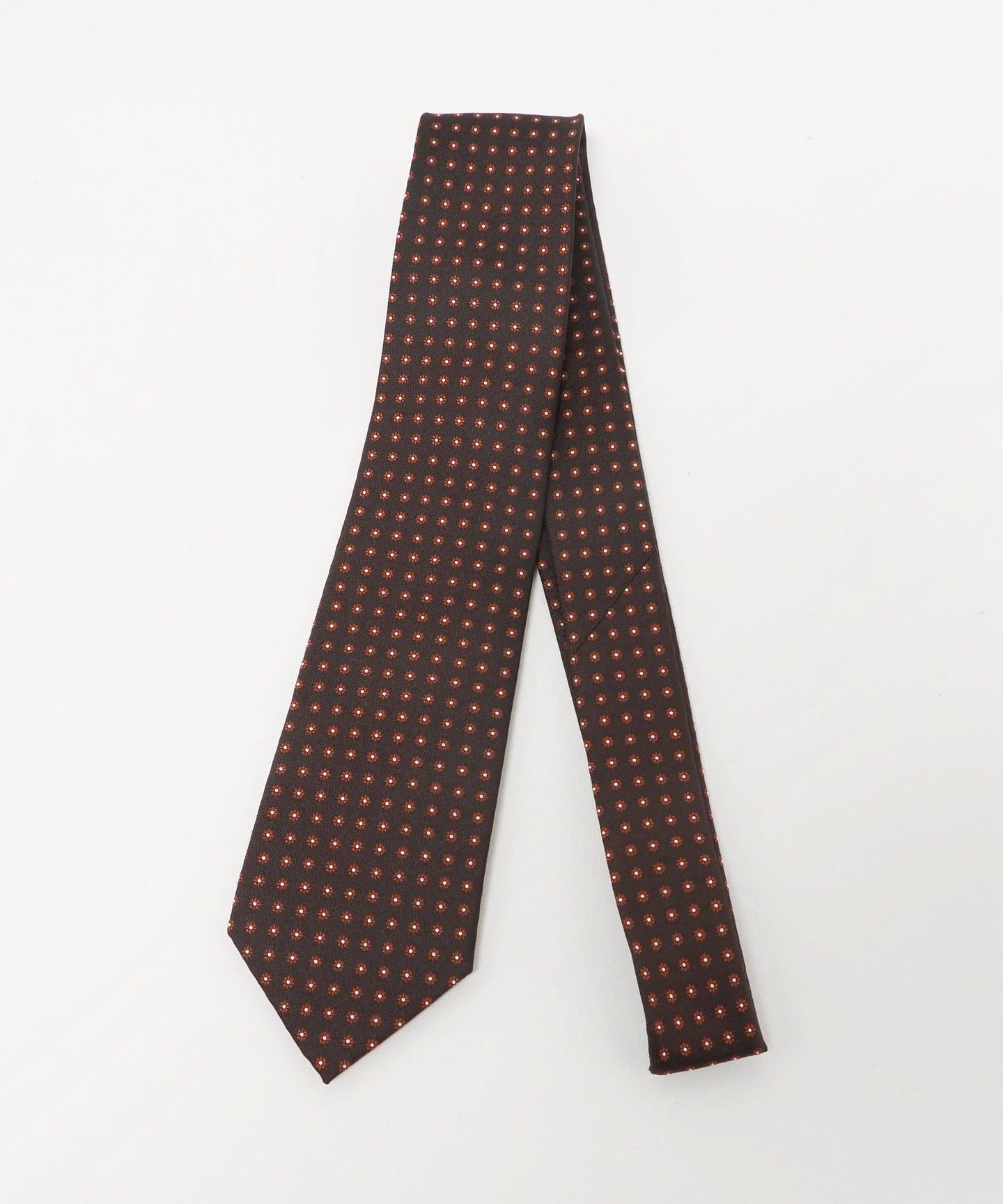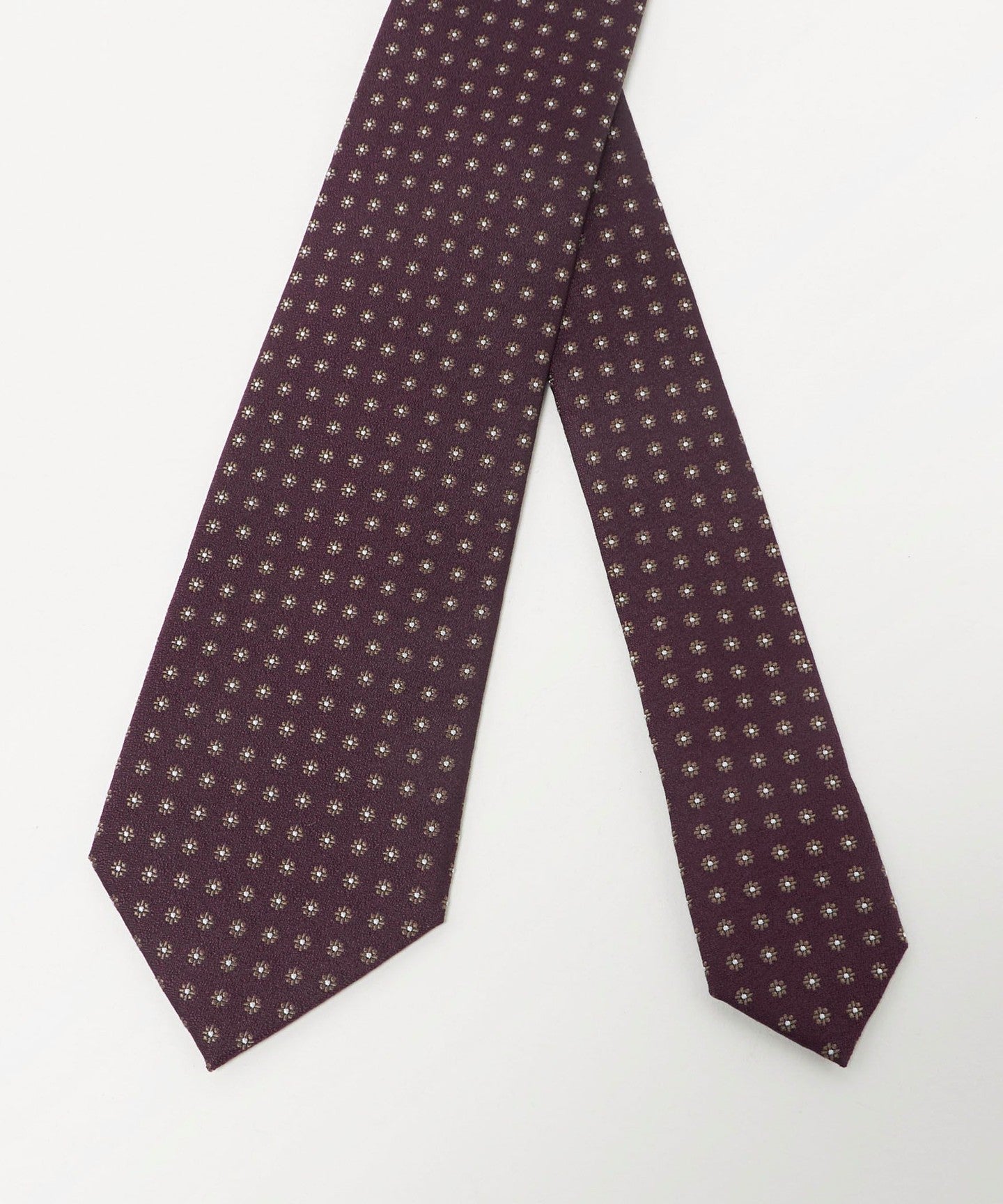 胸元に華やかさを添える、フラワー調の小紋柄のネクタイ。
