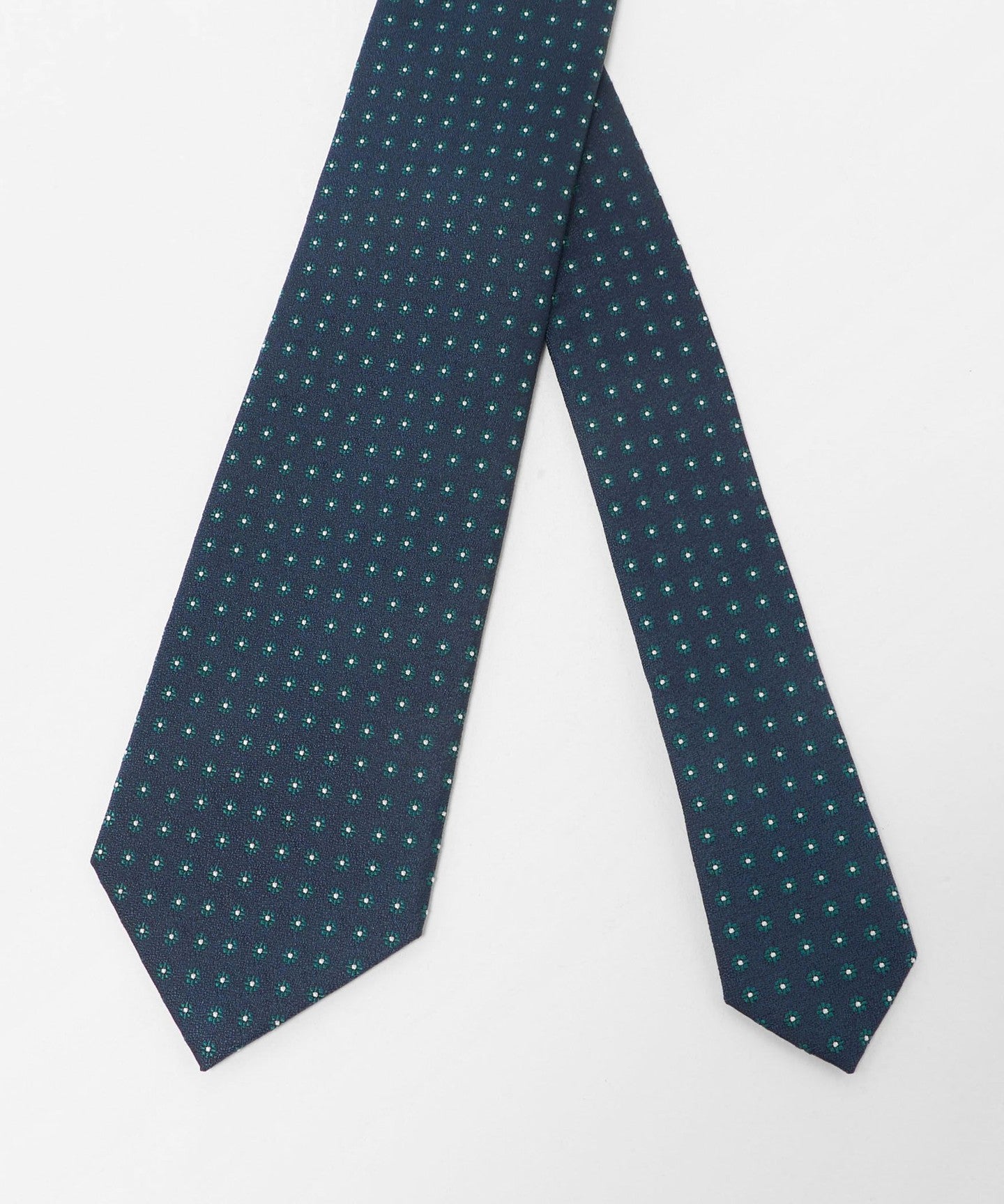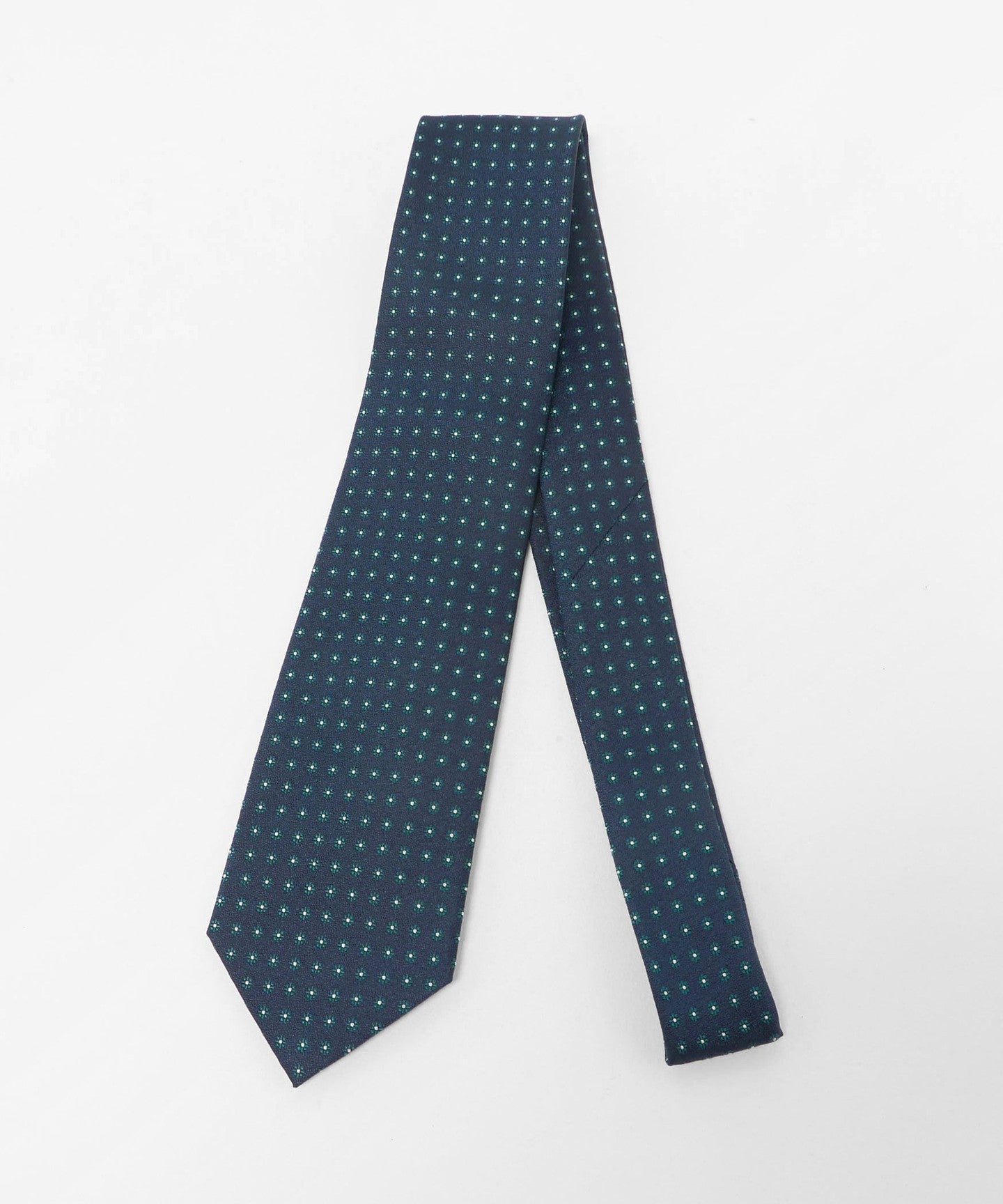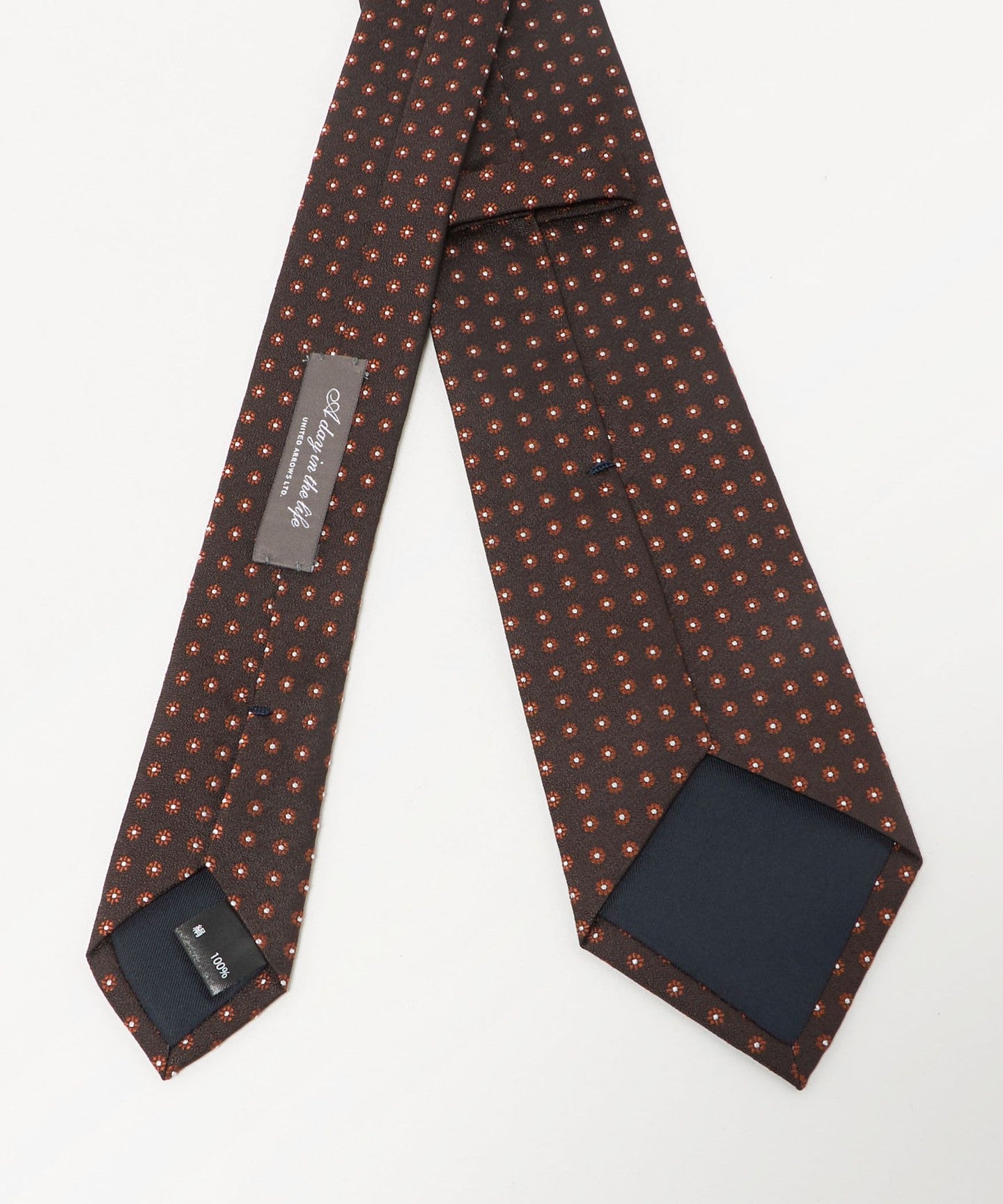 胸元に華やかさを添える、フラワー調の小紋柄のネクタイ。
