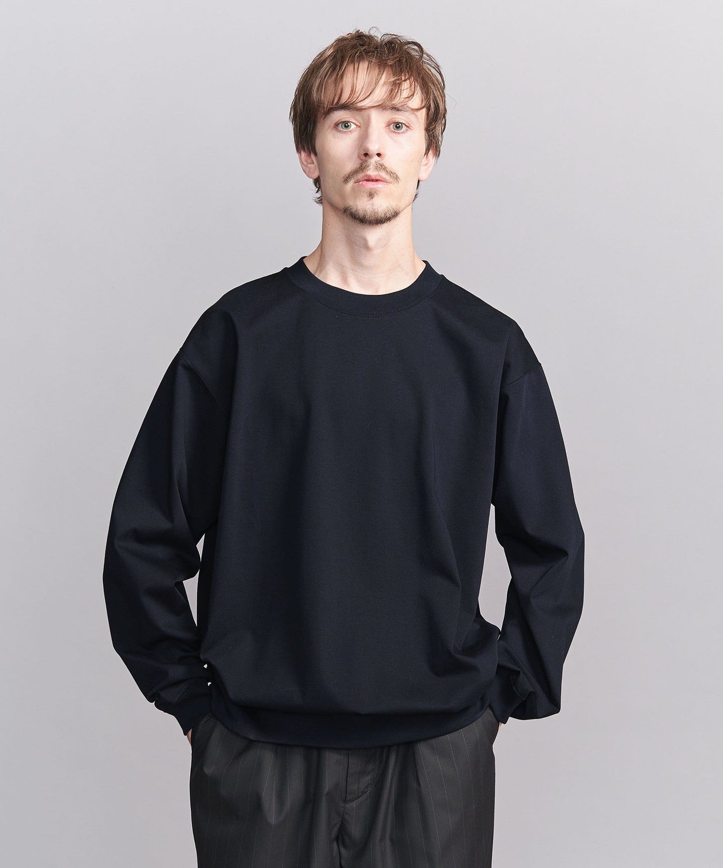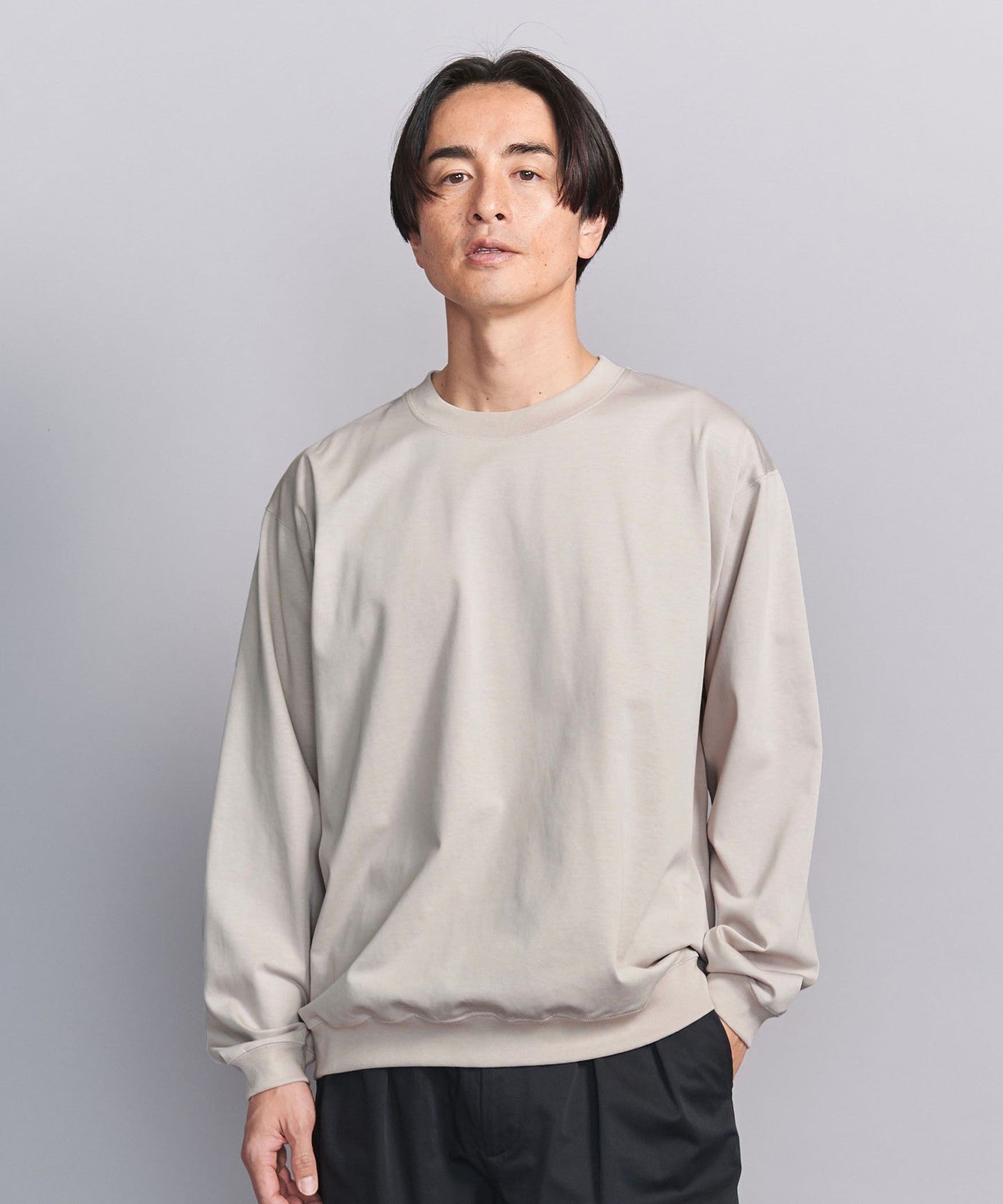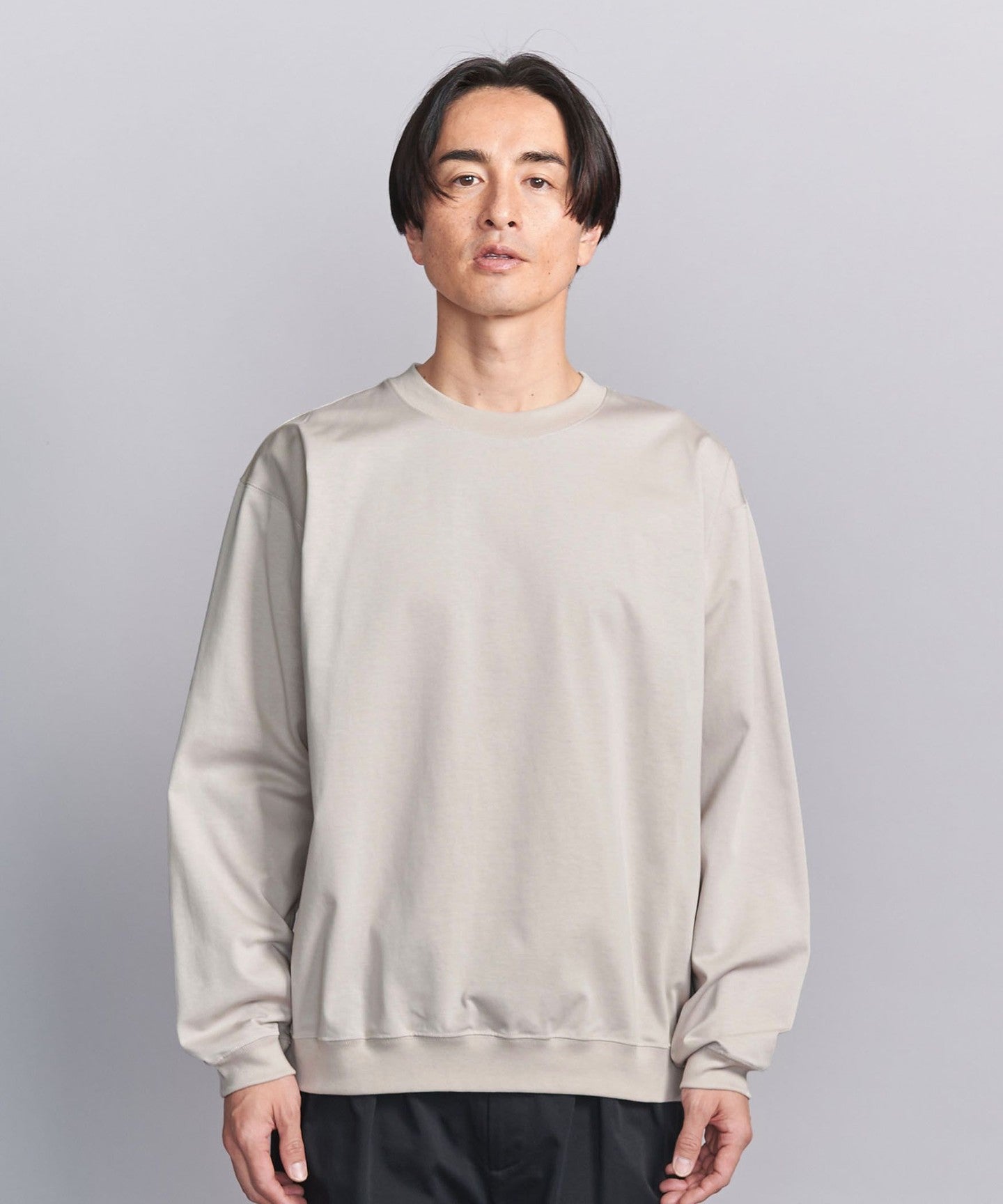 A cut-and-sew top made from T-shirt fabric for a neat look, in a sweatshirt style.