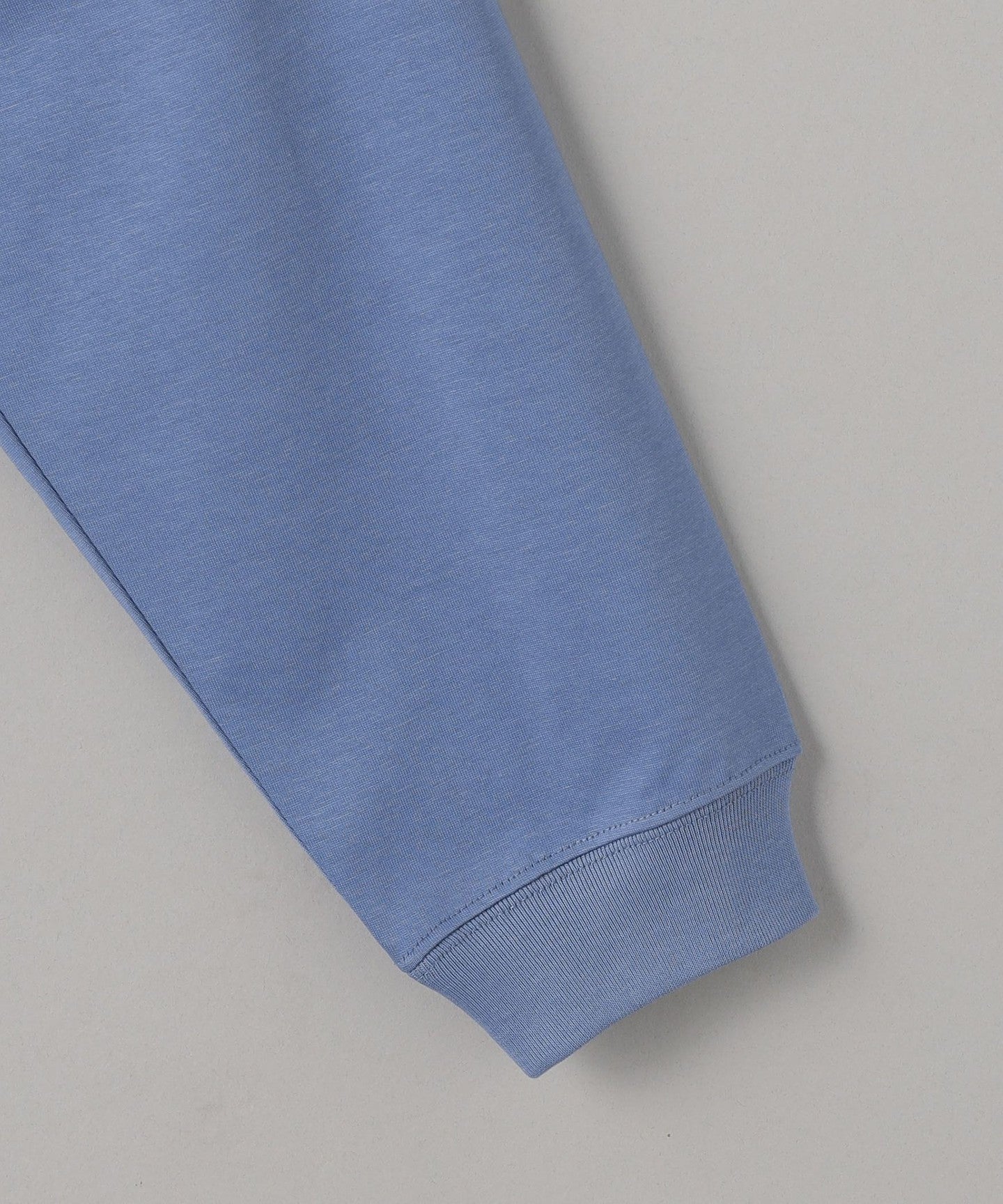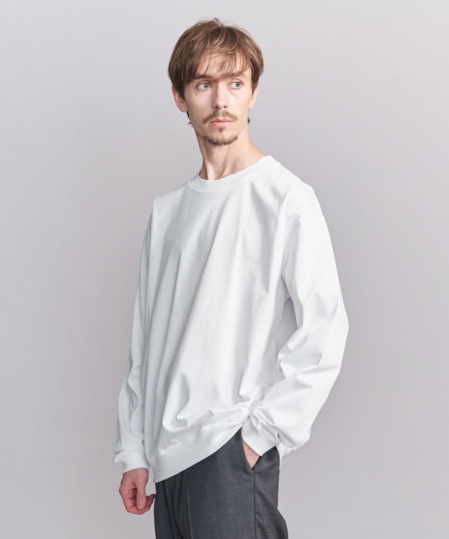 This slightly thin jersey fabric is made from 40-single-ply Indian cotton and has been given a special mercerization process.
