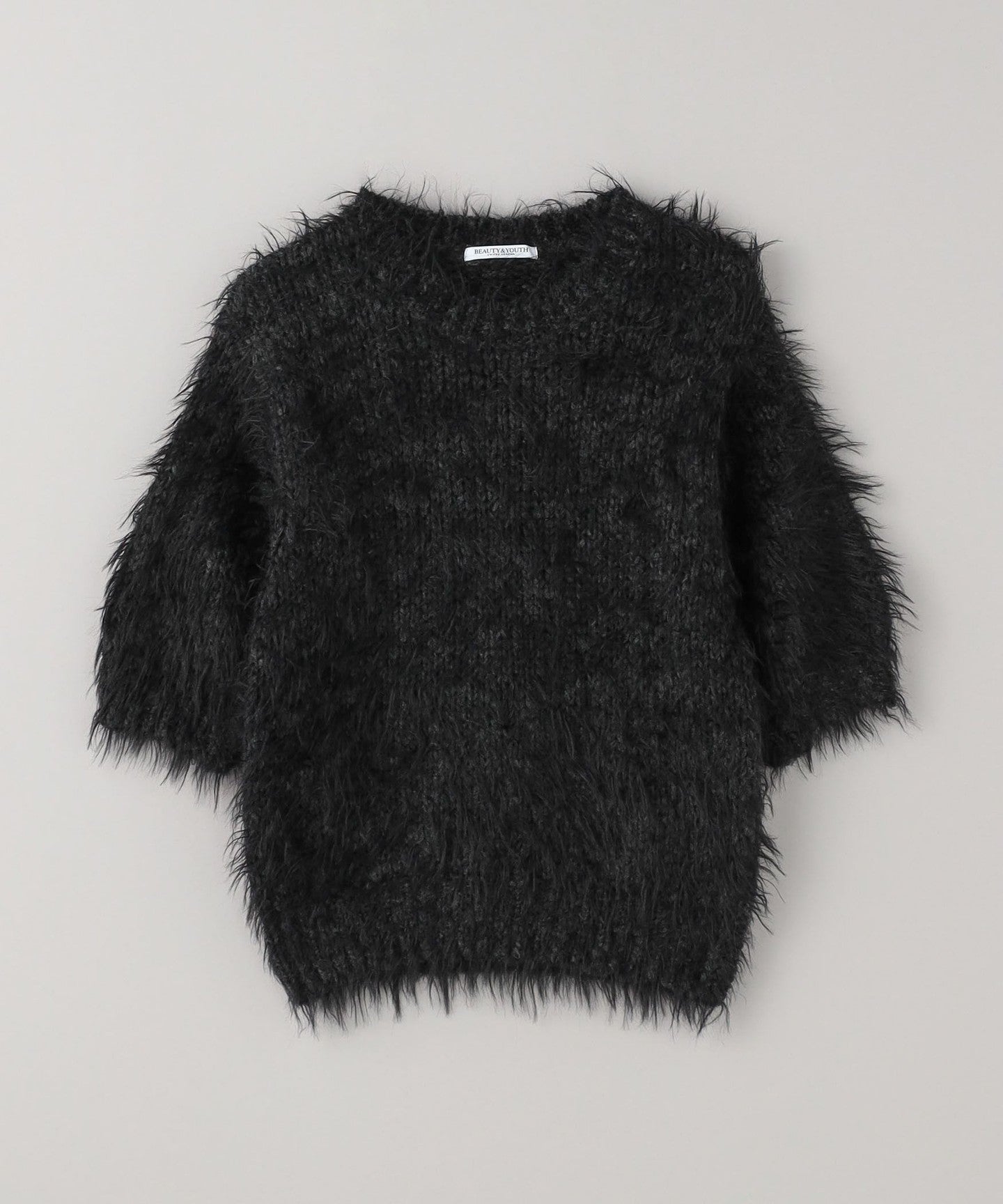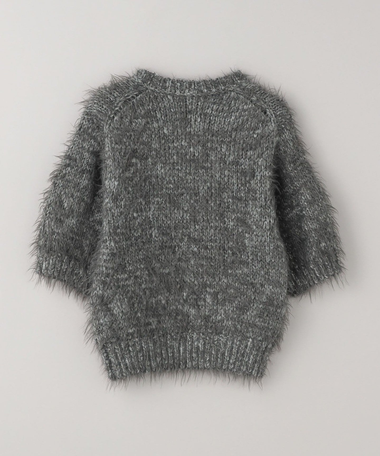 A short-sleeved knit made with long-haired feather yarn.