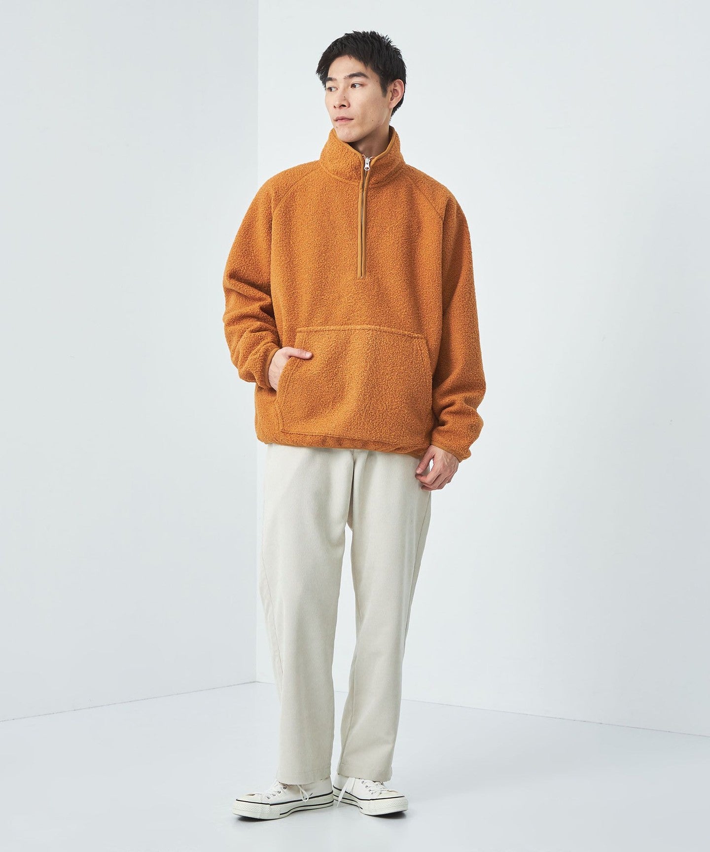 It features a stand collar, deep half-zip and a front kangaroo pocket.