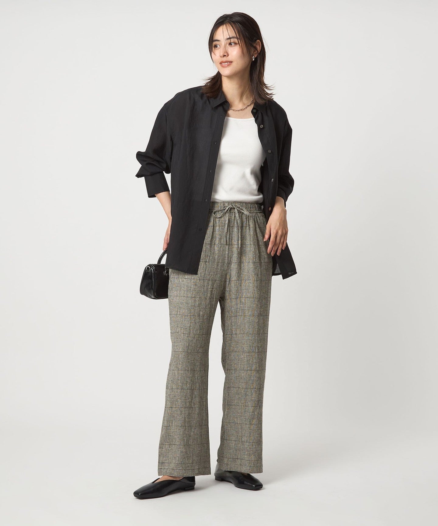 [size SHORT/T ALL Available] BREEZE LINEN BreezeLinen wide PANTS check