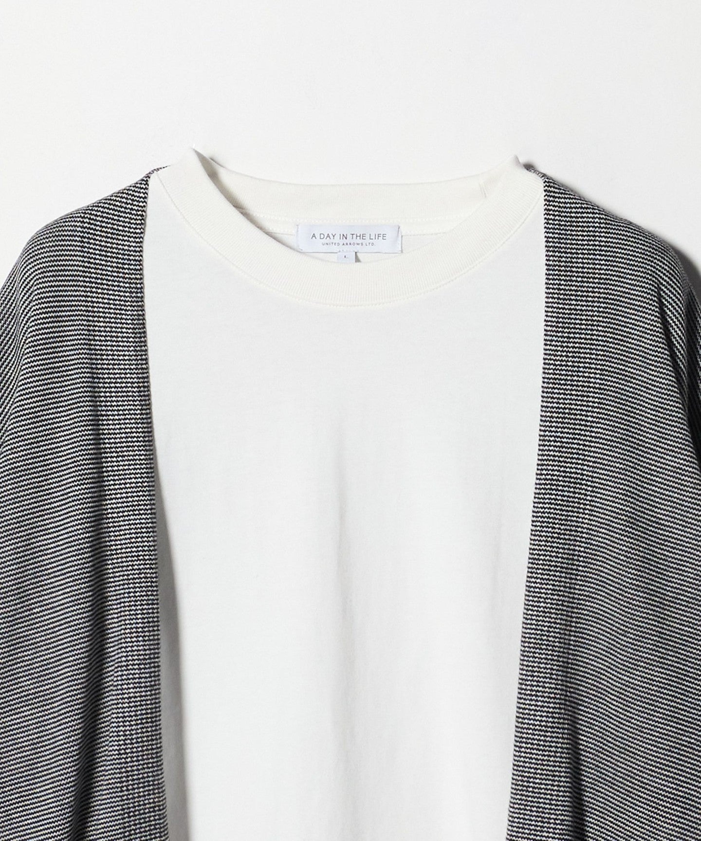 A set of a clean-cut no-button cardigan and a simple T-shirt suitable as an inner layer.