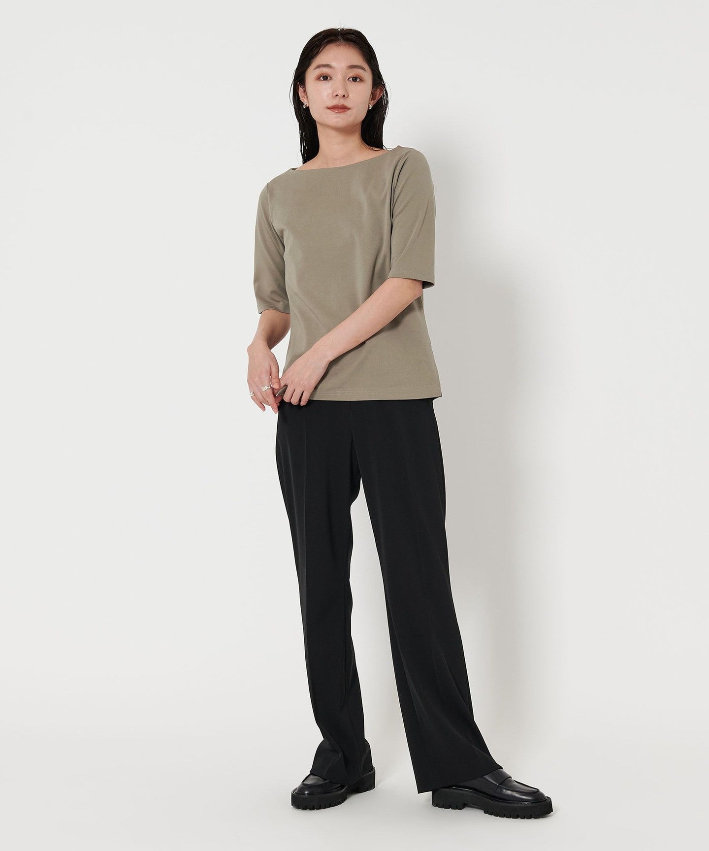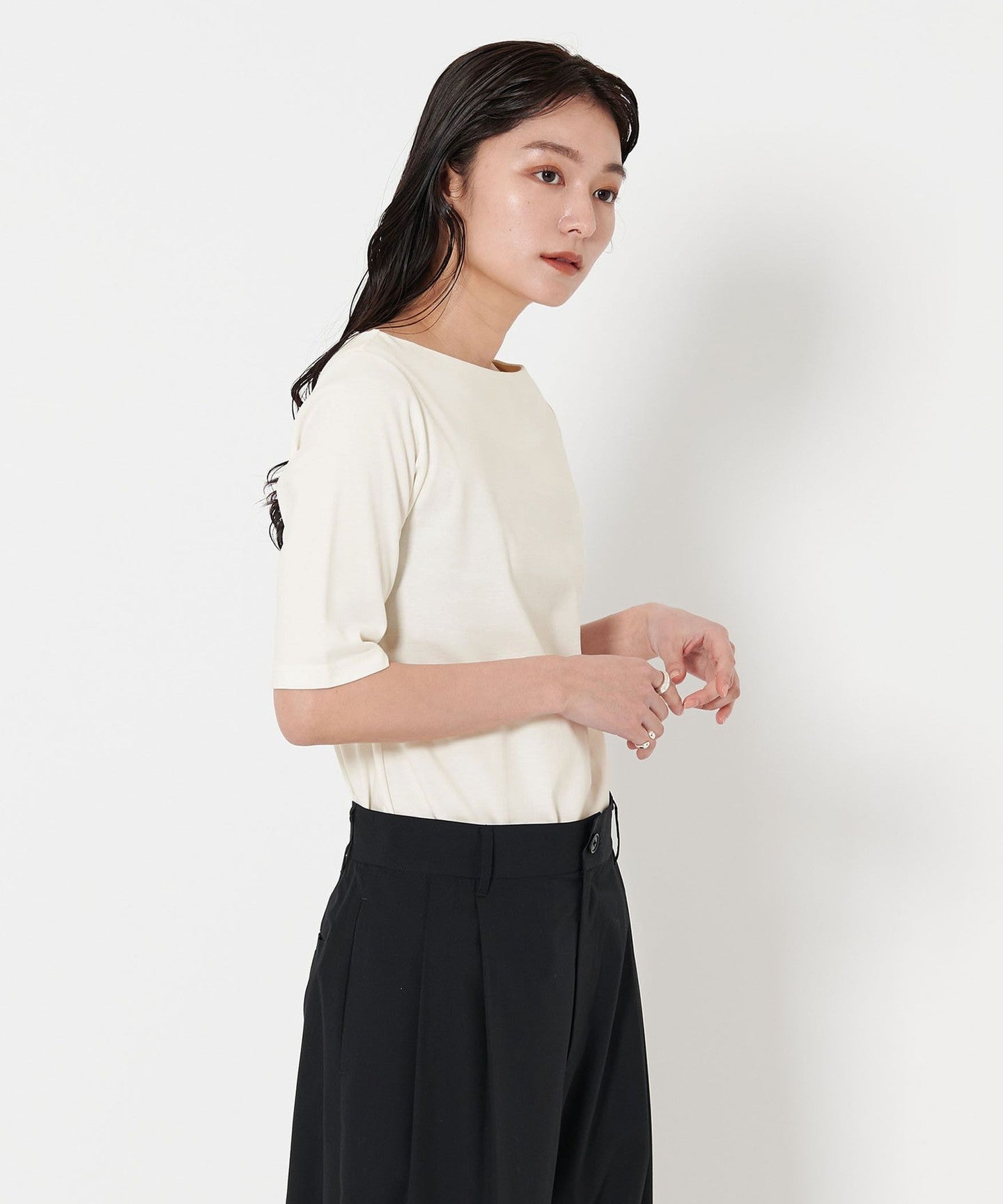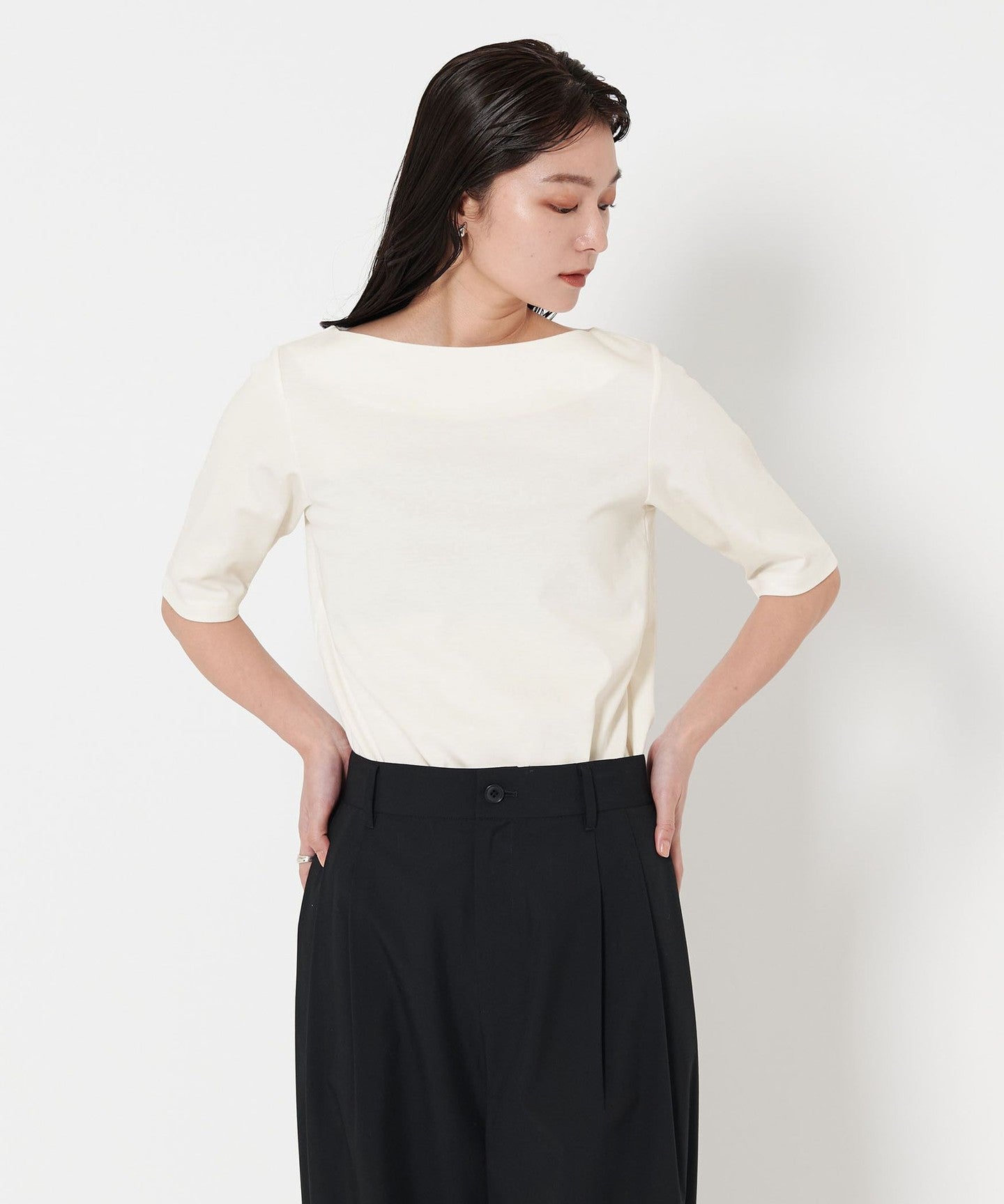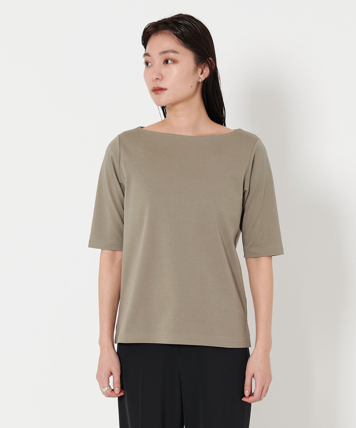 A boat neck that makes your face look neat and tidy in 5 minutes SLEEVE It gives an elegant impression TOP vinegar.