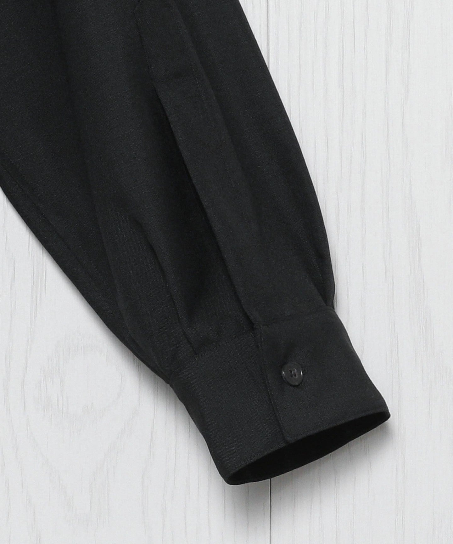 This shirt jacket features a wool poplin outer fabric with a mohair blend. Based on a sports jacket, it has a short length for a minimalist look. The high-quality fabric, which makes the most of the tension and luster unique to mohair, creates a casual style with a touch of class. With a dry touch and light comfort, it is a versatile piece that can be worn from early spring to the height of summer.