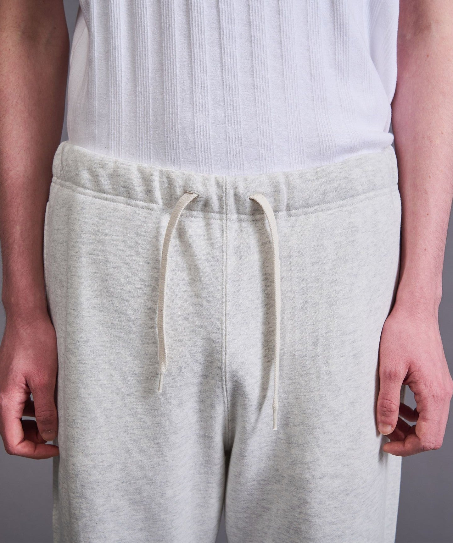 These sweatpants are made from a thick, fleshy fleece (lightly brushed on the back) and have a semi-flared silhouette that widens slightly towards the hem.