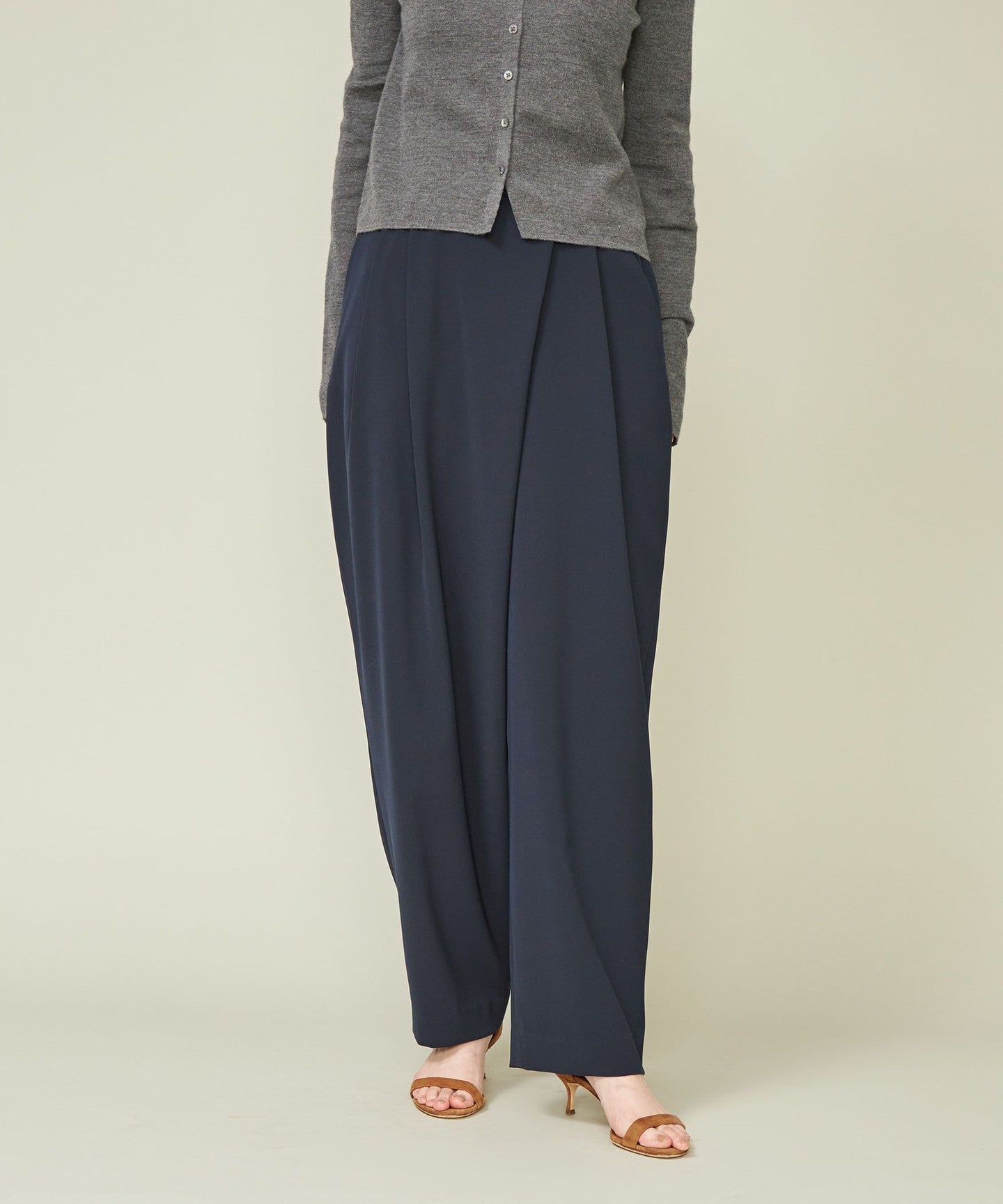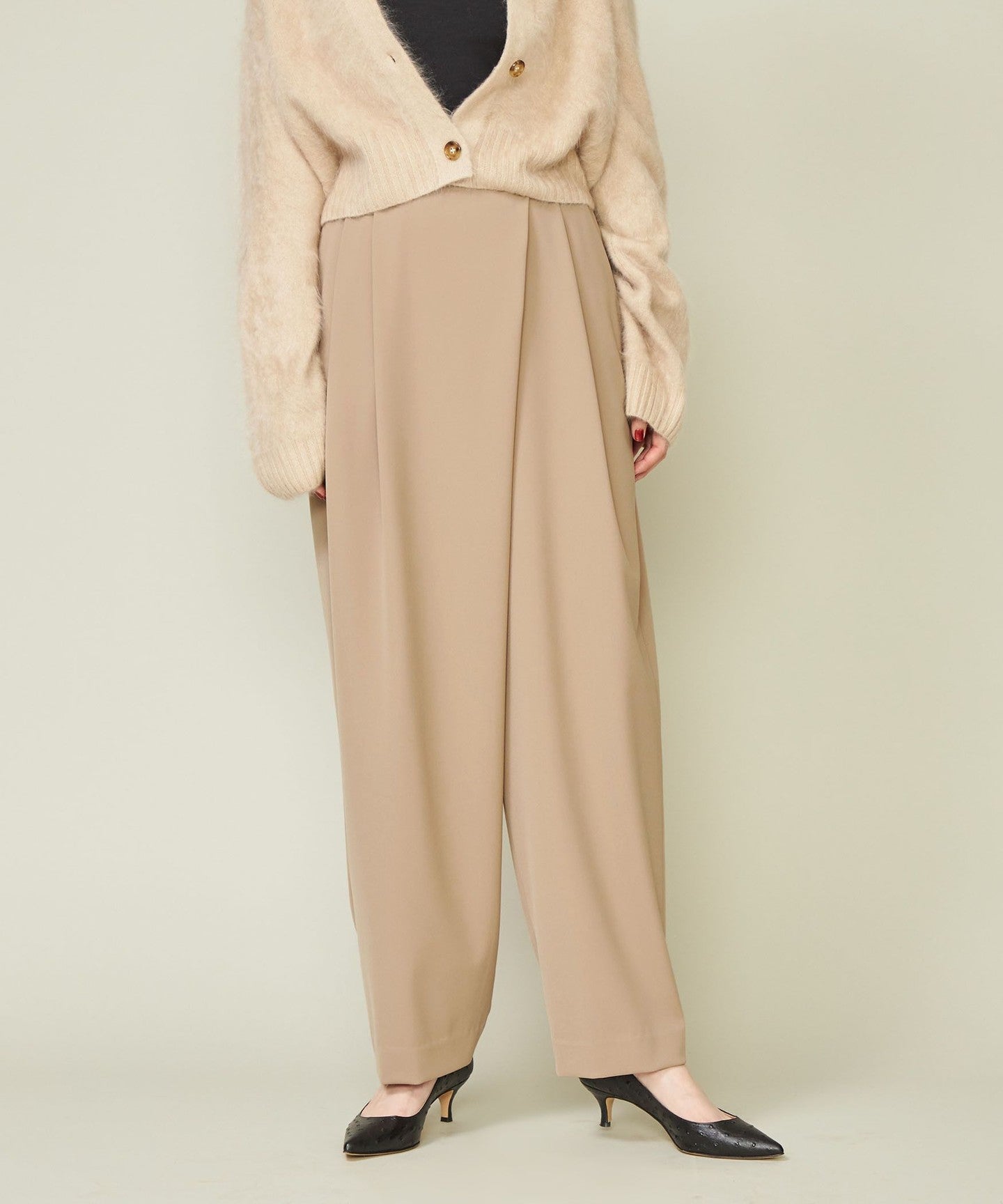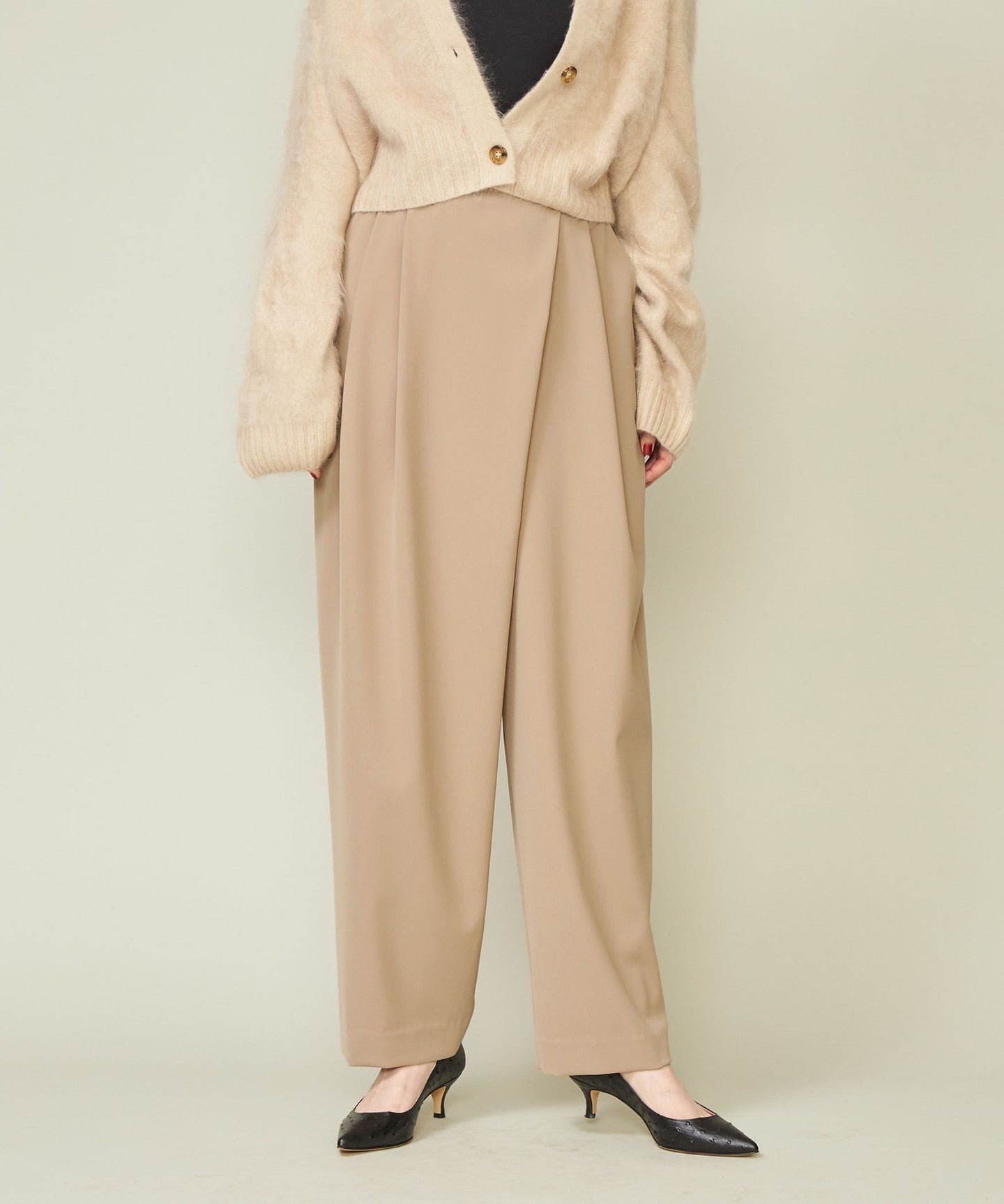 These pleated pants have an asymmetrical design that looks great on its own, giving them a relaxed yet elegant look.