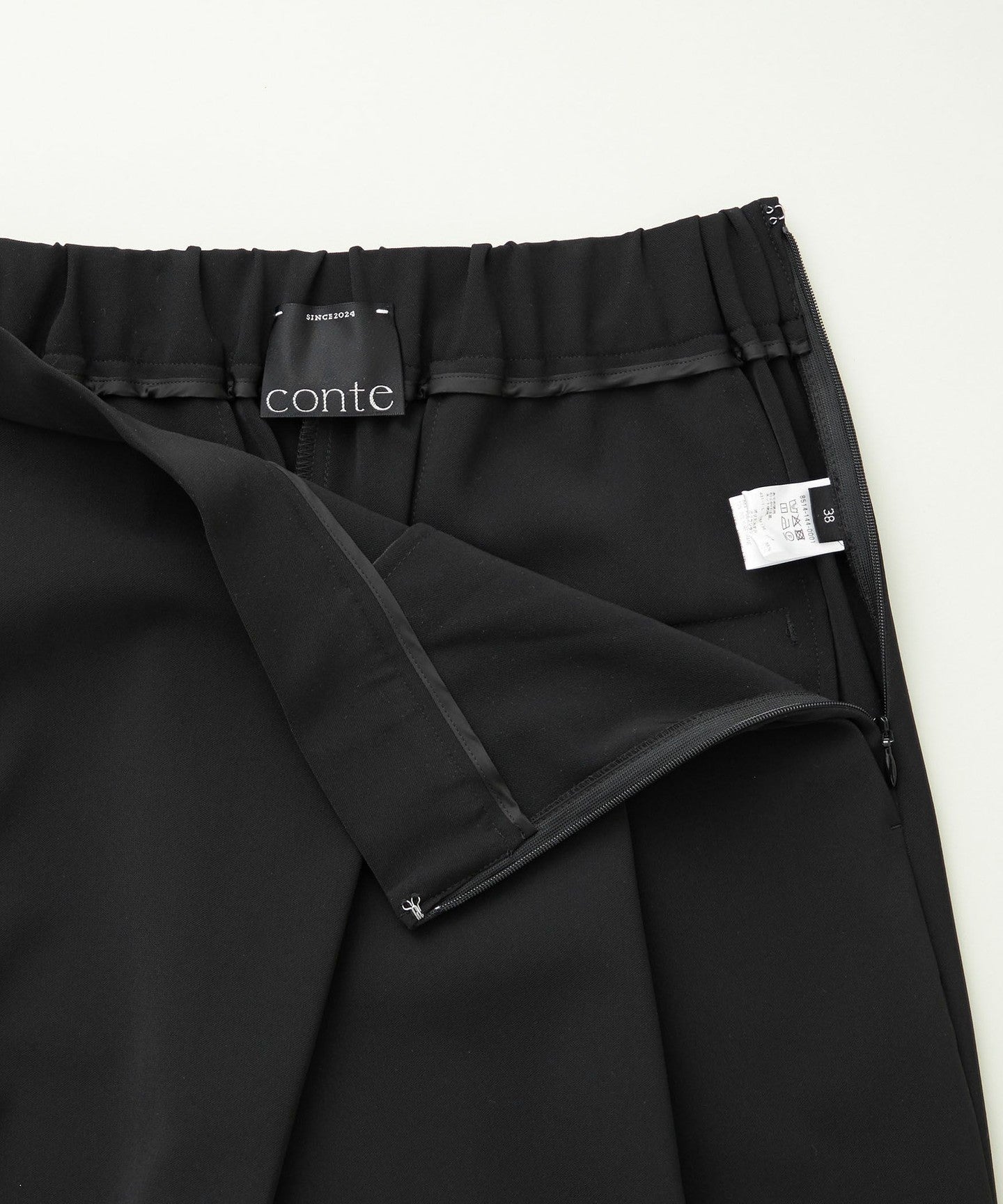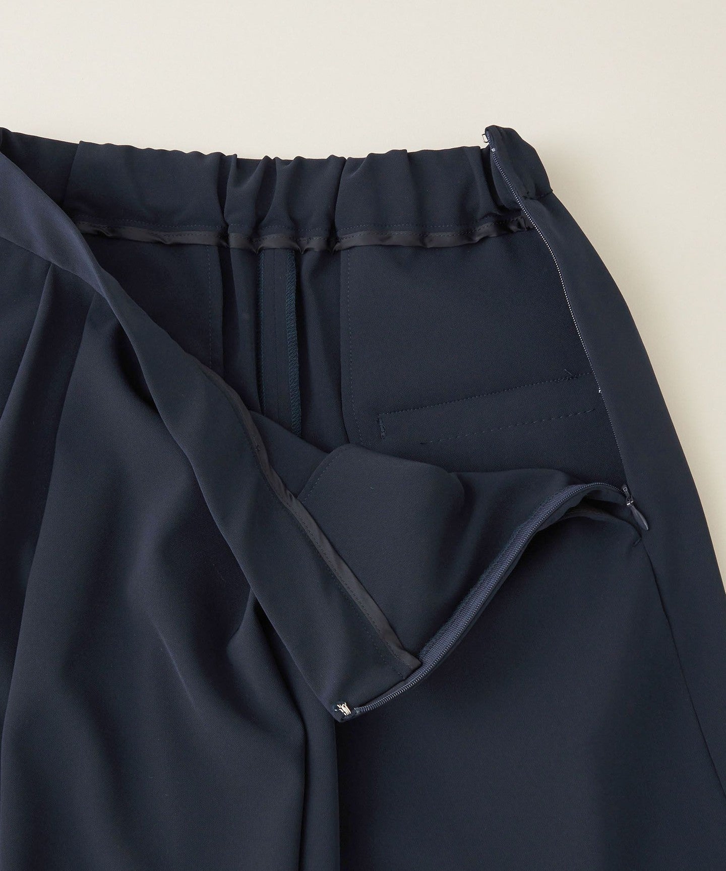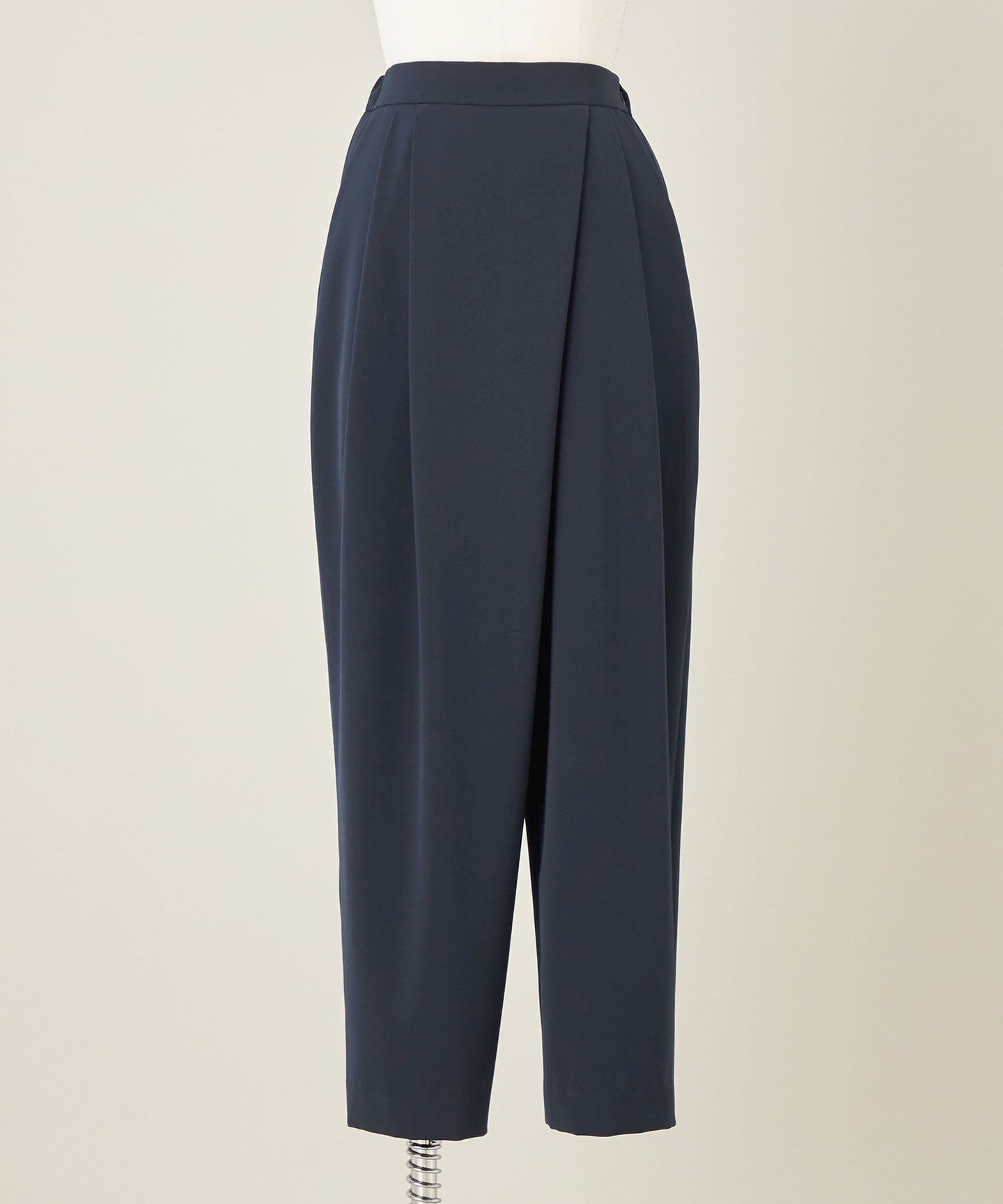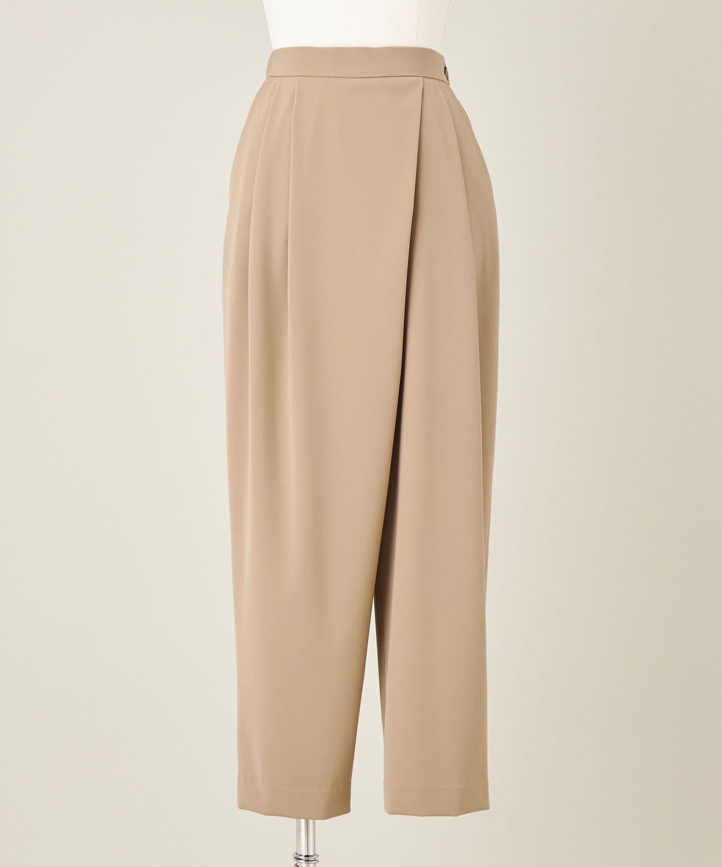 These pleated pants have an asymmetrical design that looks great on its own, giving them a relaxed yet elegant look.