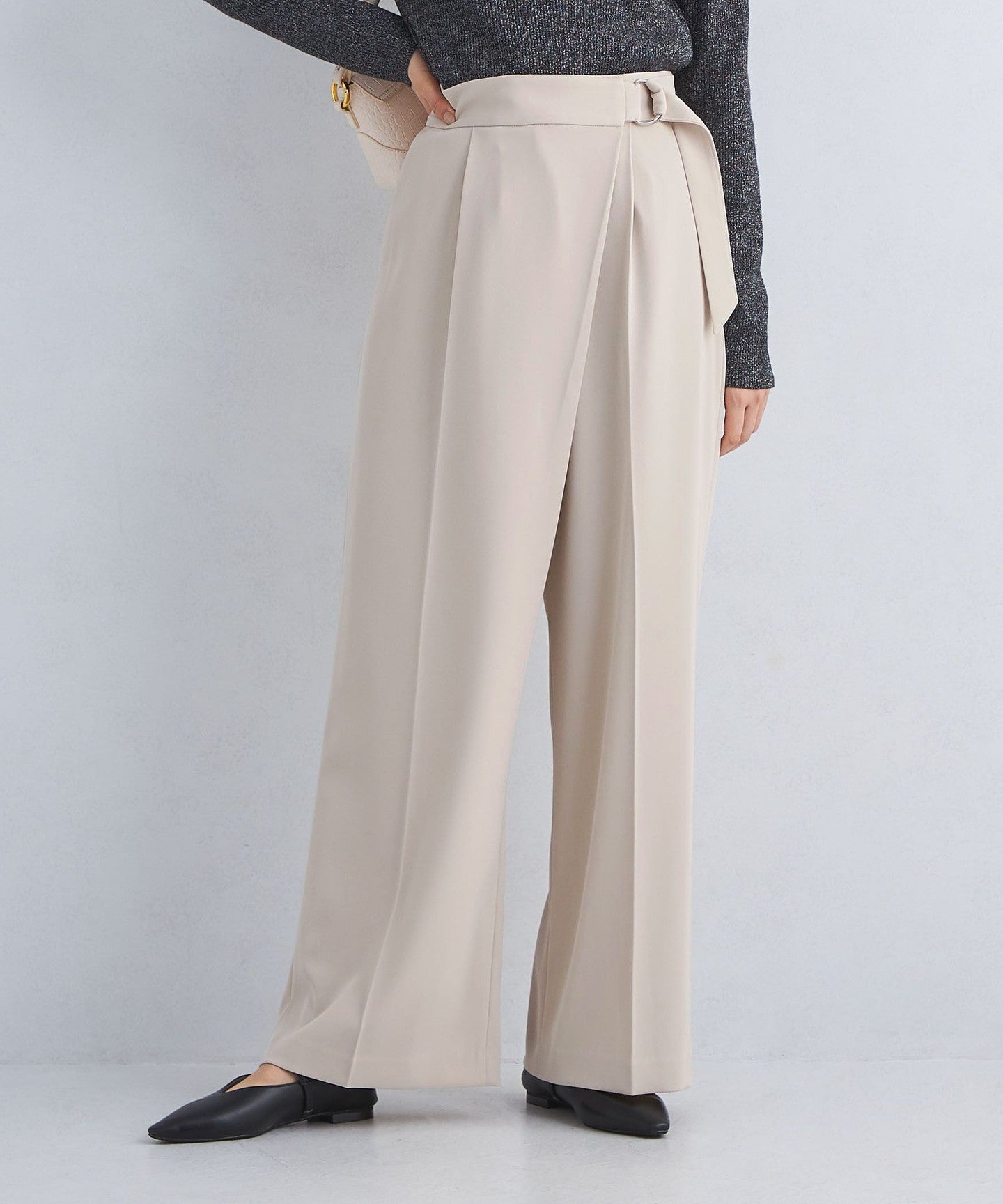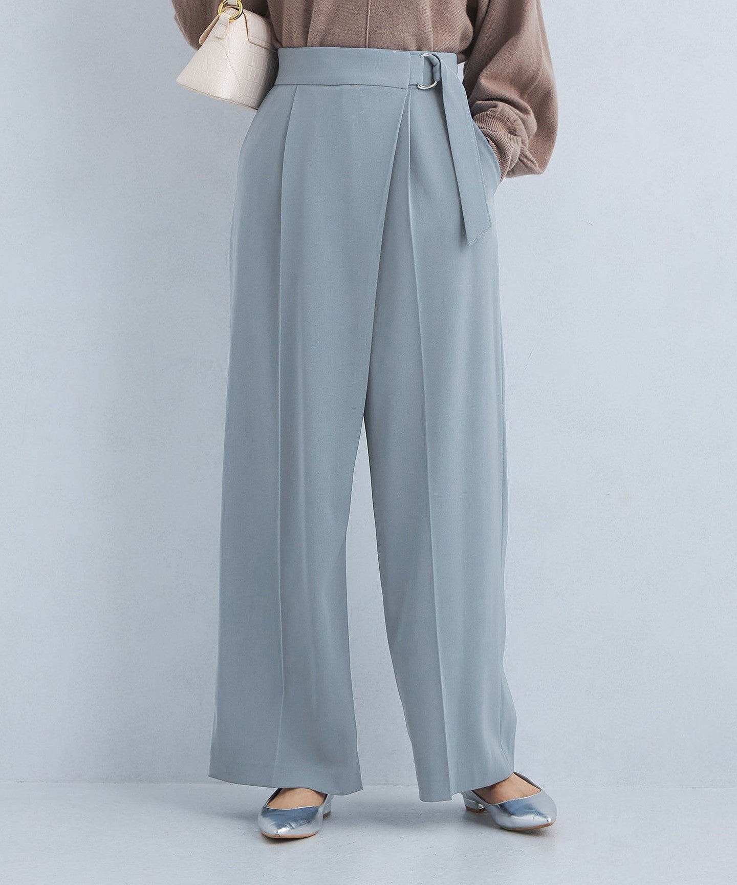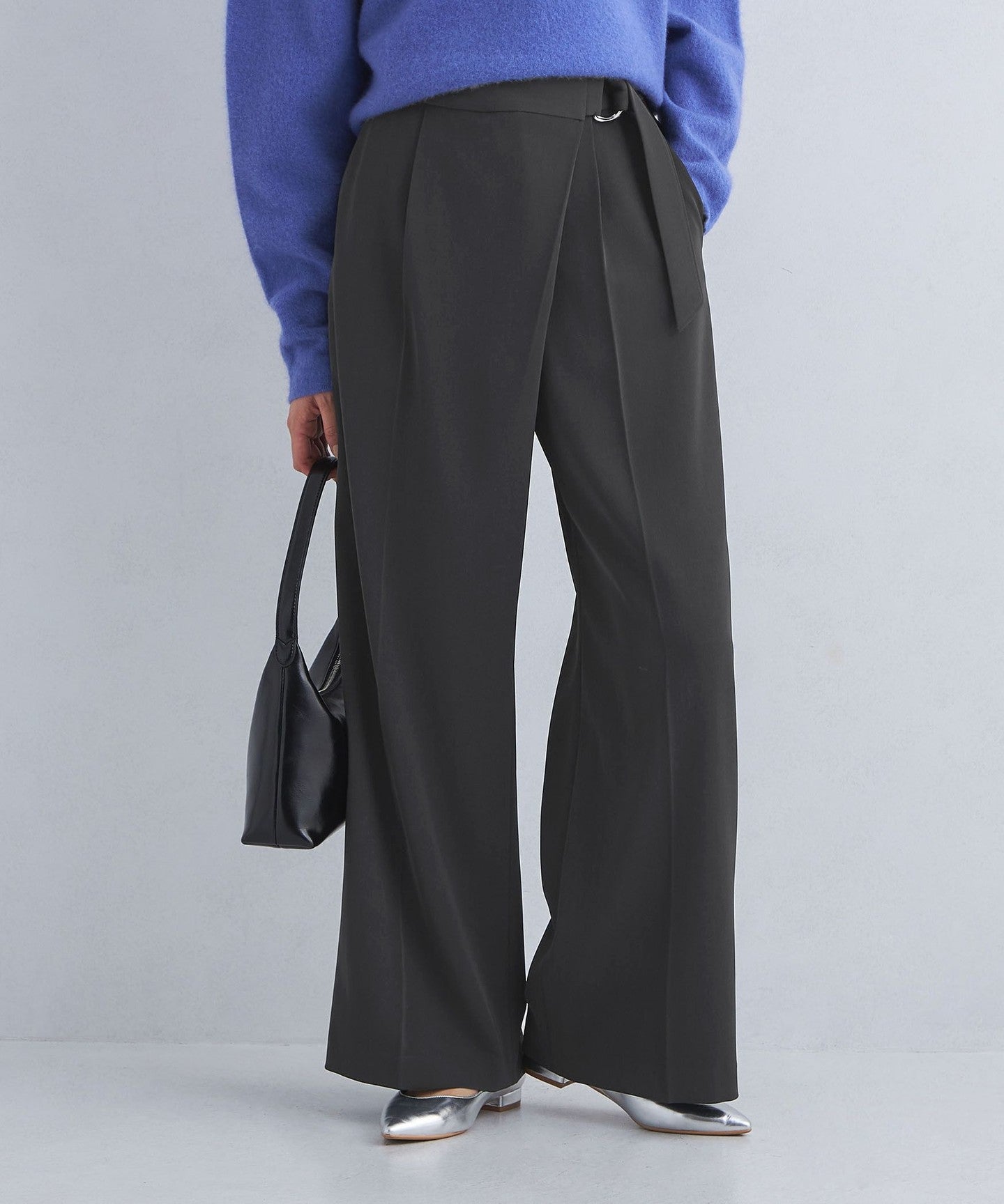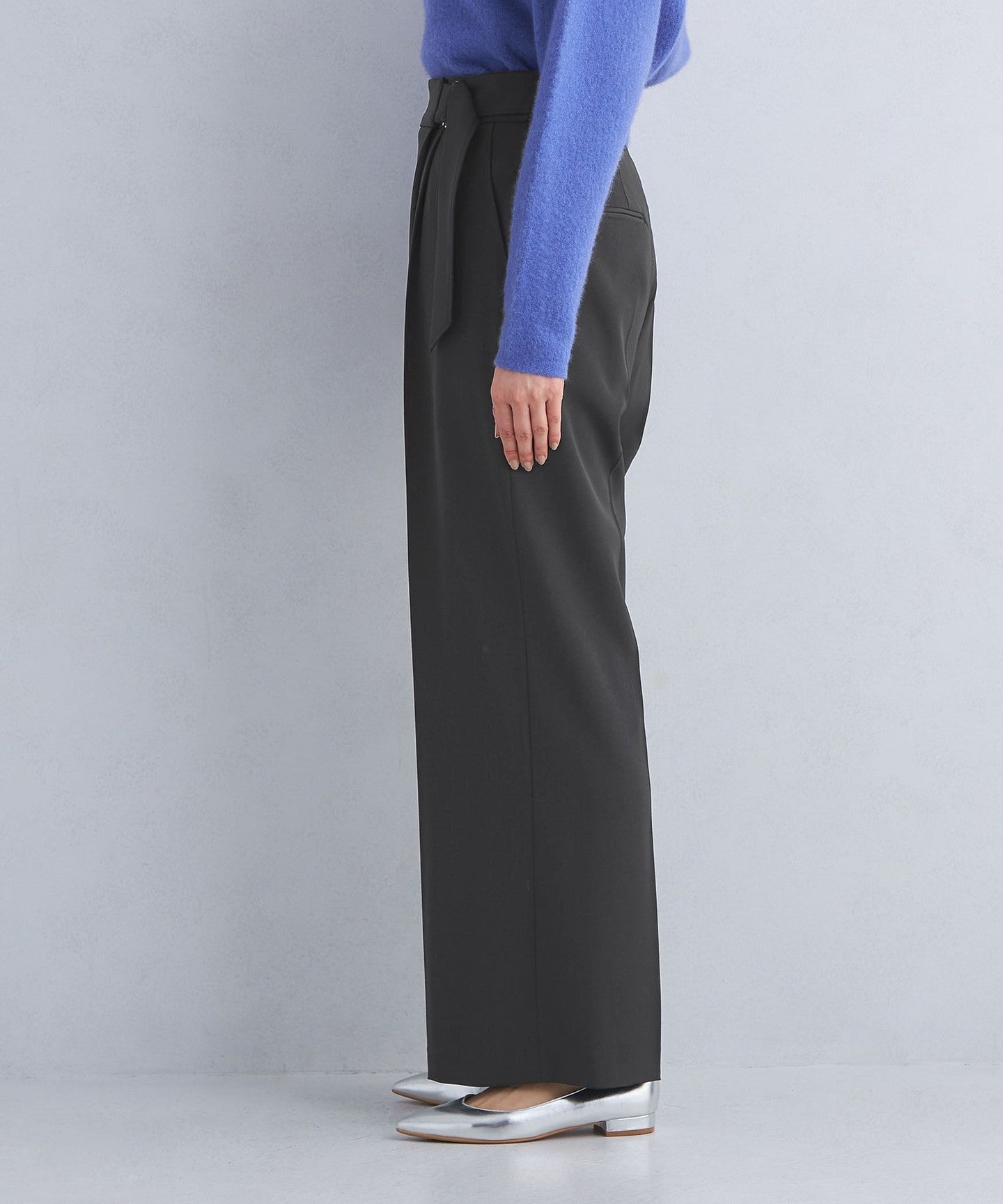The center press accentuates the vertical lines, allowing you to wear it neatly despite the wide silhouette.