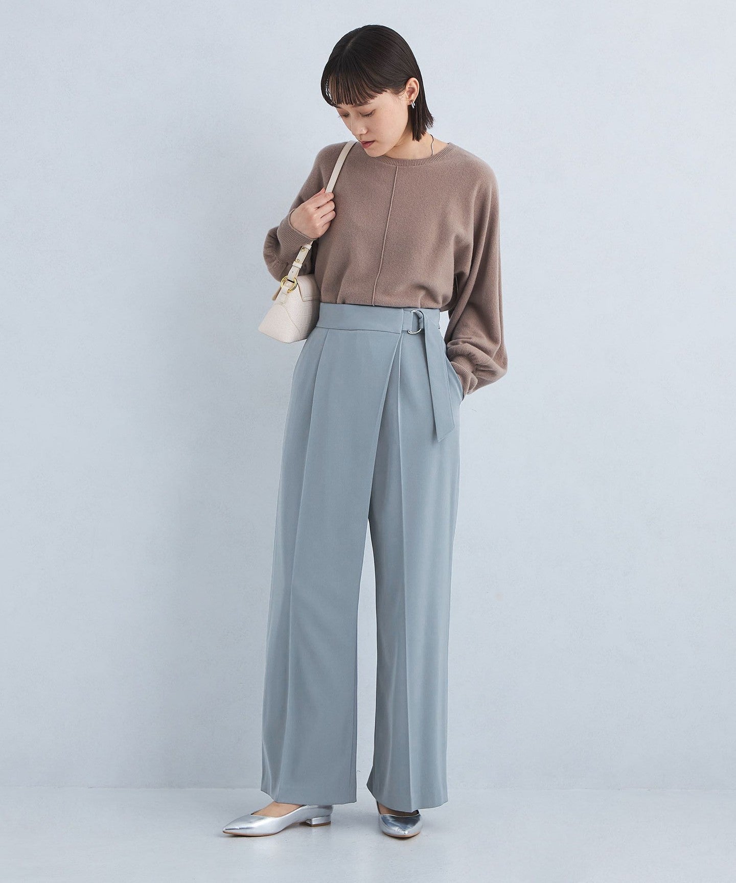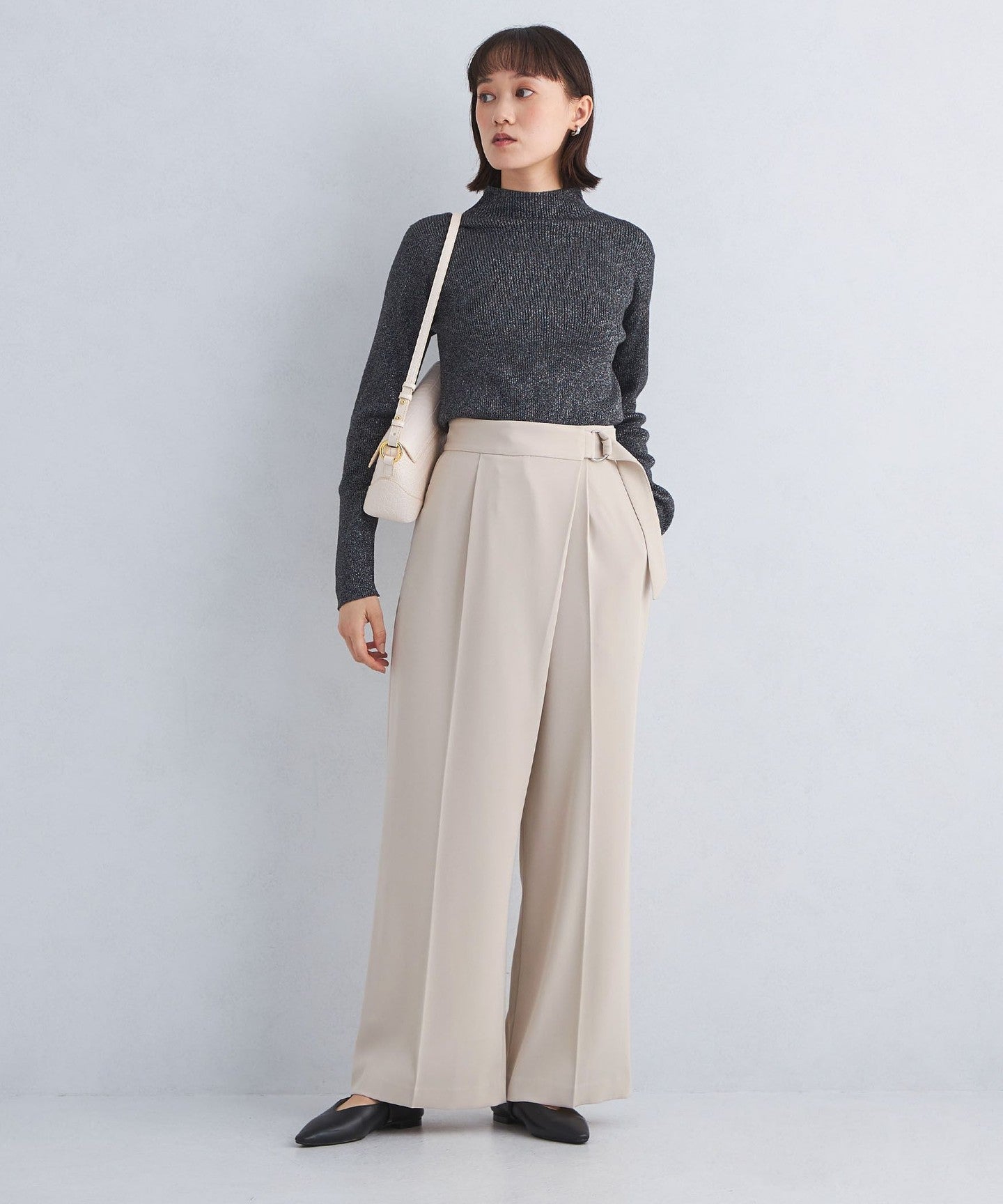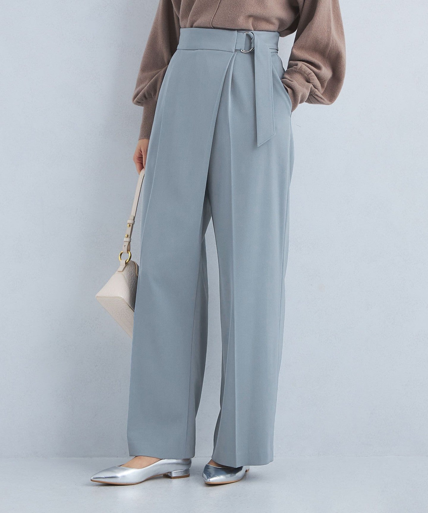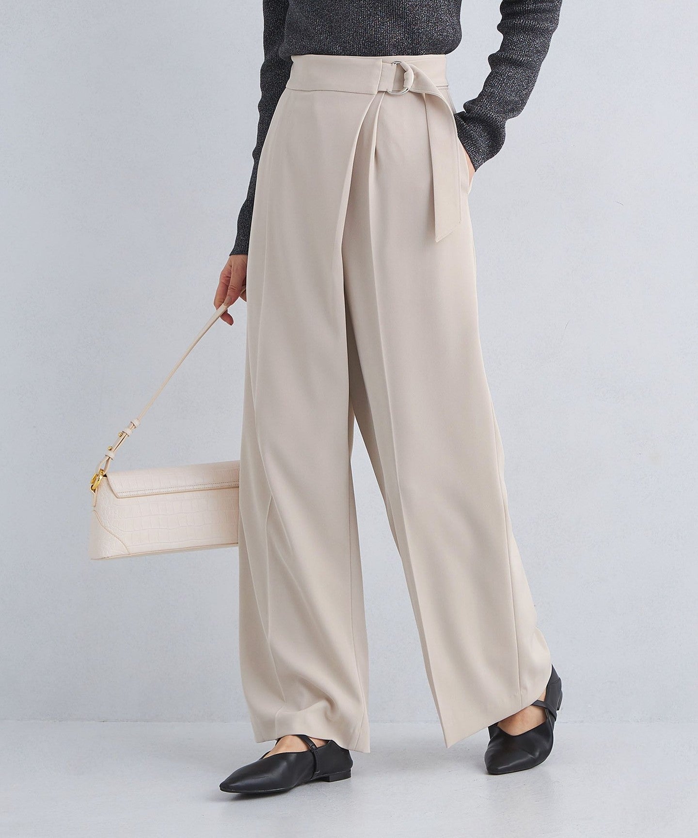 The center press accentuates the vertical lines, allowing you to wear it neatly despite the wide silhouette.