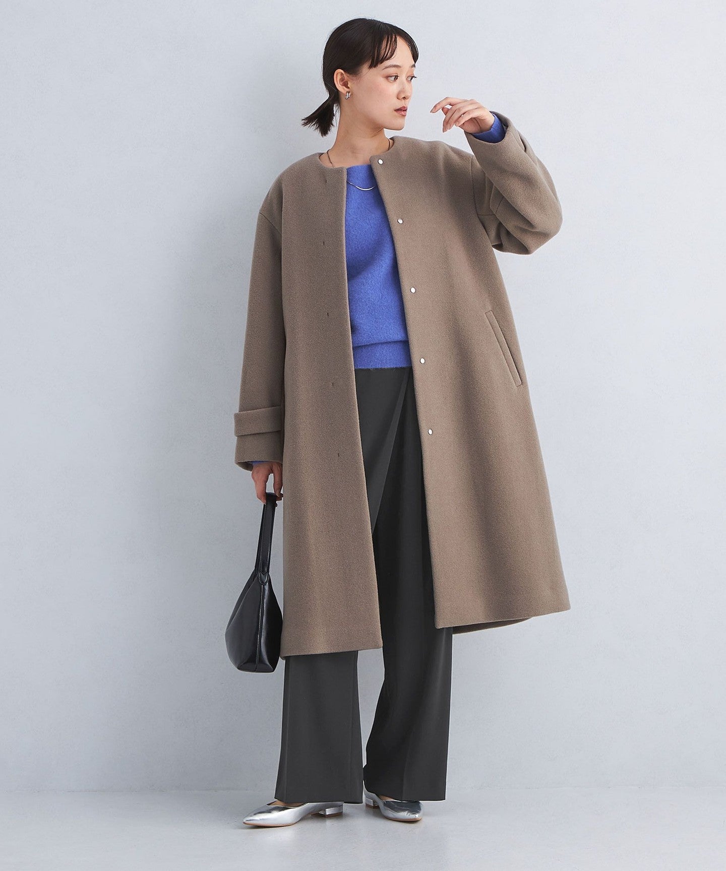 It is made with a clean material that can be worn well with thick knits.