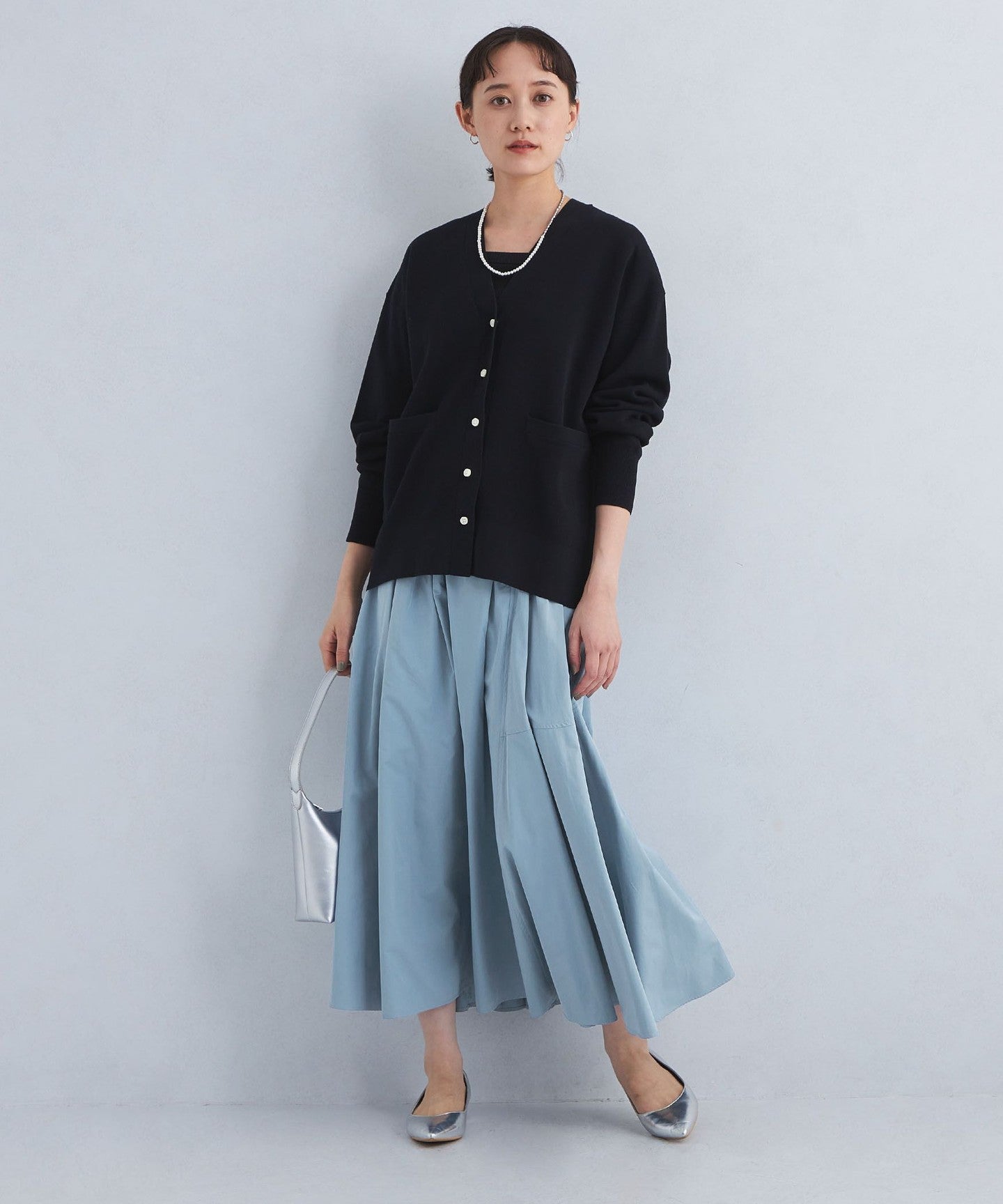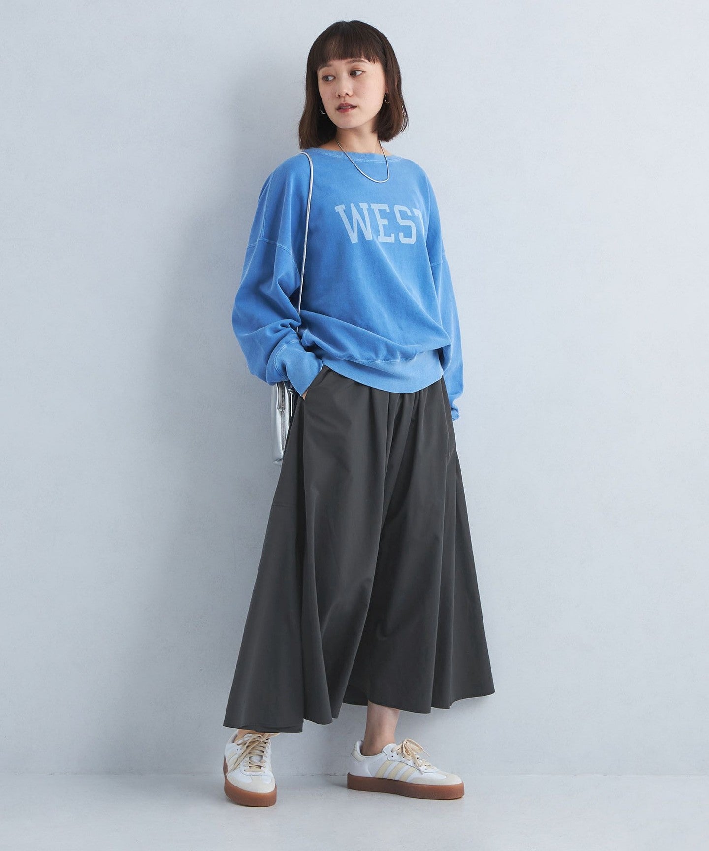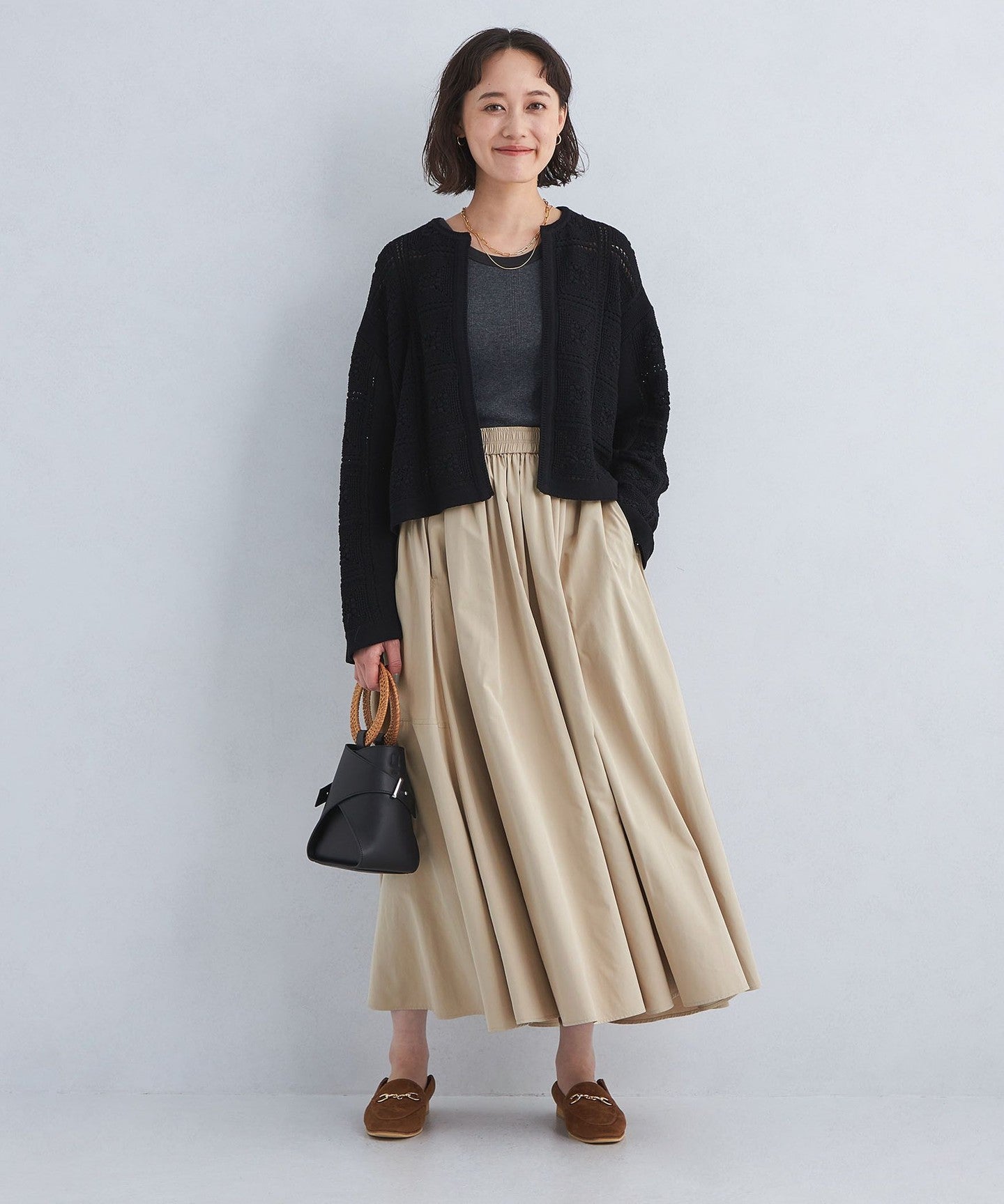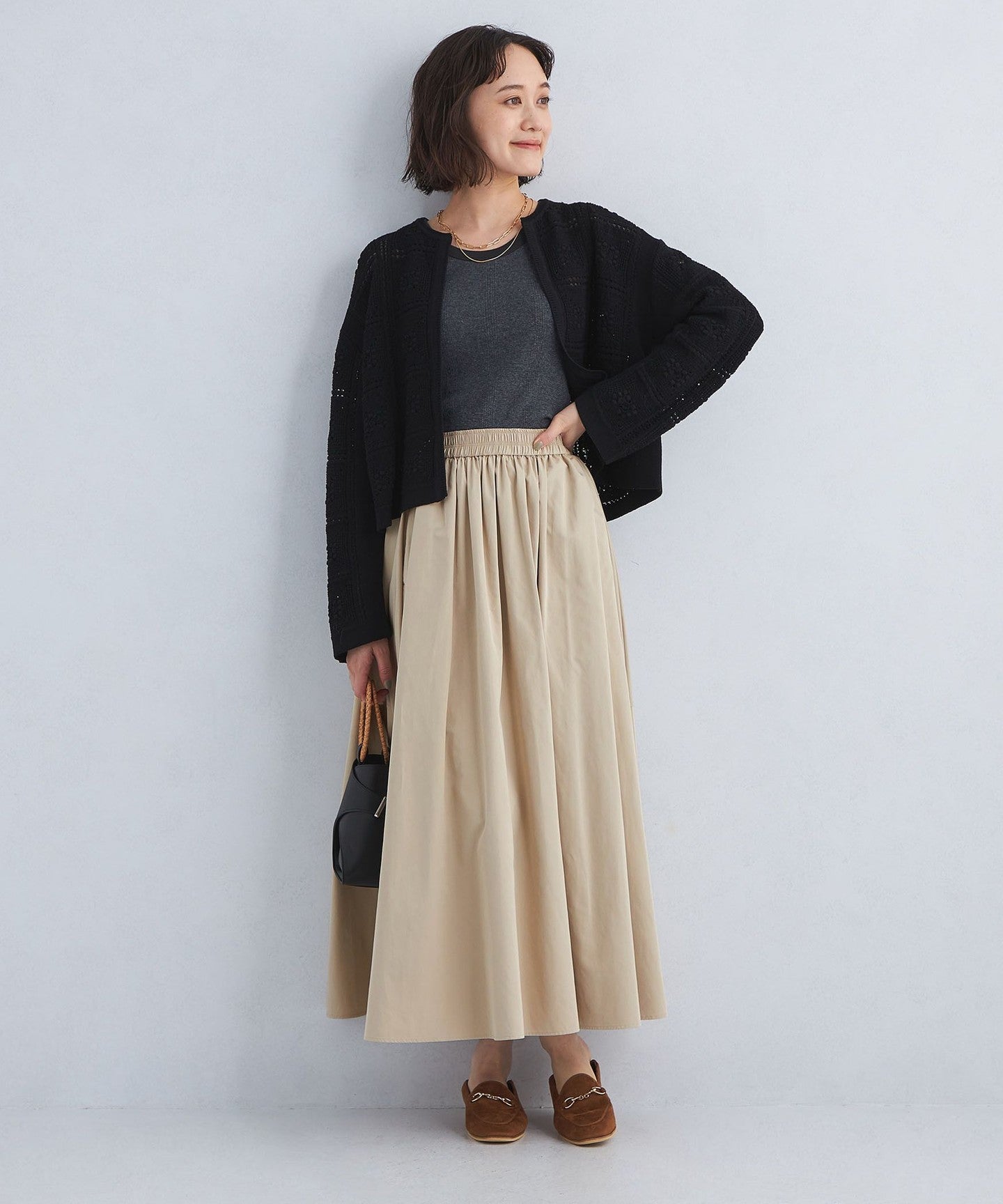 It goes well with a casual style paired with a striped top, as well as a neater look paired with a shirt or knit.