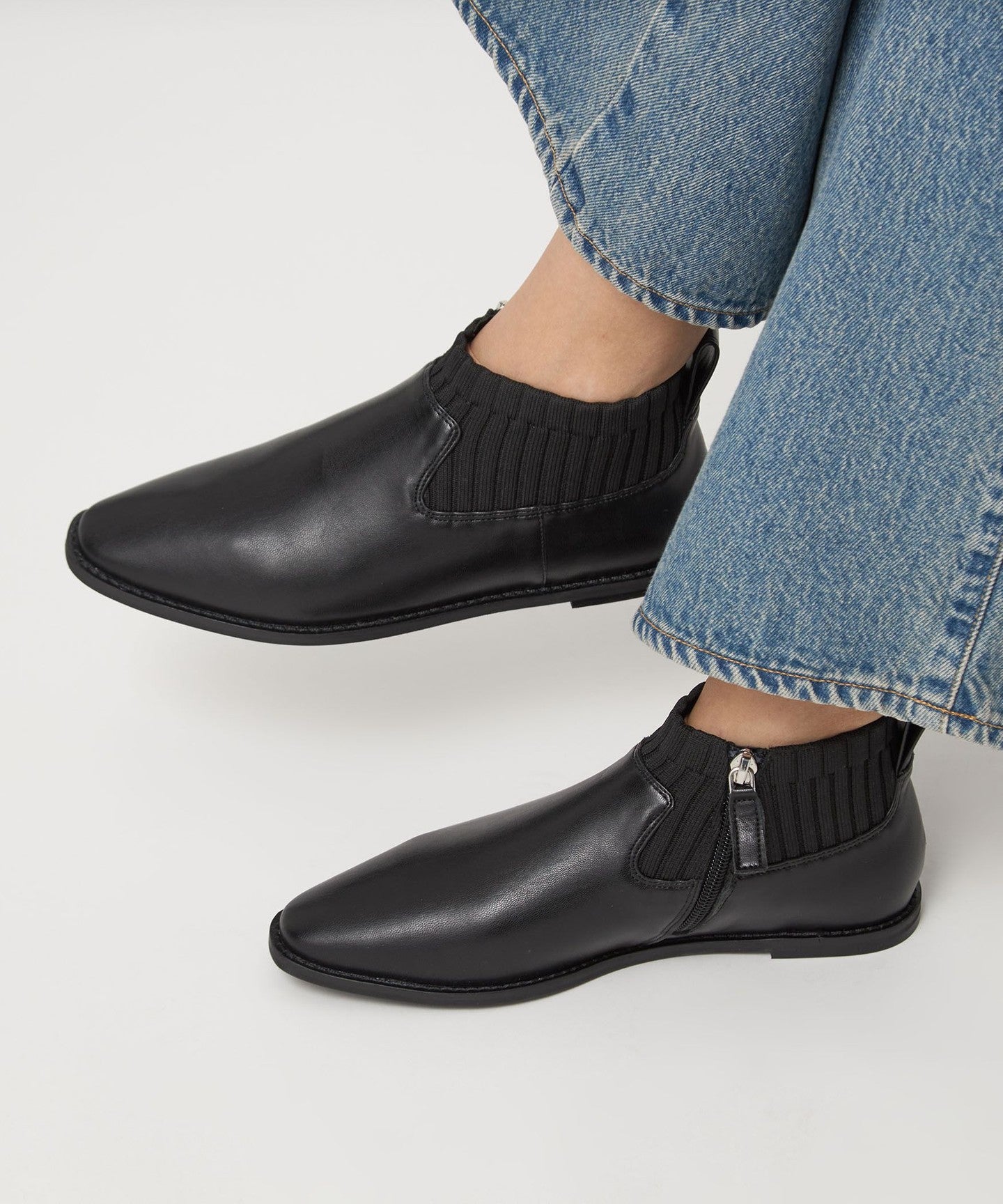 履き口のふっくらした質感や筒の細さ、バックのシルエットにもこだわったキレイめカジュアルなデザインが◎。