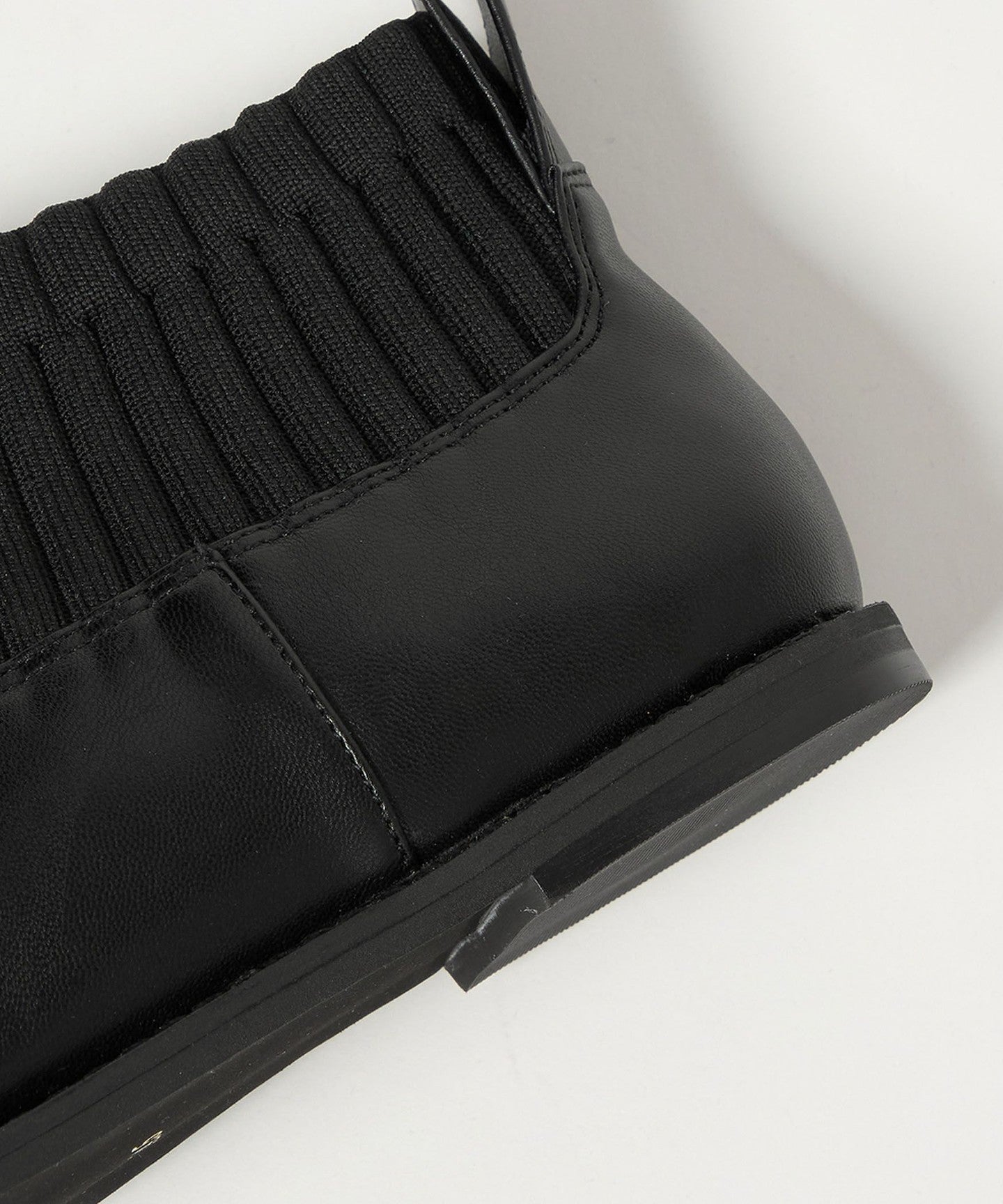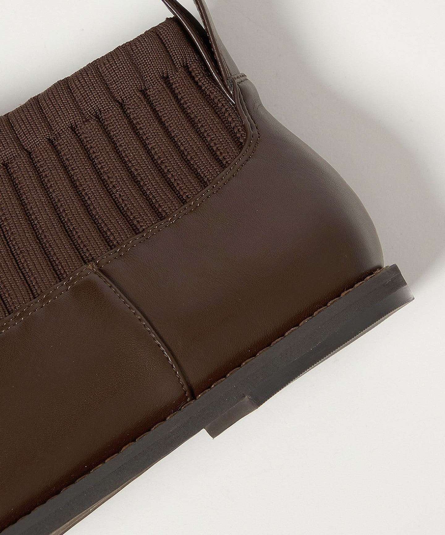 ソックス見えする筒のリブ素材は、オリジナルで編みたてし足首にフィットするシルエット。