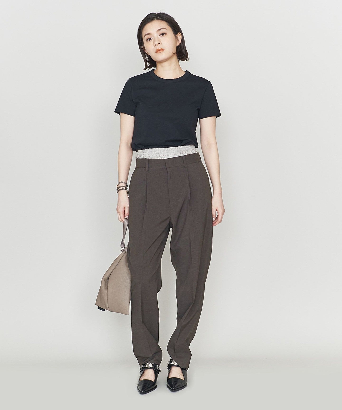 The tapered design is the highlight, as if you were wearing two bottoms. PANTS .