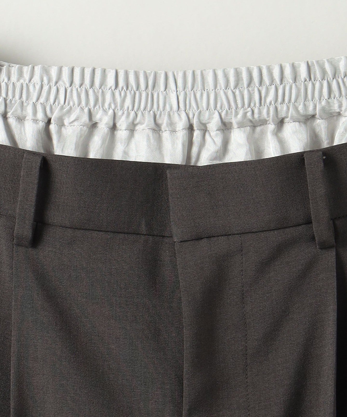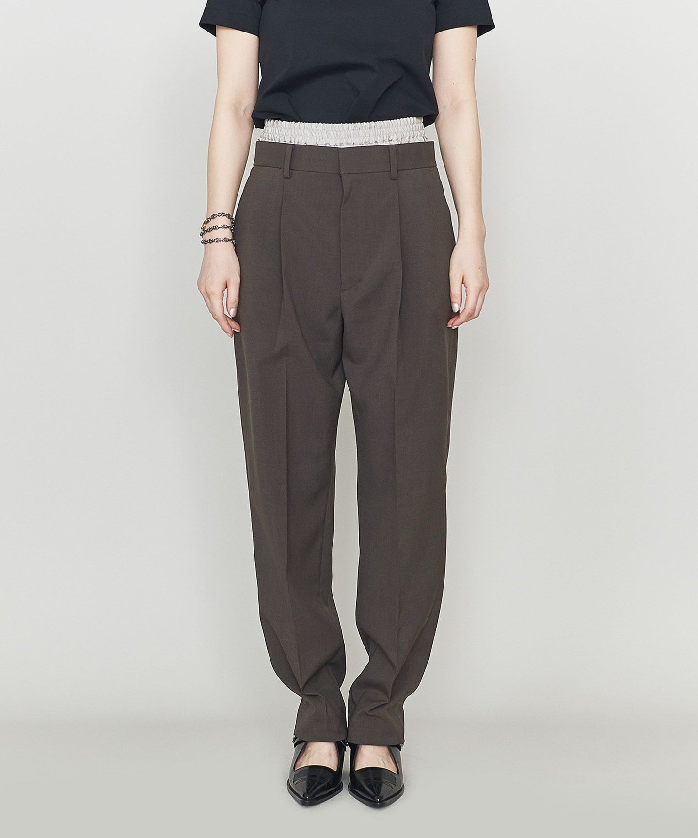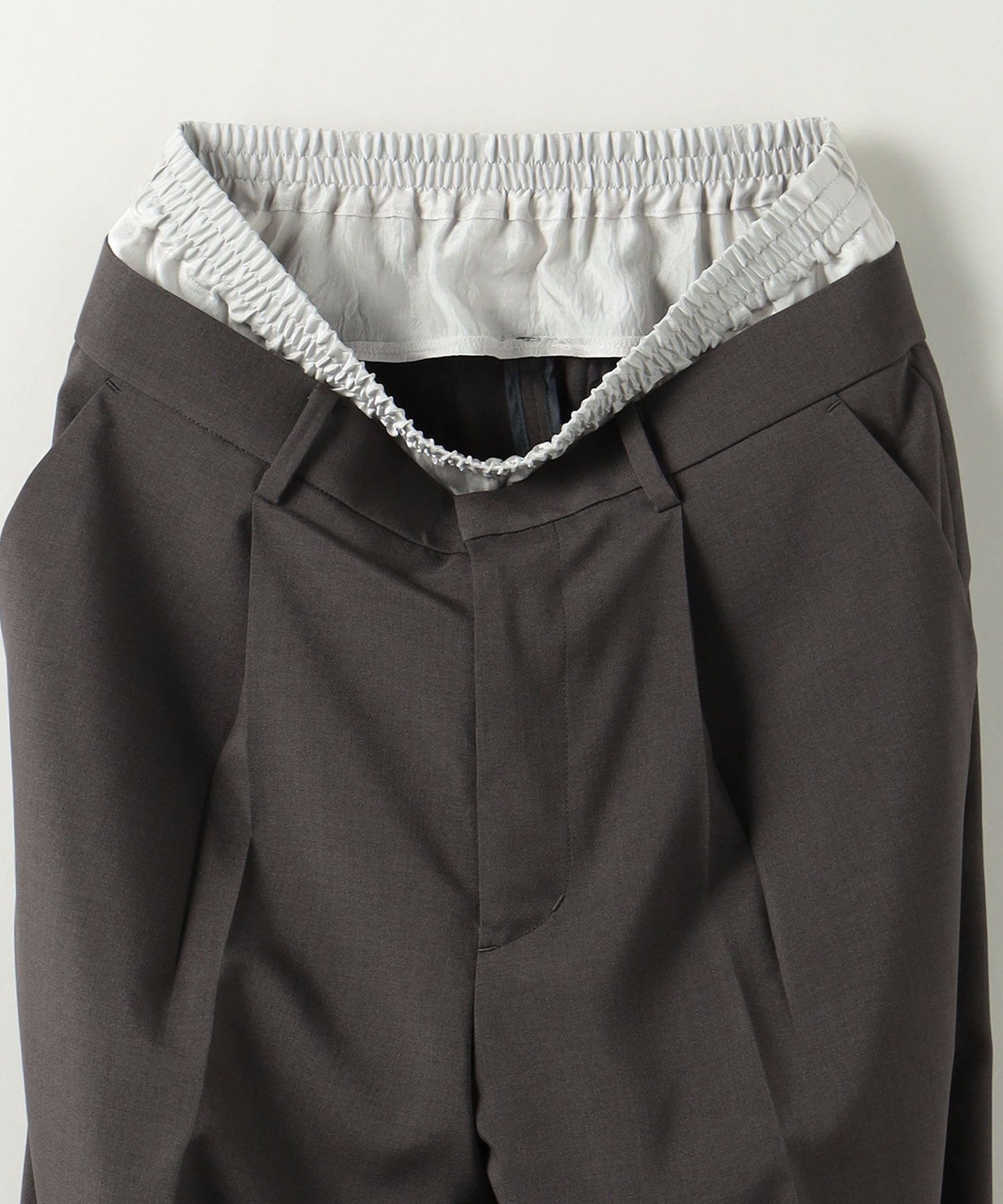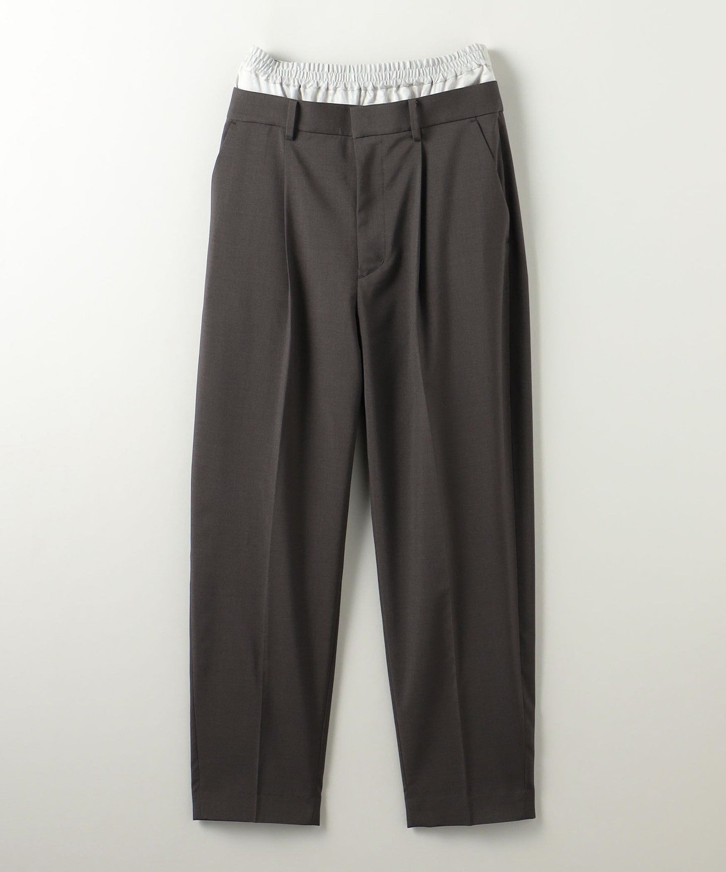 Tapered pants featuring a layered design with a combination of different materials at the waist PANTS .