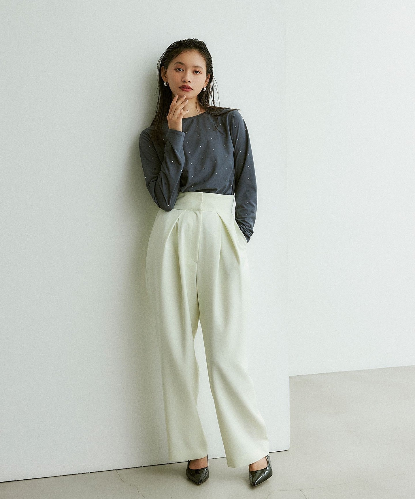 It goes well with a wide range of tops, from blouses to knitwear.