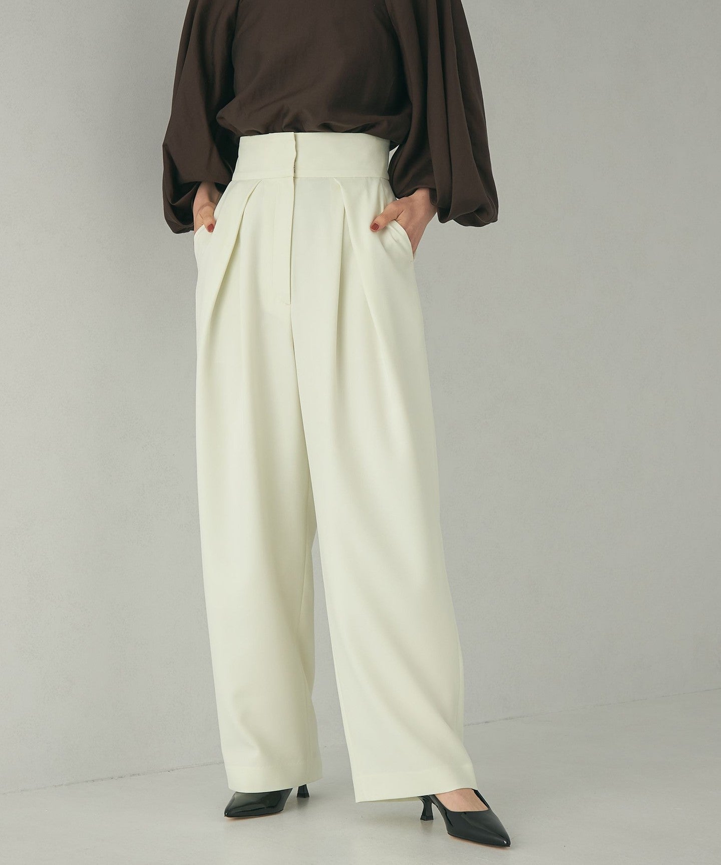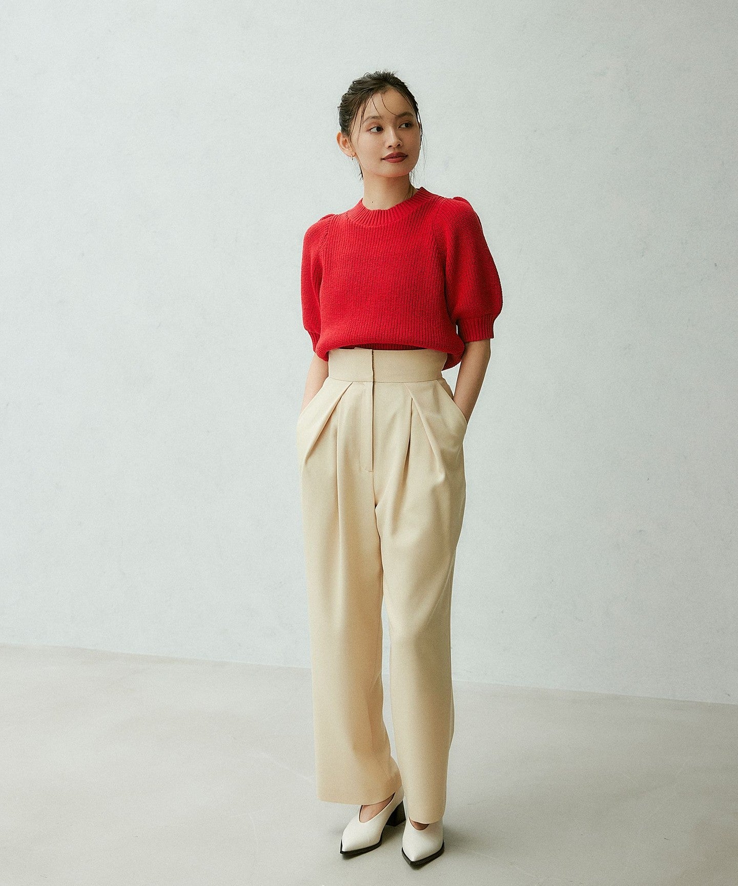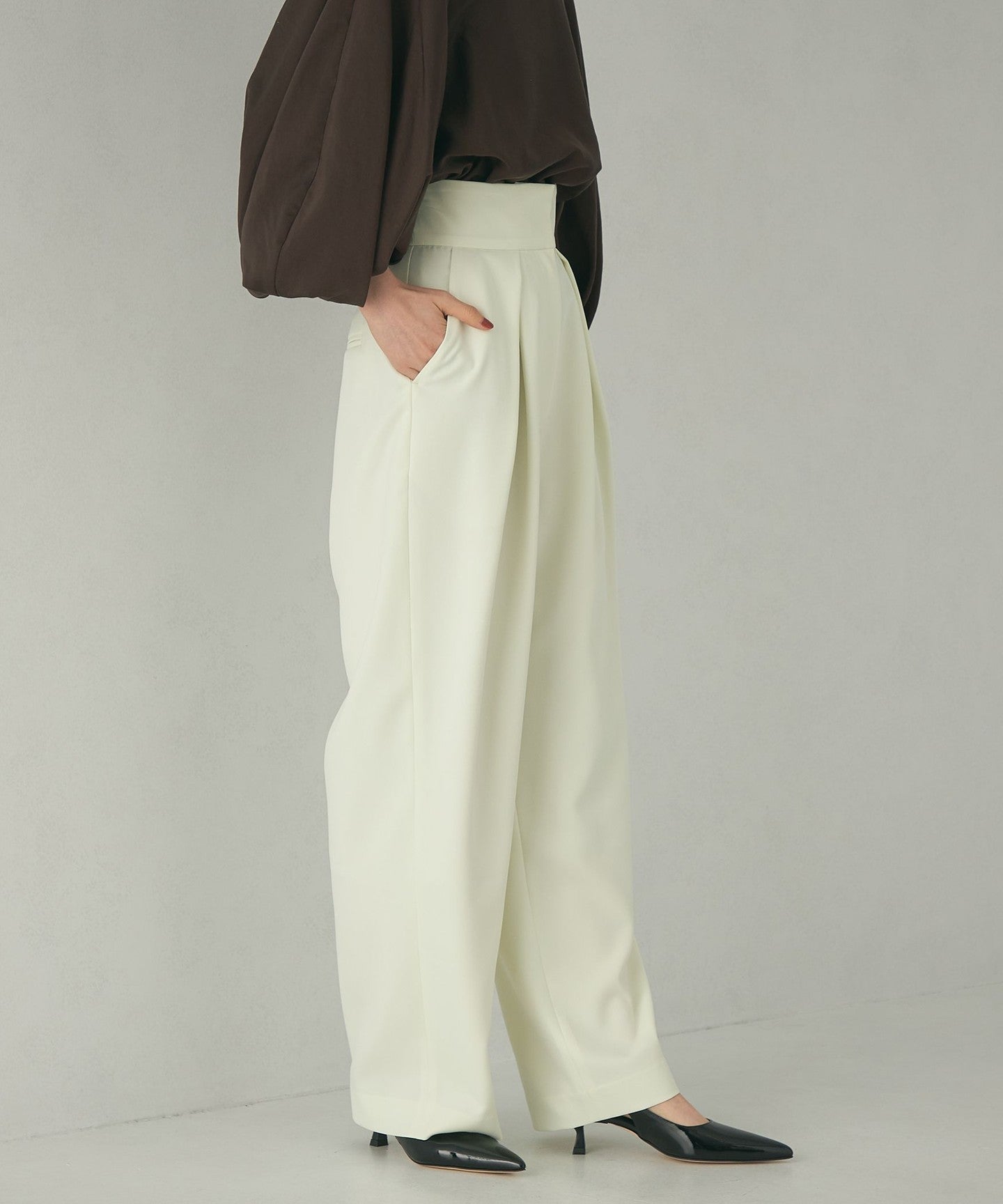 High-waisted colored tuck pants made of lightweight material