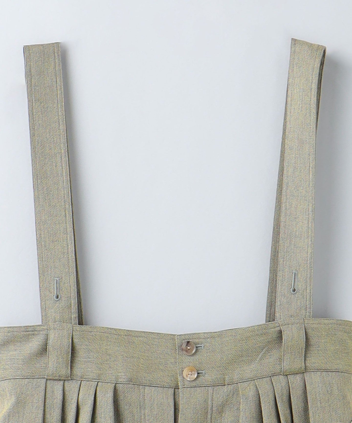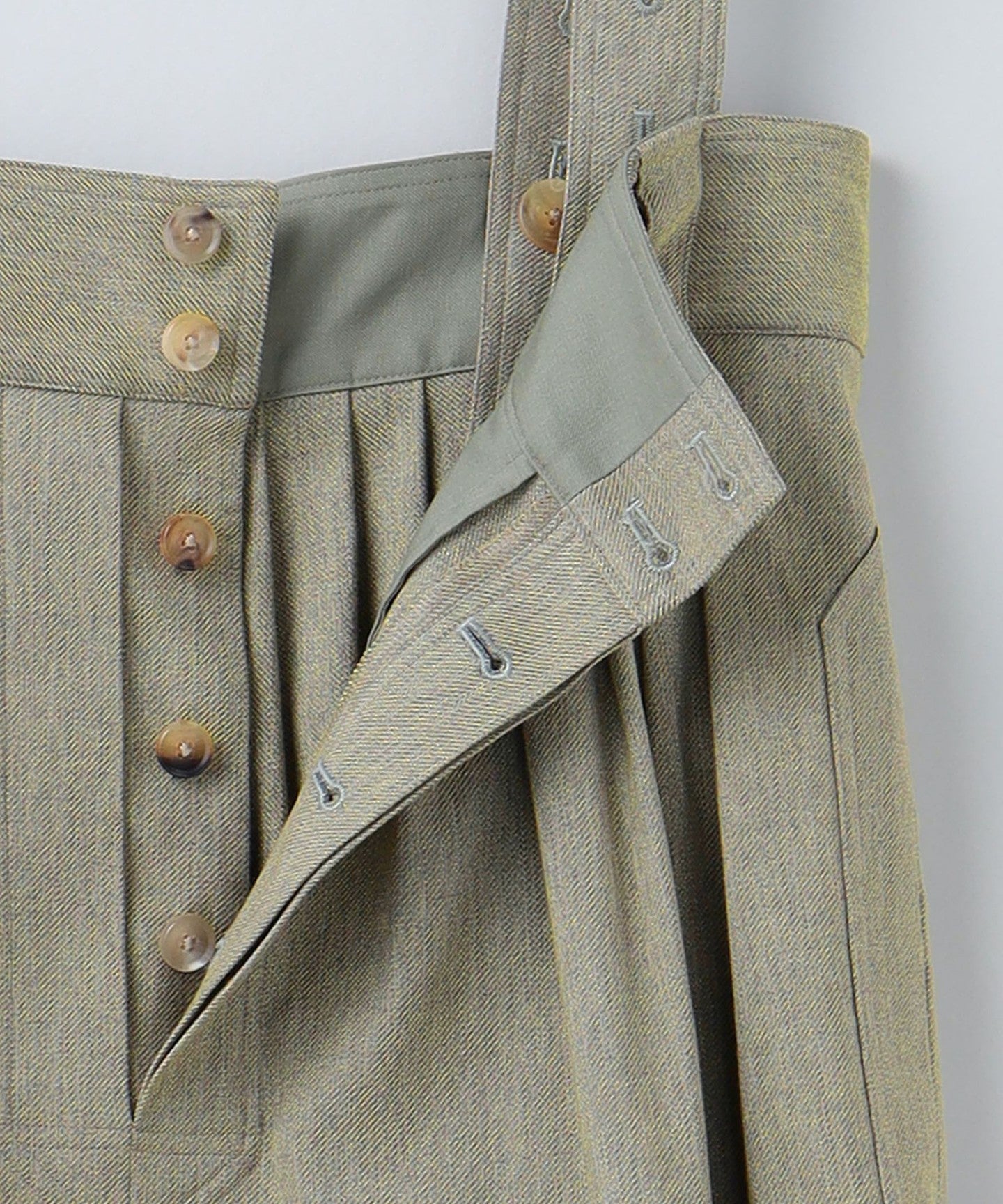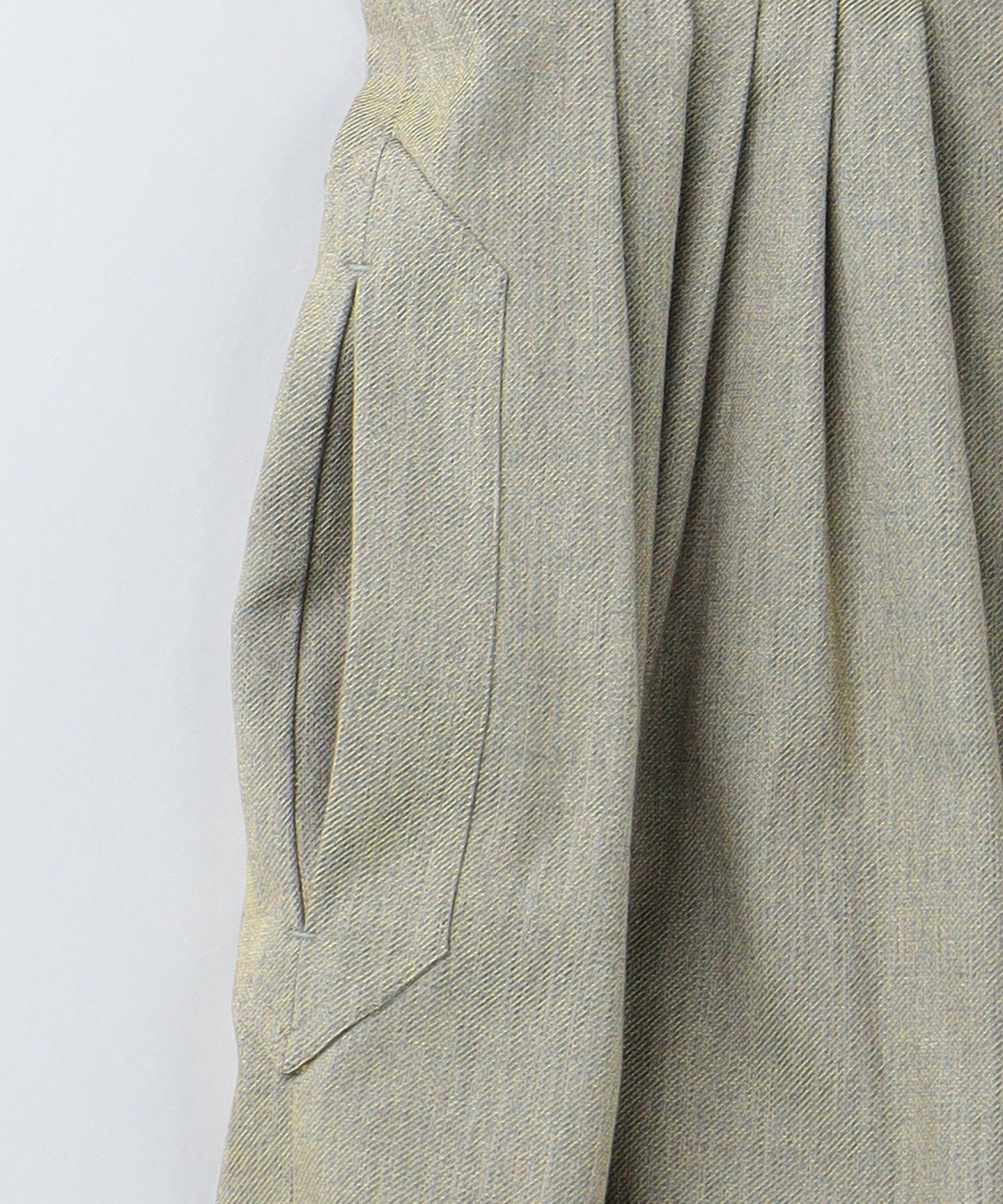 retro chic FABRIC The voluminous silhouette is created with plenty of fabric, and the waist position can be adjusted to make it high-waisted or dropped.