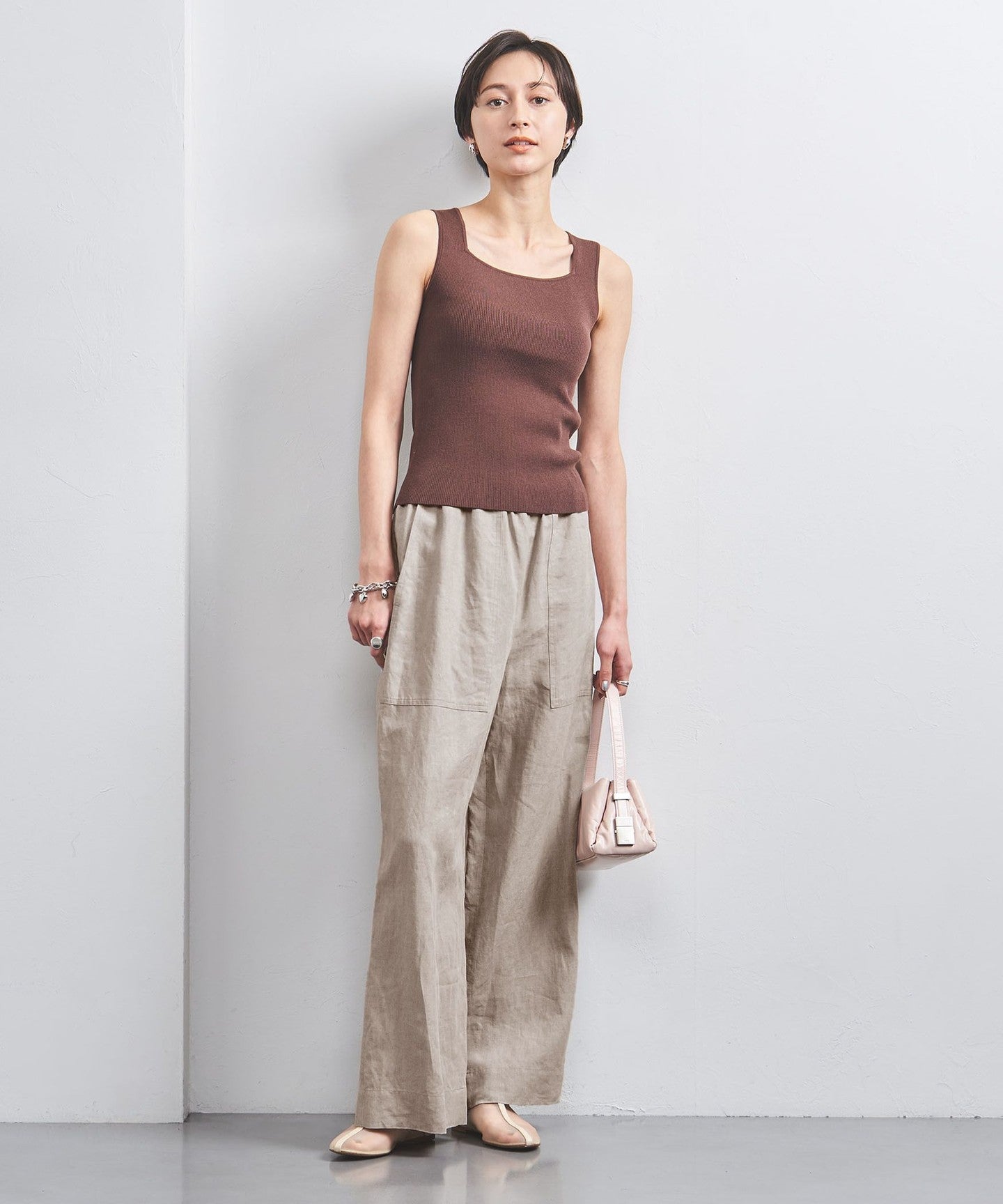 We also recommend adding accents with accessories to a simple outfit that combines a basic high-gauge knit or T-shirt.