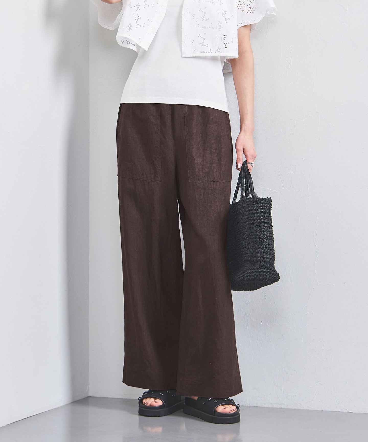 Linen patch pocket easy pants