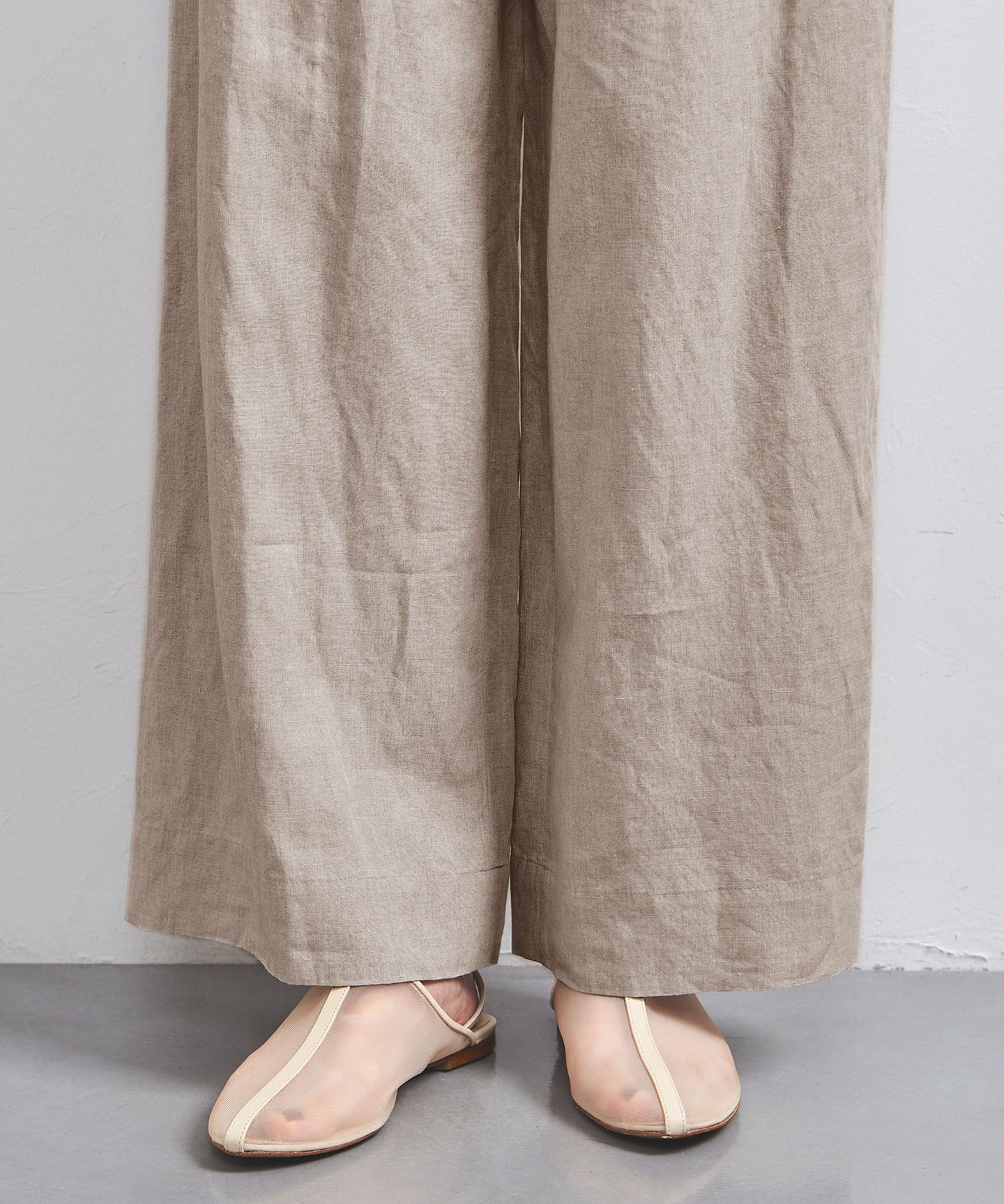 The fabric is dyed using a liquid dyeing method while being carefully kneaded, giving it the fluffy texture that is unique to linen.