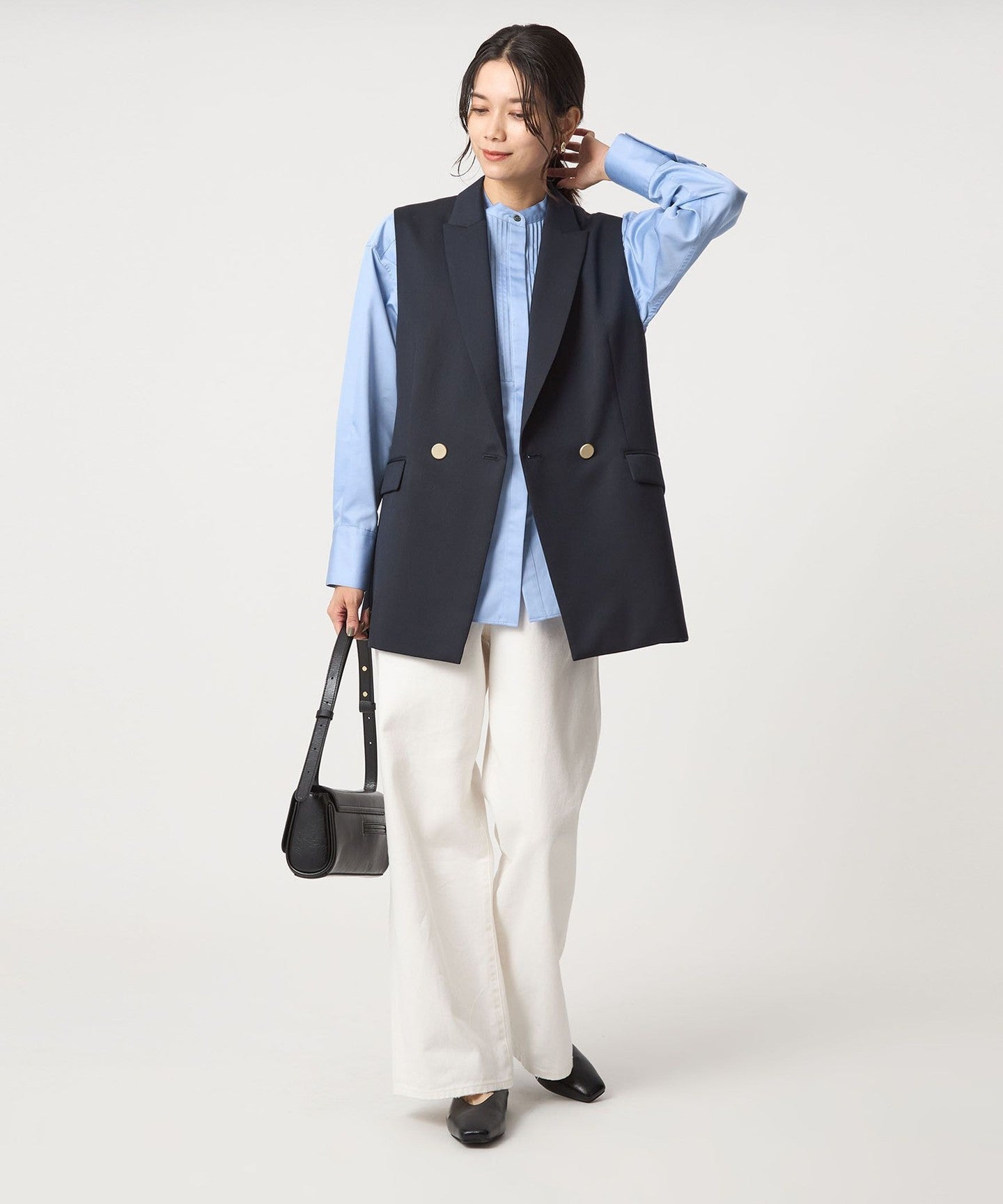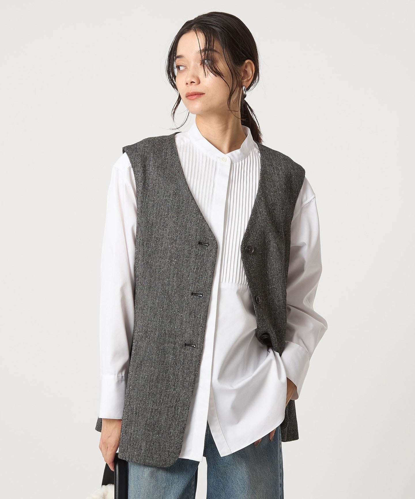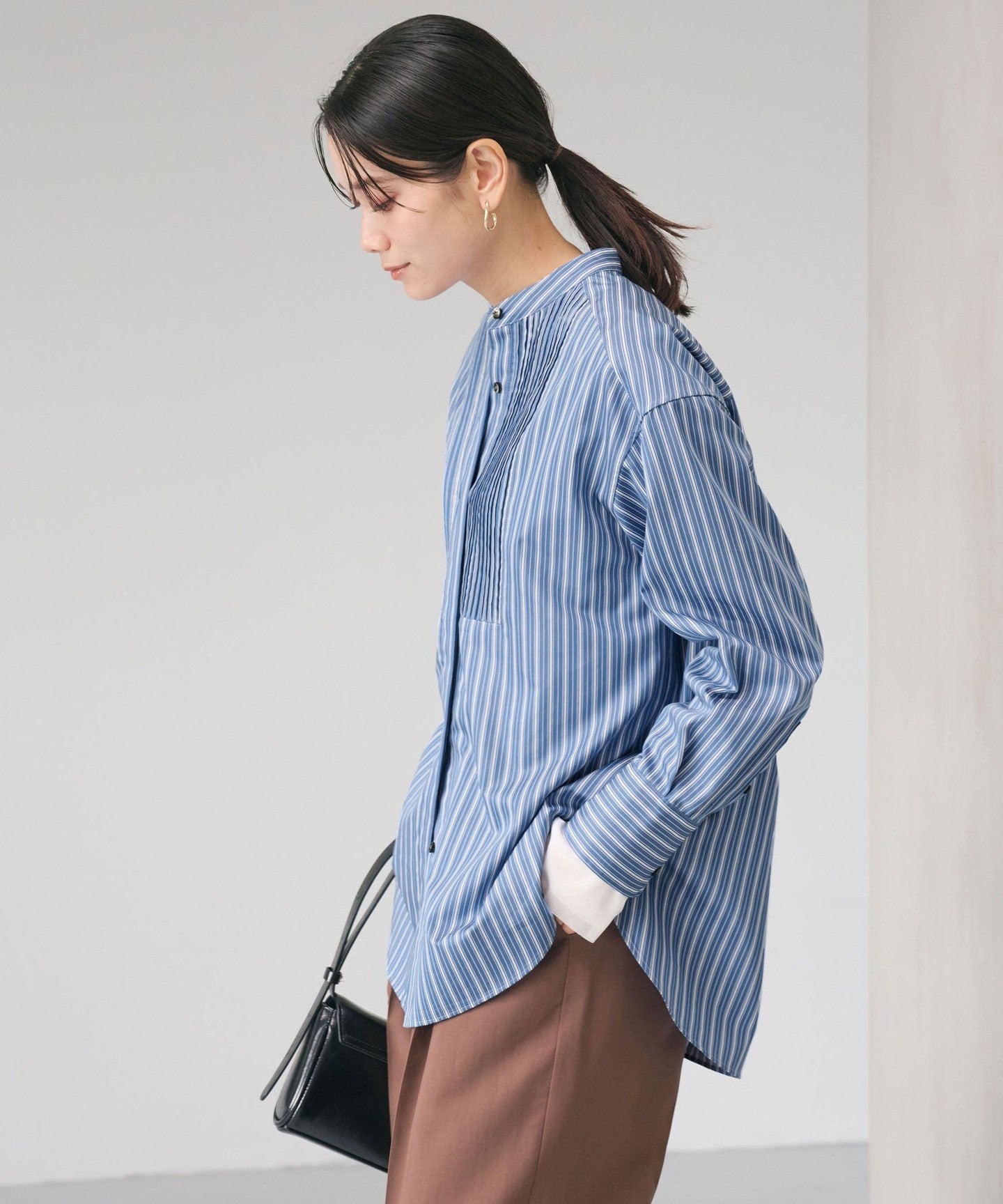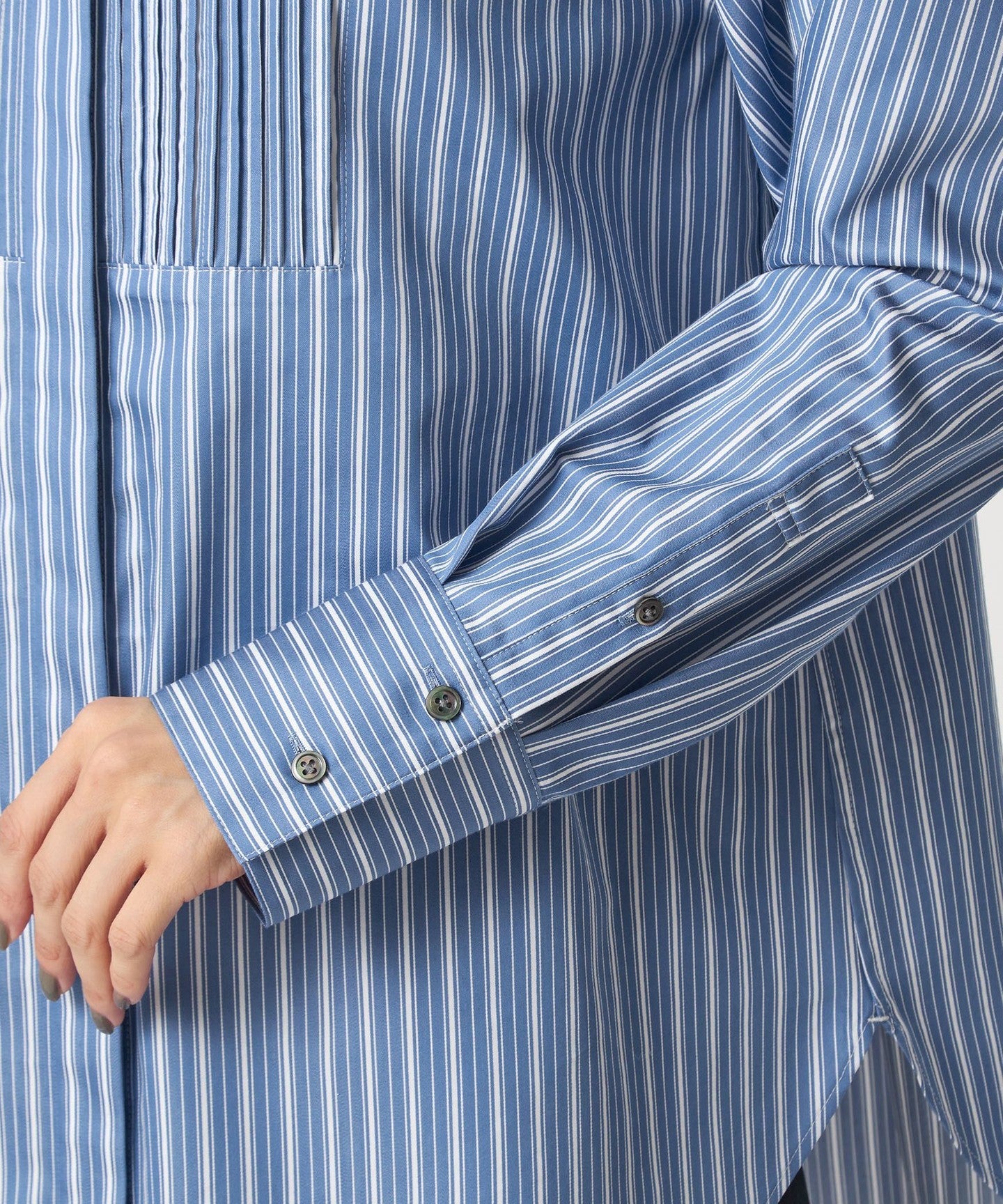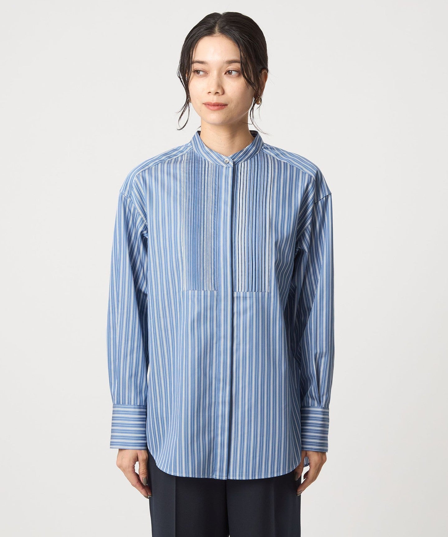 Looks great on its own! A versatile pin-tuck shirt
