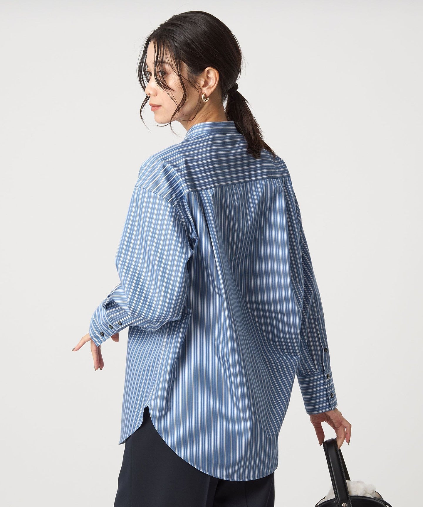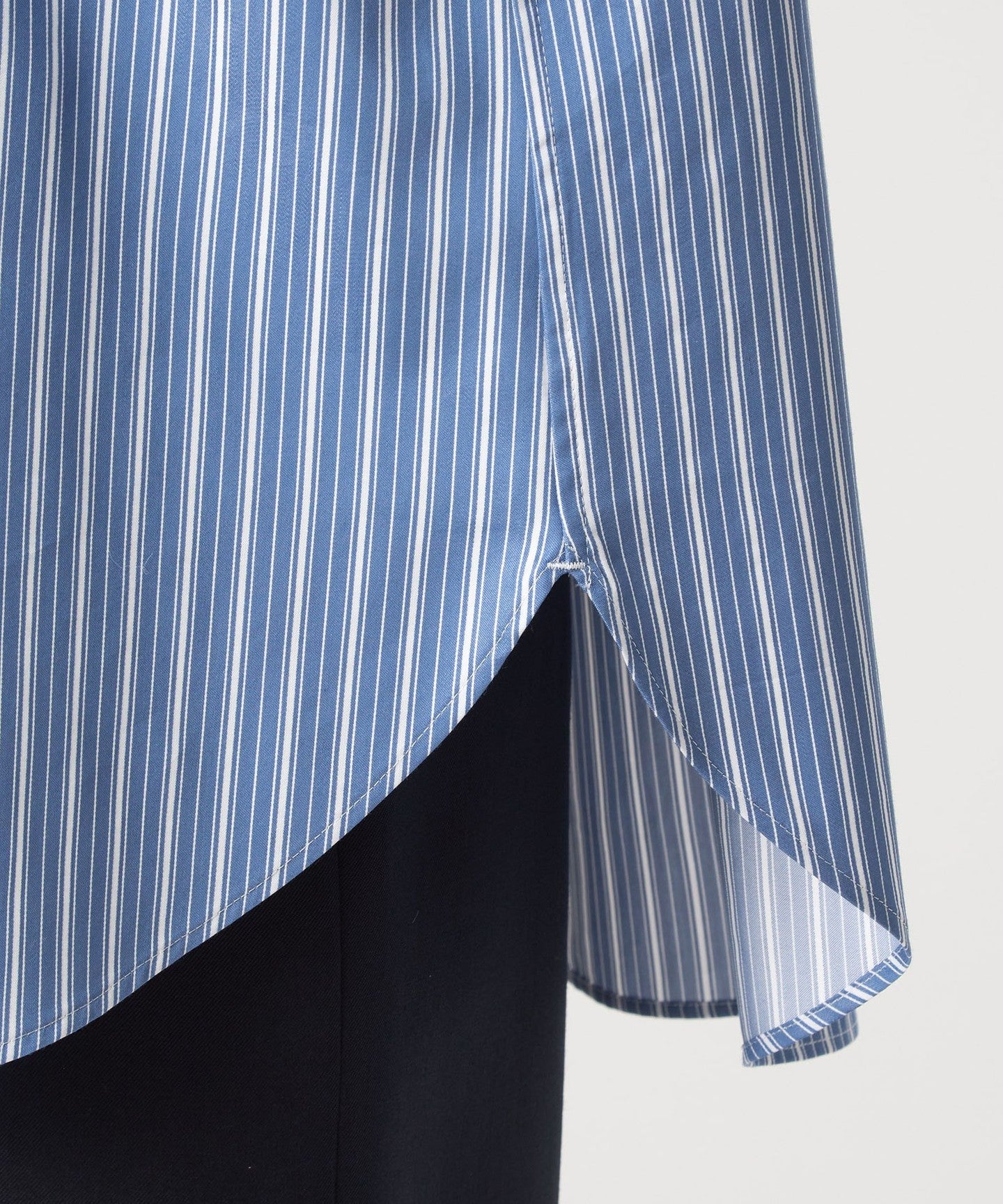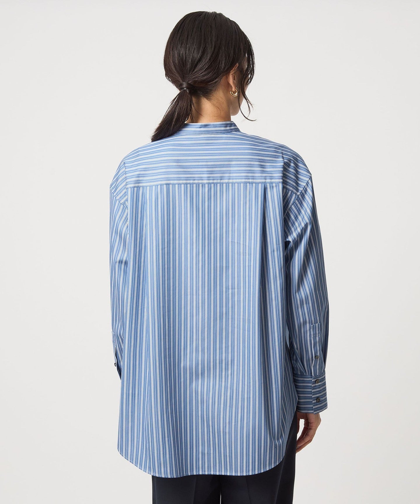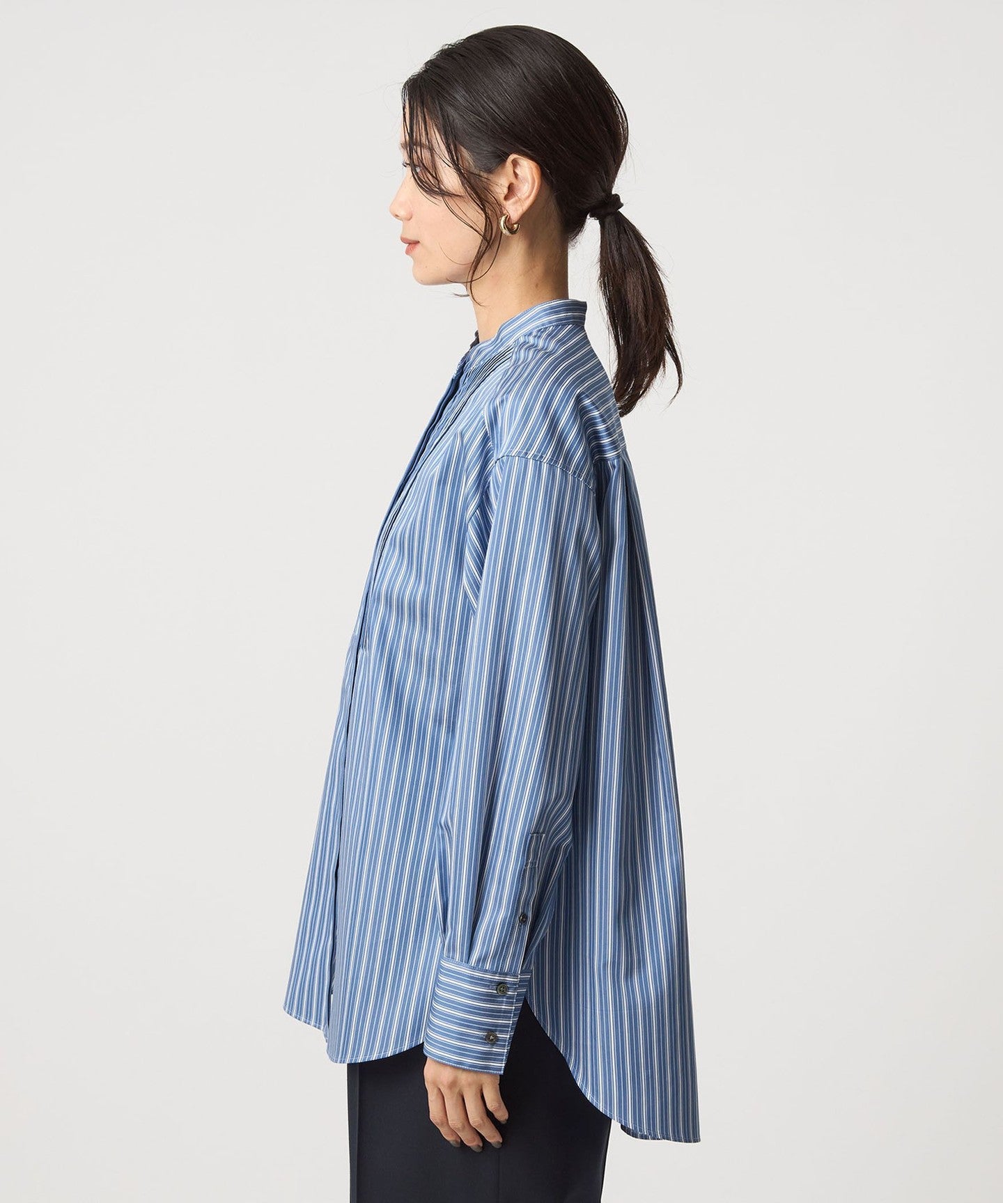 The neck is finished with a clean band collar.