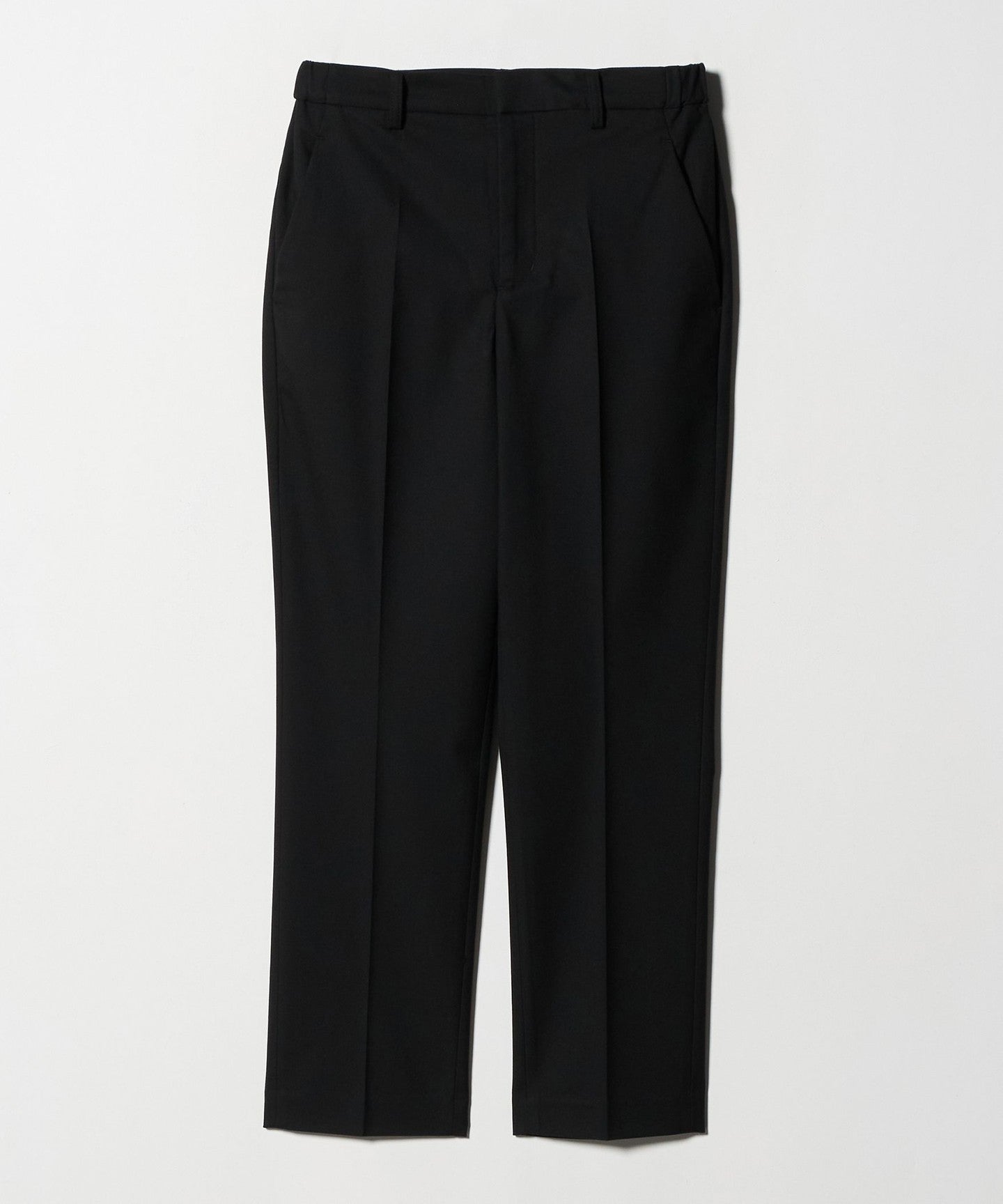This pair of pants has a silhouette that tapers towards the ankles and press lines that emphasize the vertical lines, so you can expect to look slimmer.