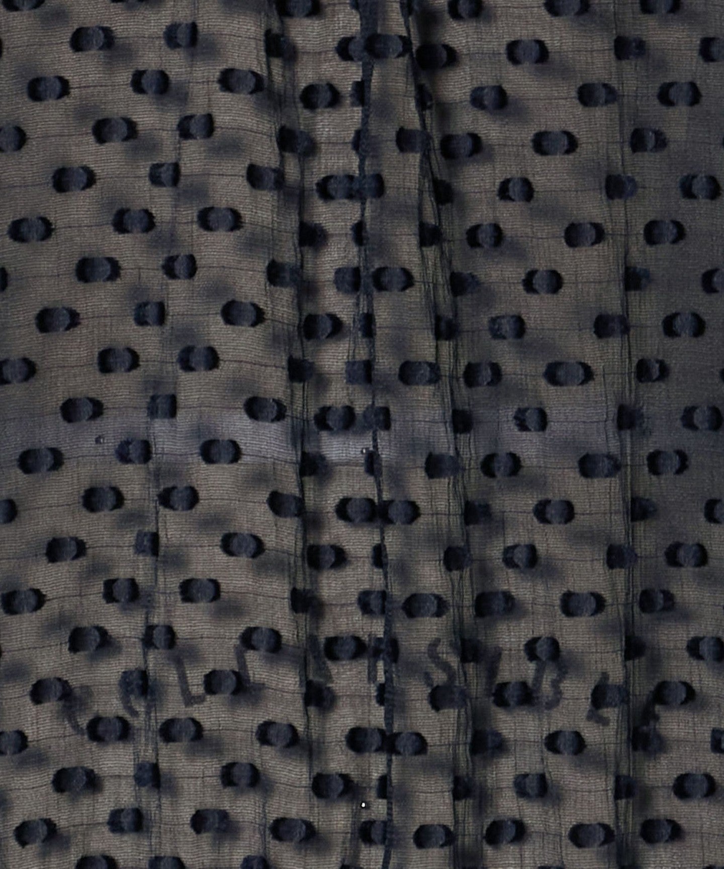 The fabric is made from a sheer and textured material, dotted with cut jacquard.
