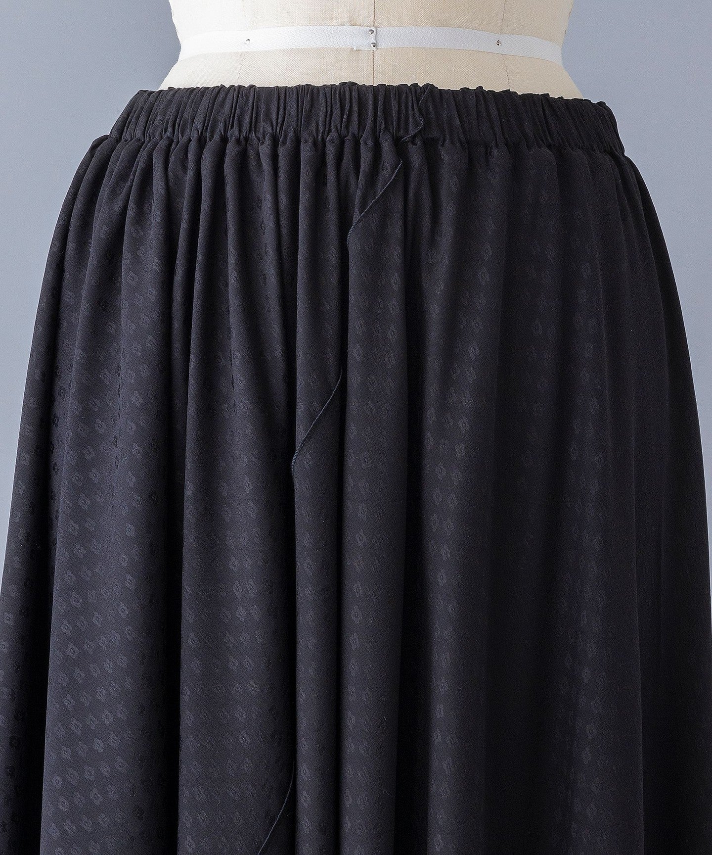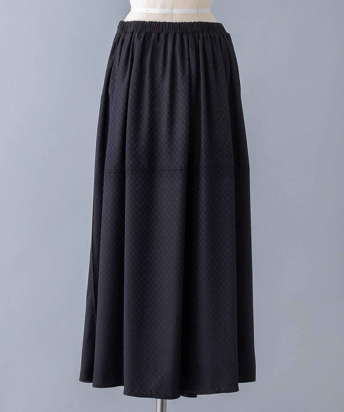 This gathered skirt features a floral jacquard pattern in black monotone, giving it a chic and lovely look.
