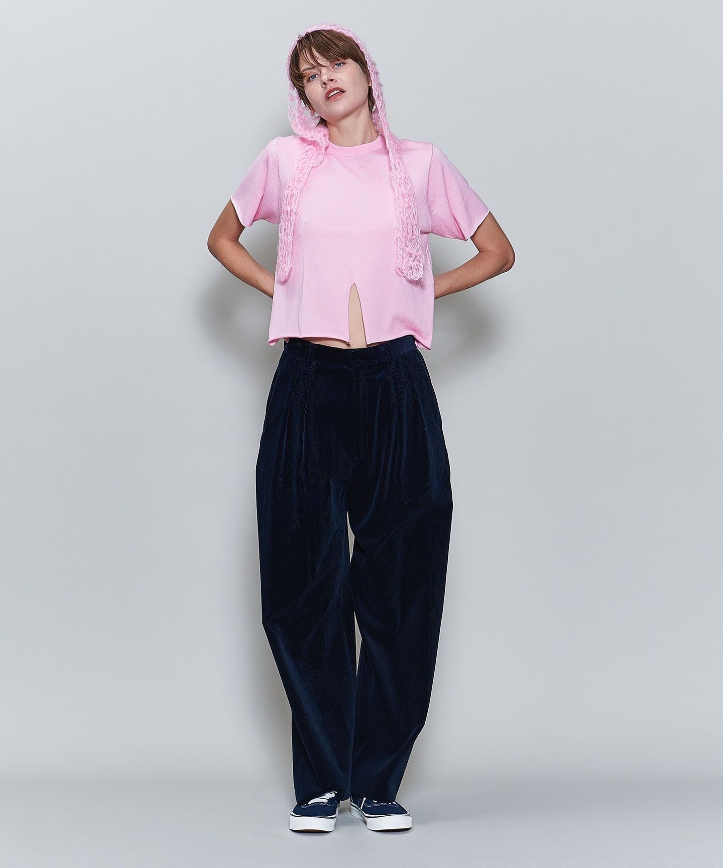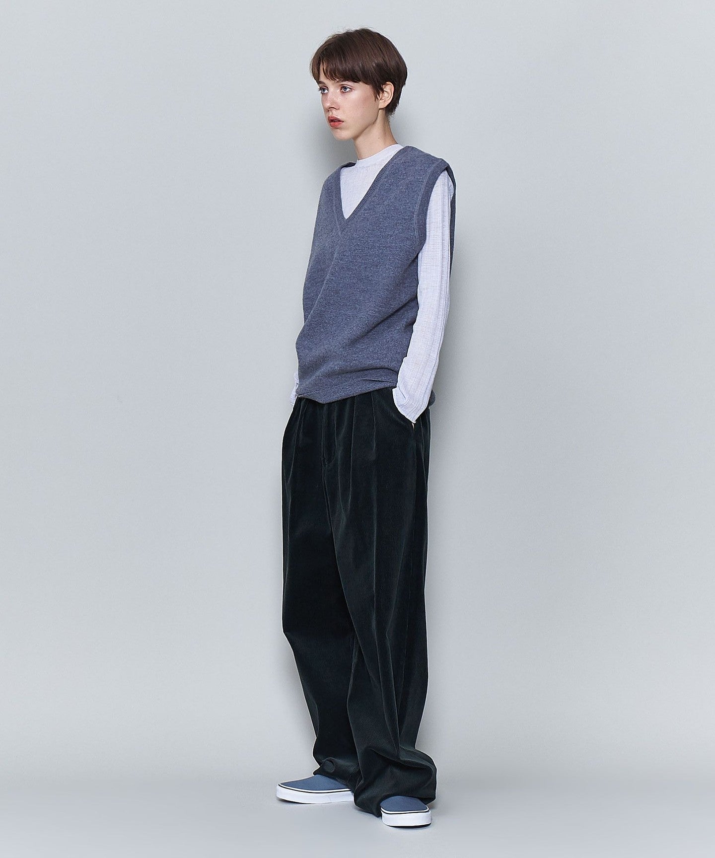 These pants are made of corduroy fabric with a subtle sheen that gives you a feeling of autumn.